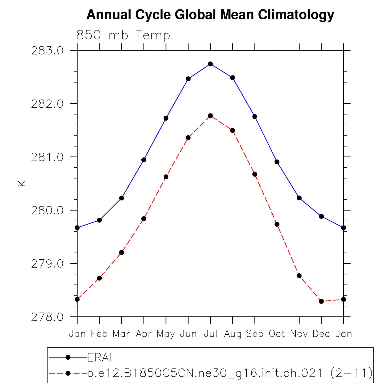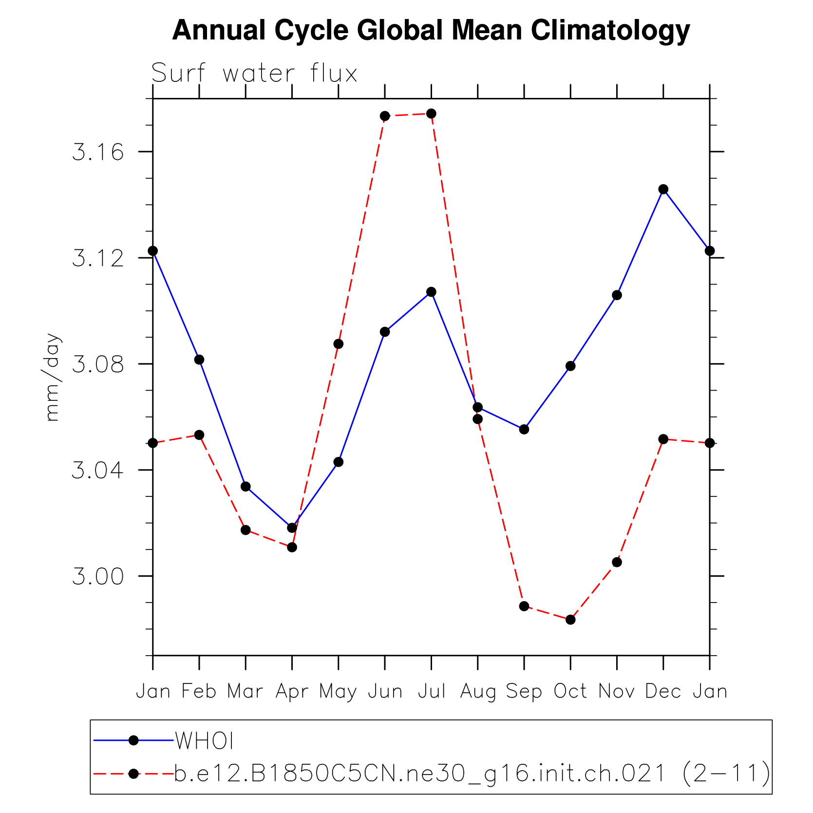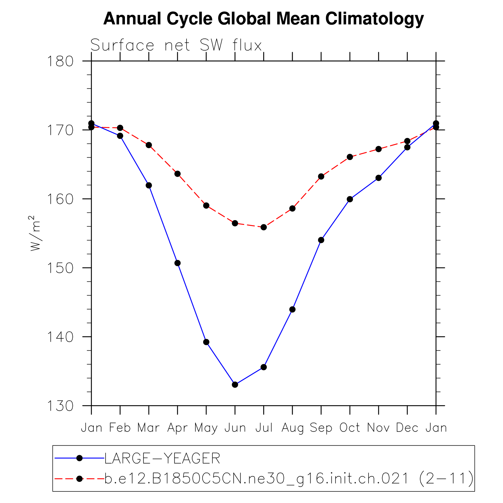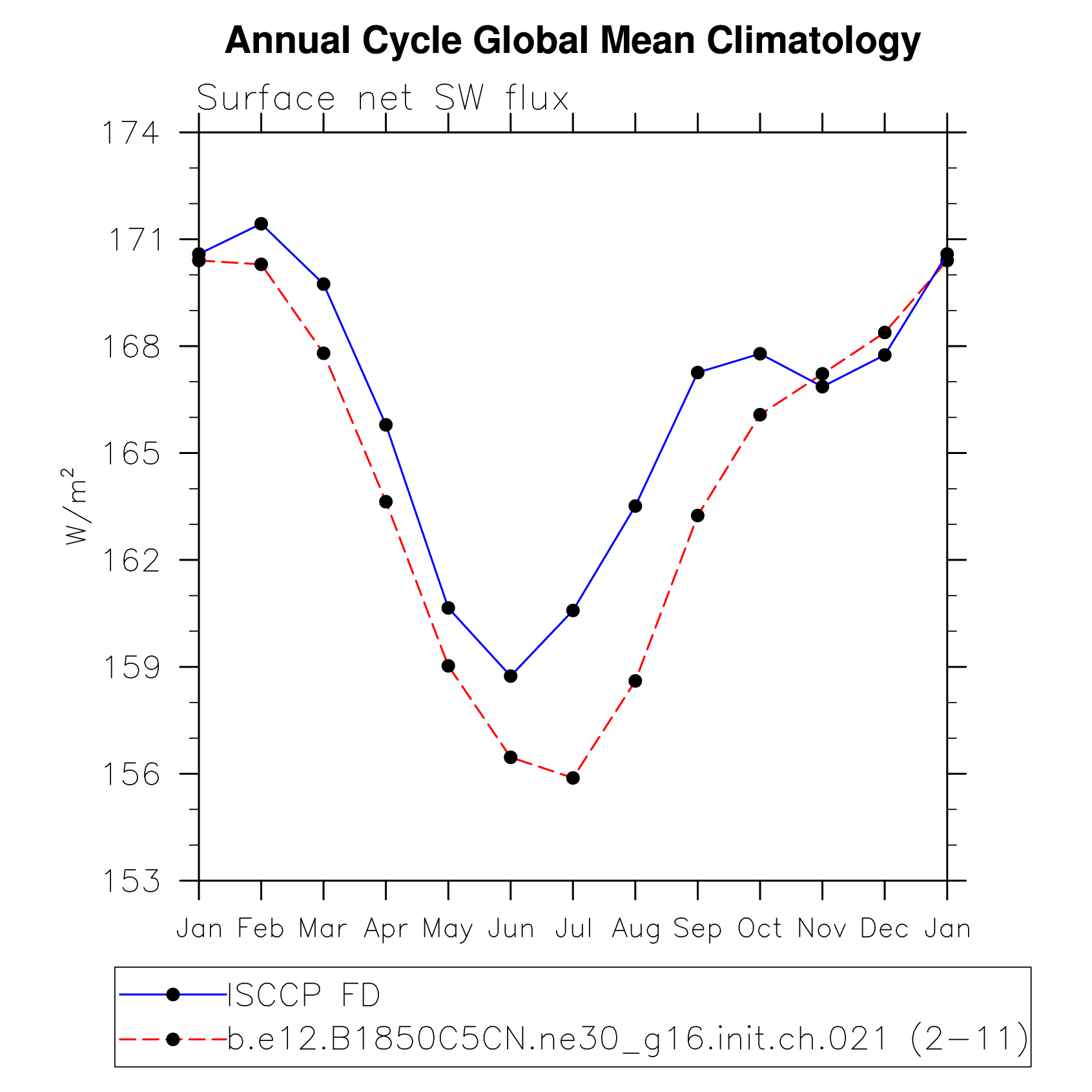 DIAG Set 10 - Annual cycle line plots of global means