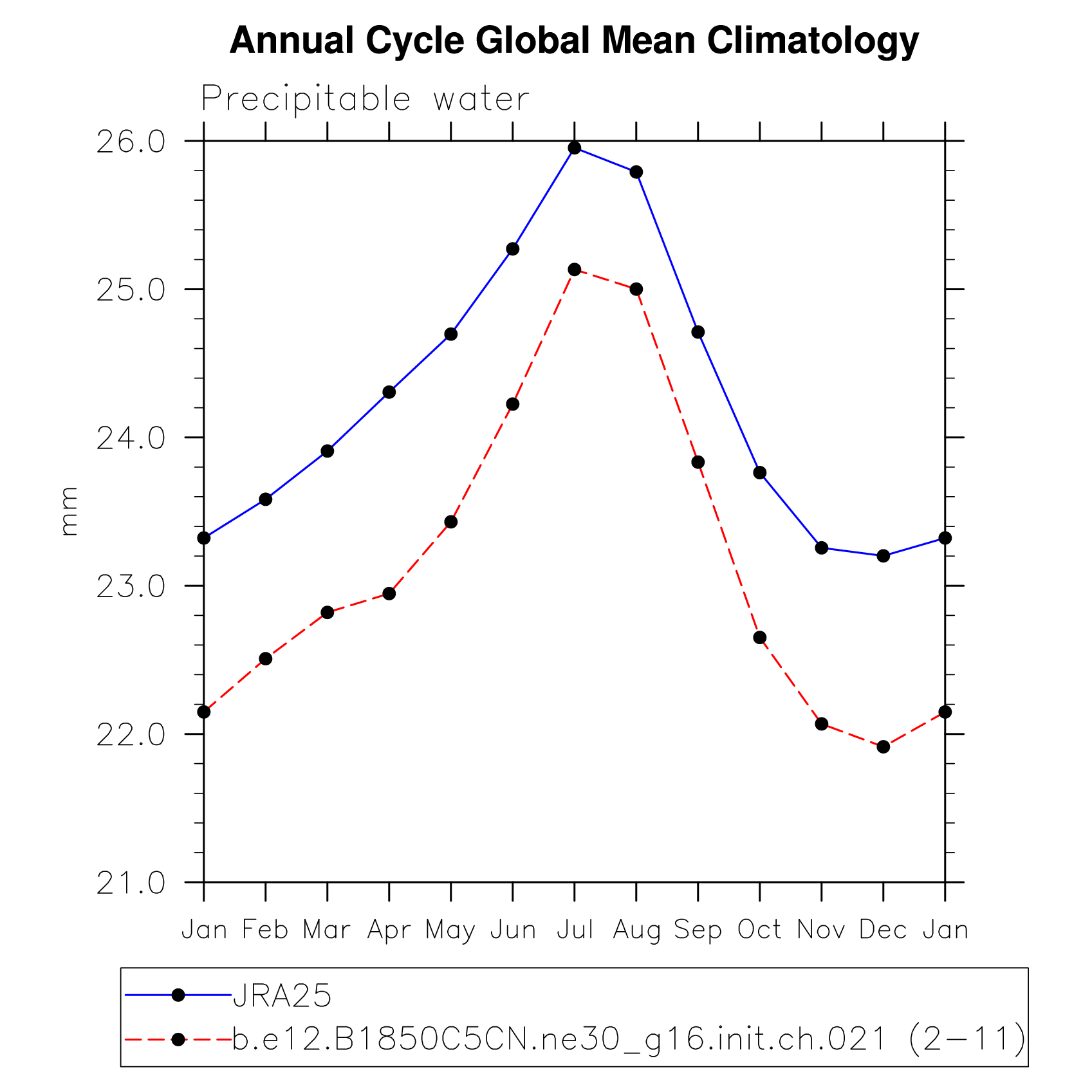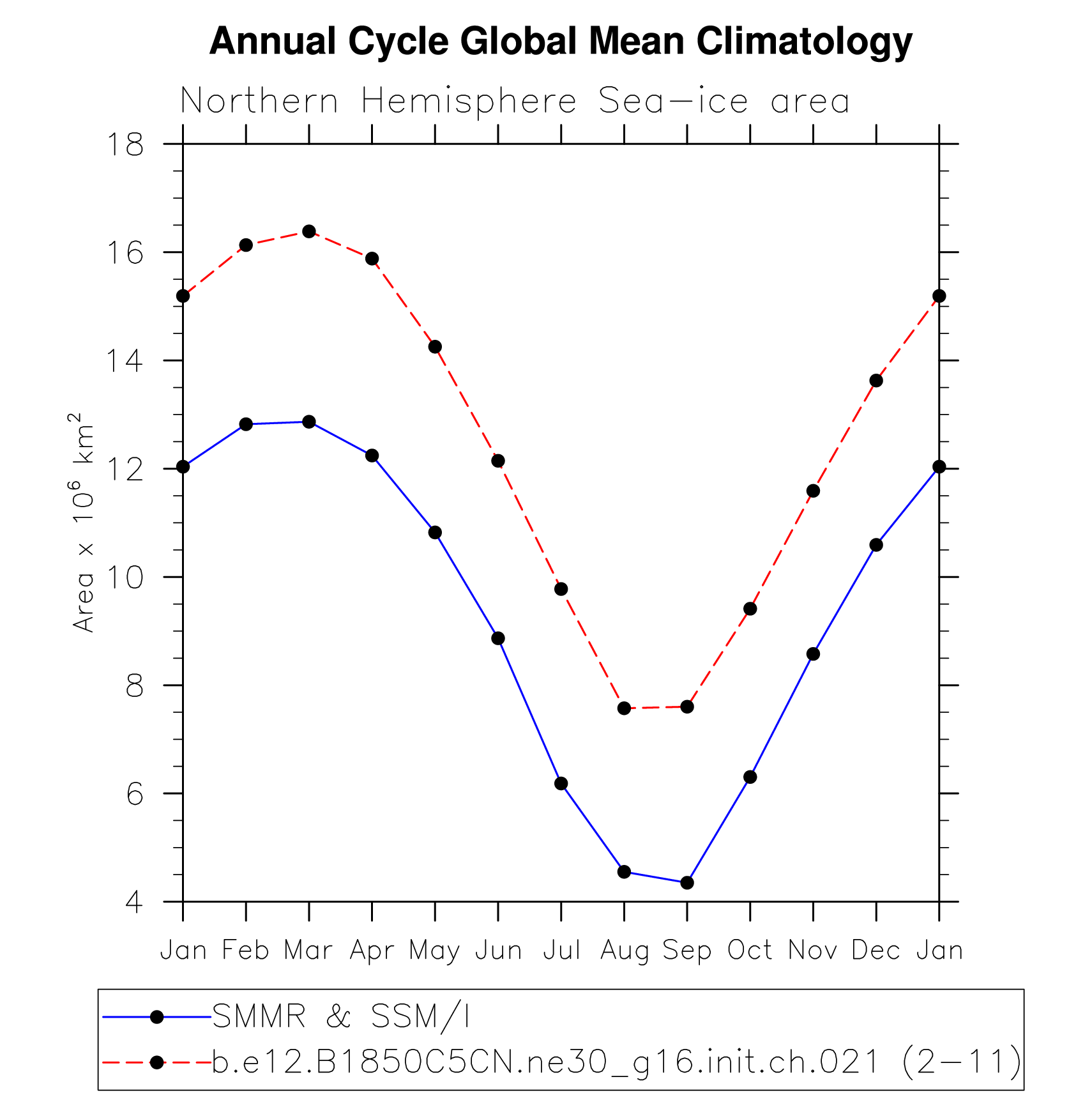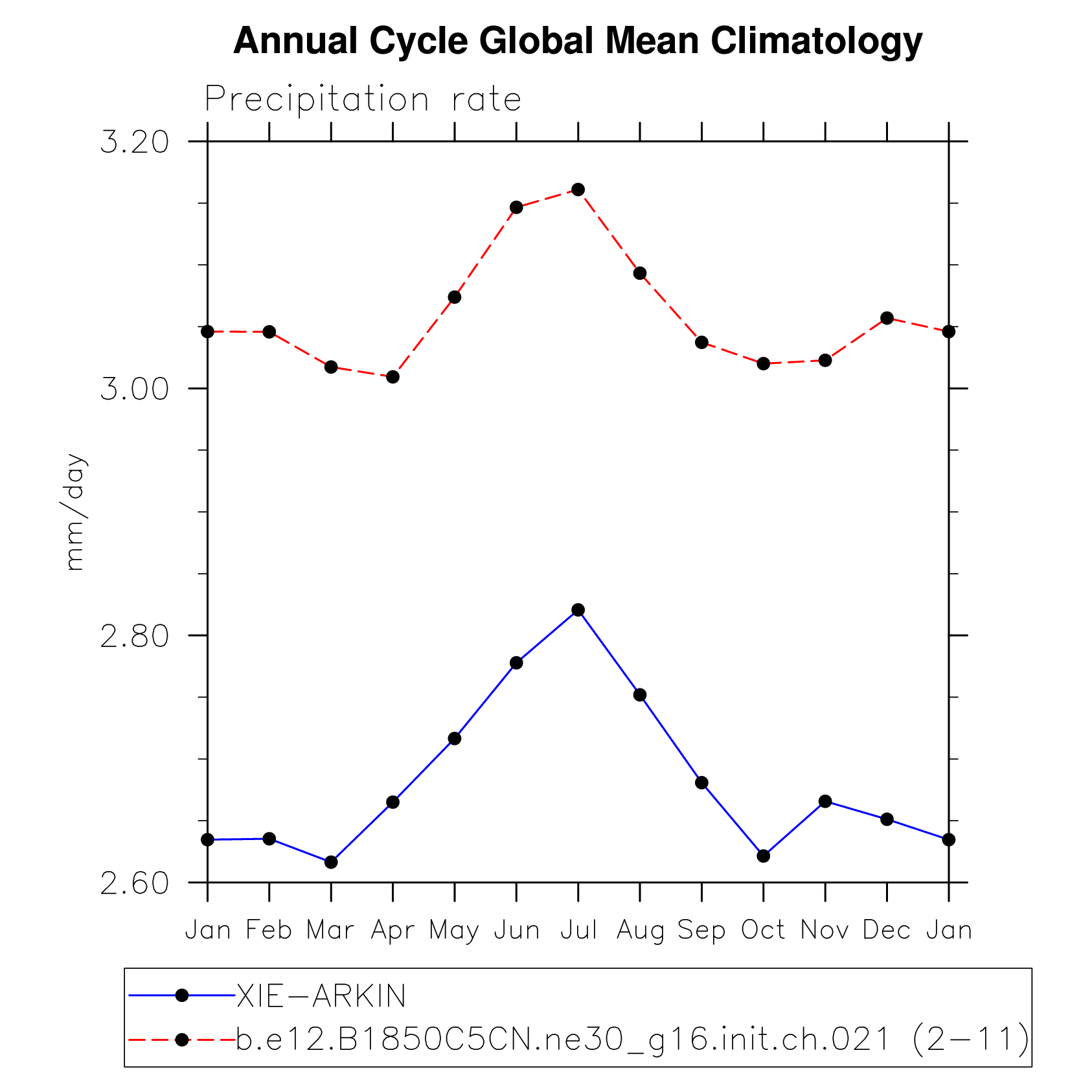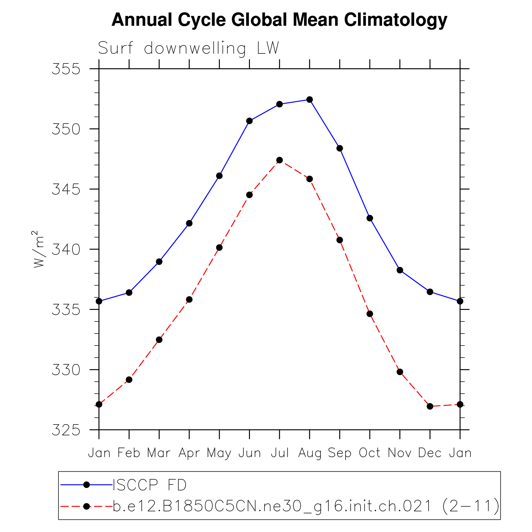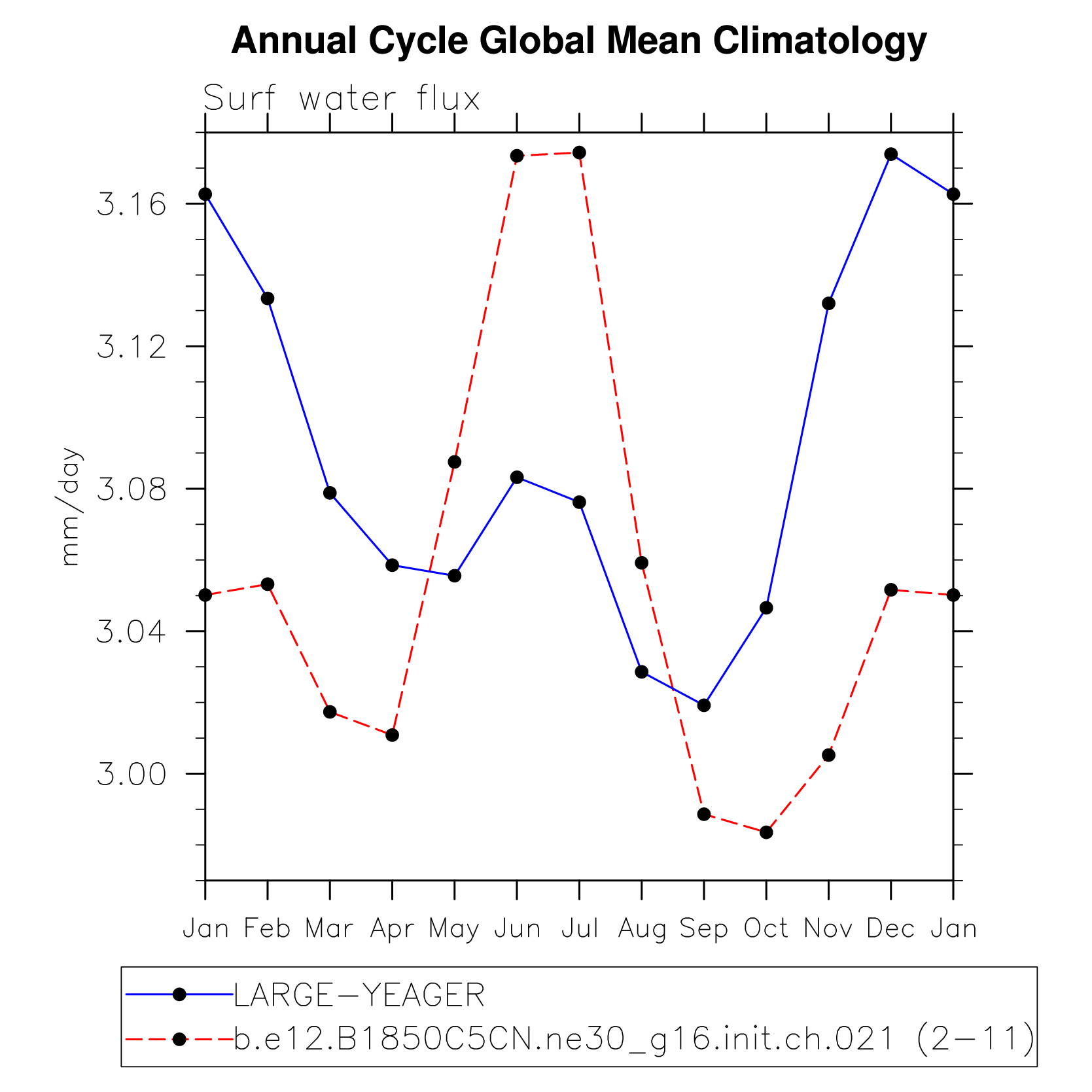 DIAG Set 10 - Annual cycle line plots of global means