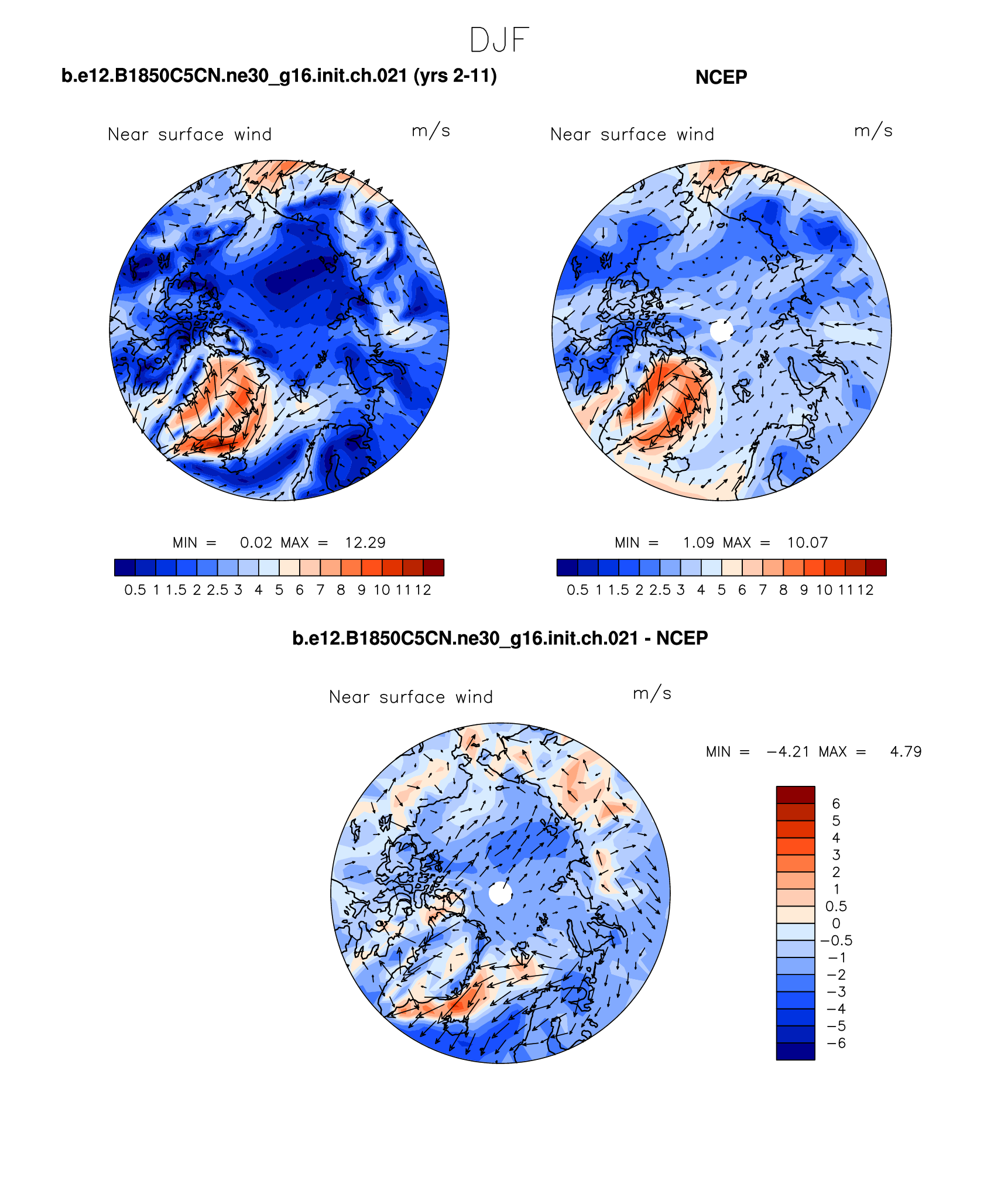 b.e12.B1850C5CN.ne30_g16.init.ch.021 DIAG Set 7 - Polar contour/vector plots of DJF, JJA and ANN means
