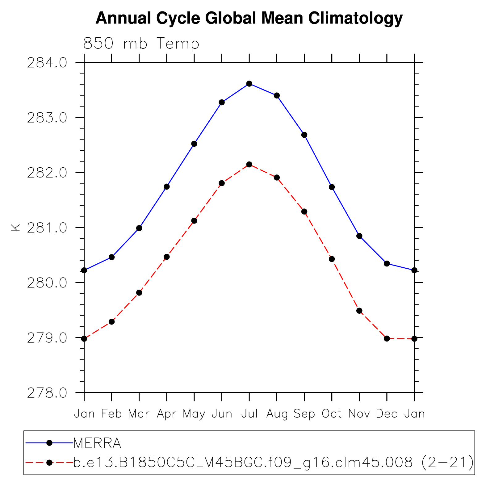 DIAG Set 10 - Annual cycle line plots of global means