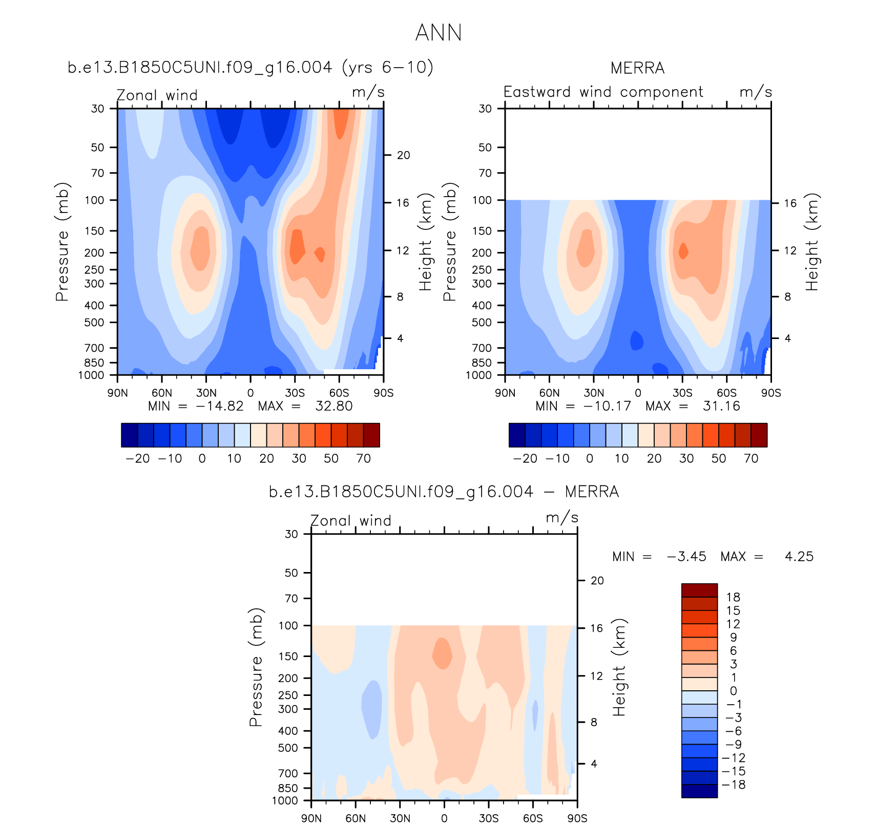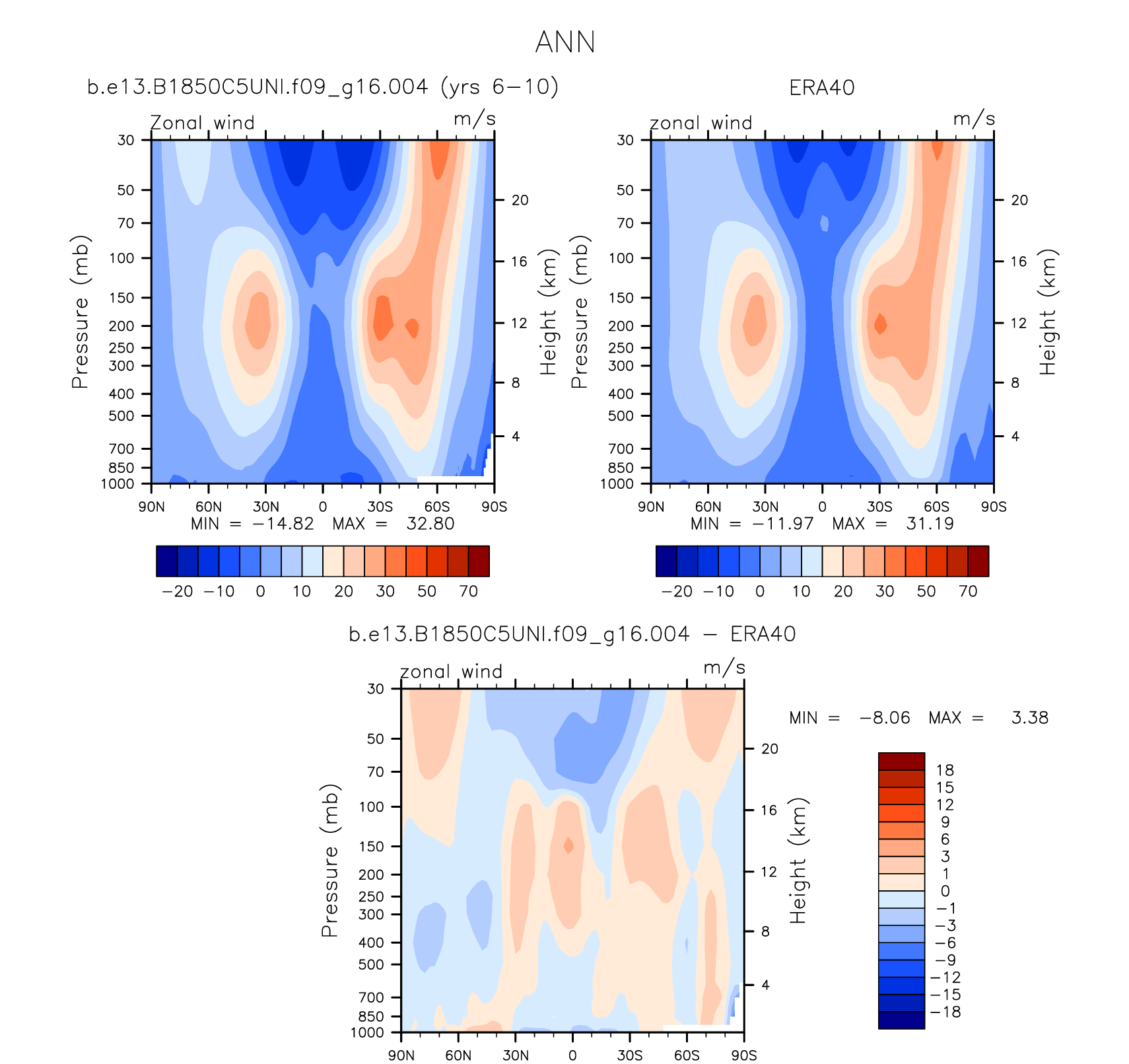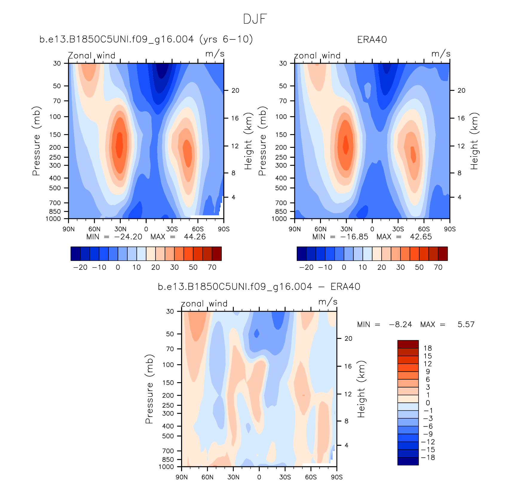DIAG Set 4 - Vertical contour plots of DJF, JJA and ANN zonal means