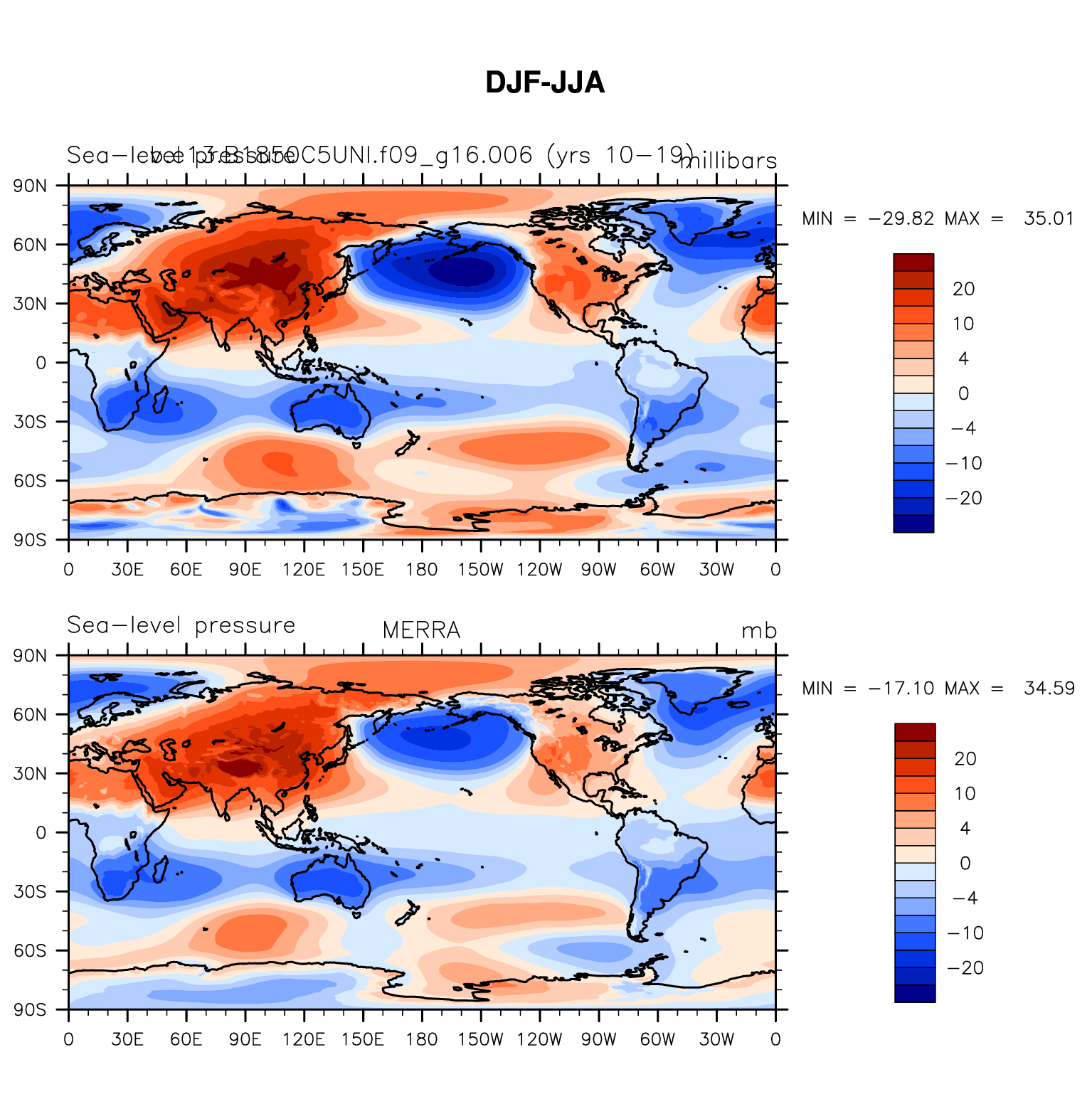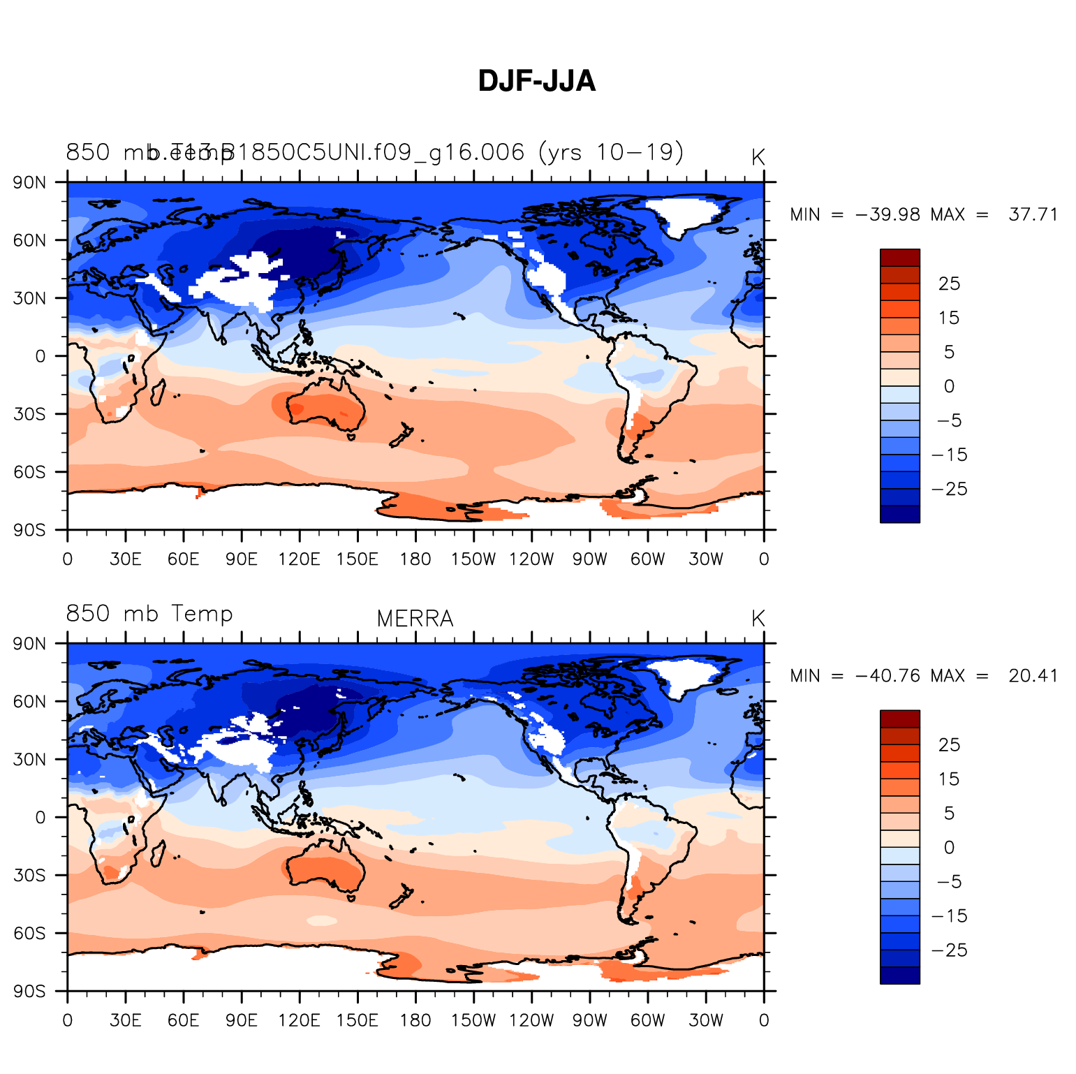 b.e13.B1850C5UNI.f09_g16.006 DIAG Set 9 - Horizontal contour plots of DJF-JJA differences