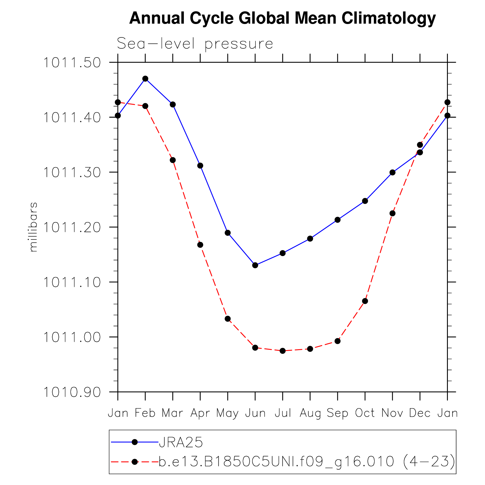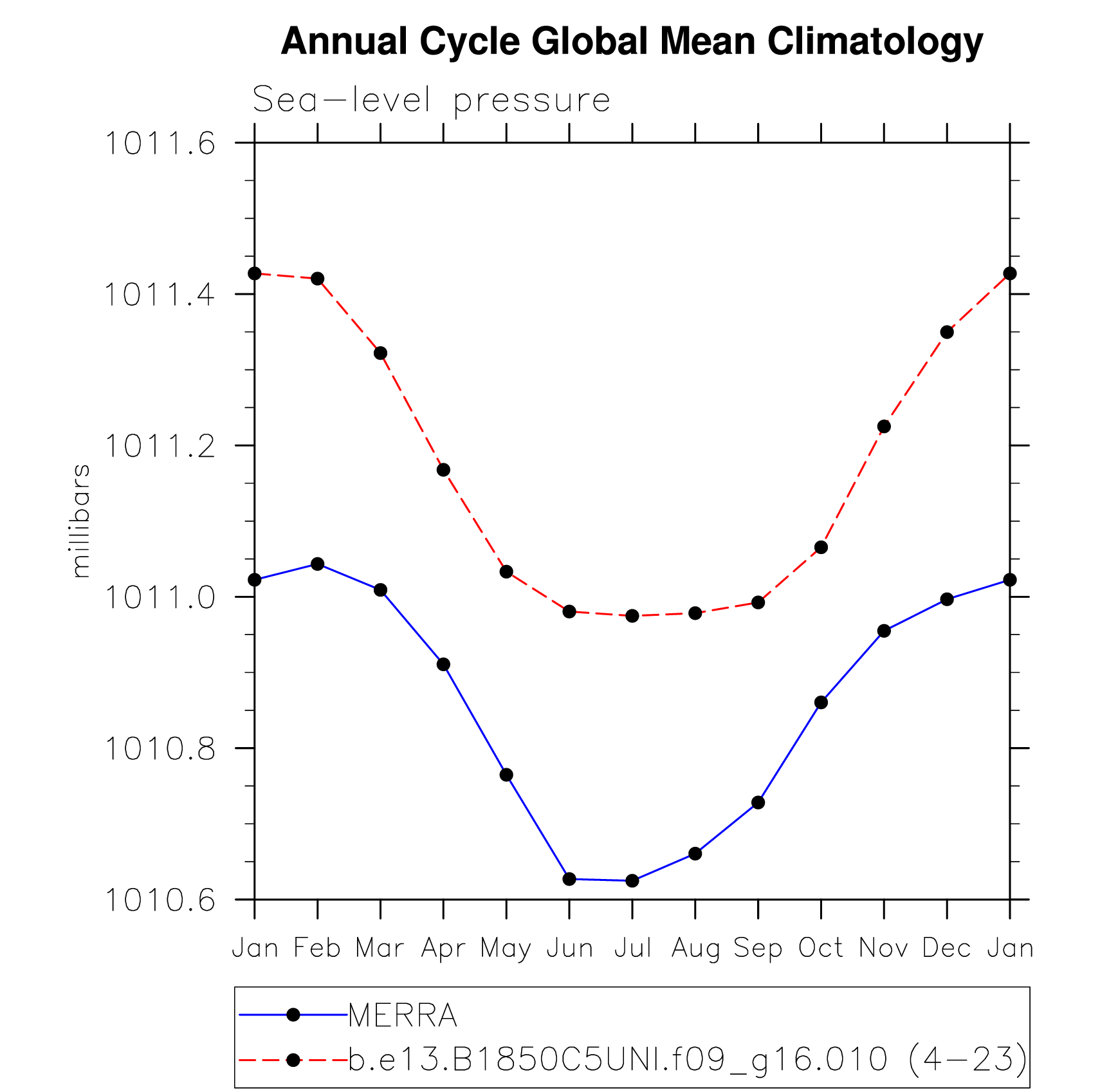 DIAG Set 10 - Annual cycle line plots of global means