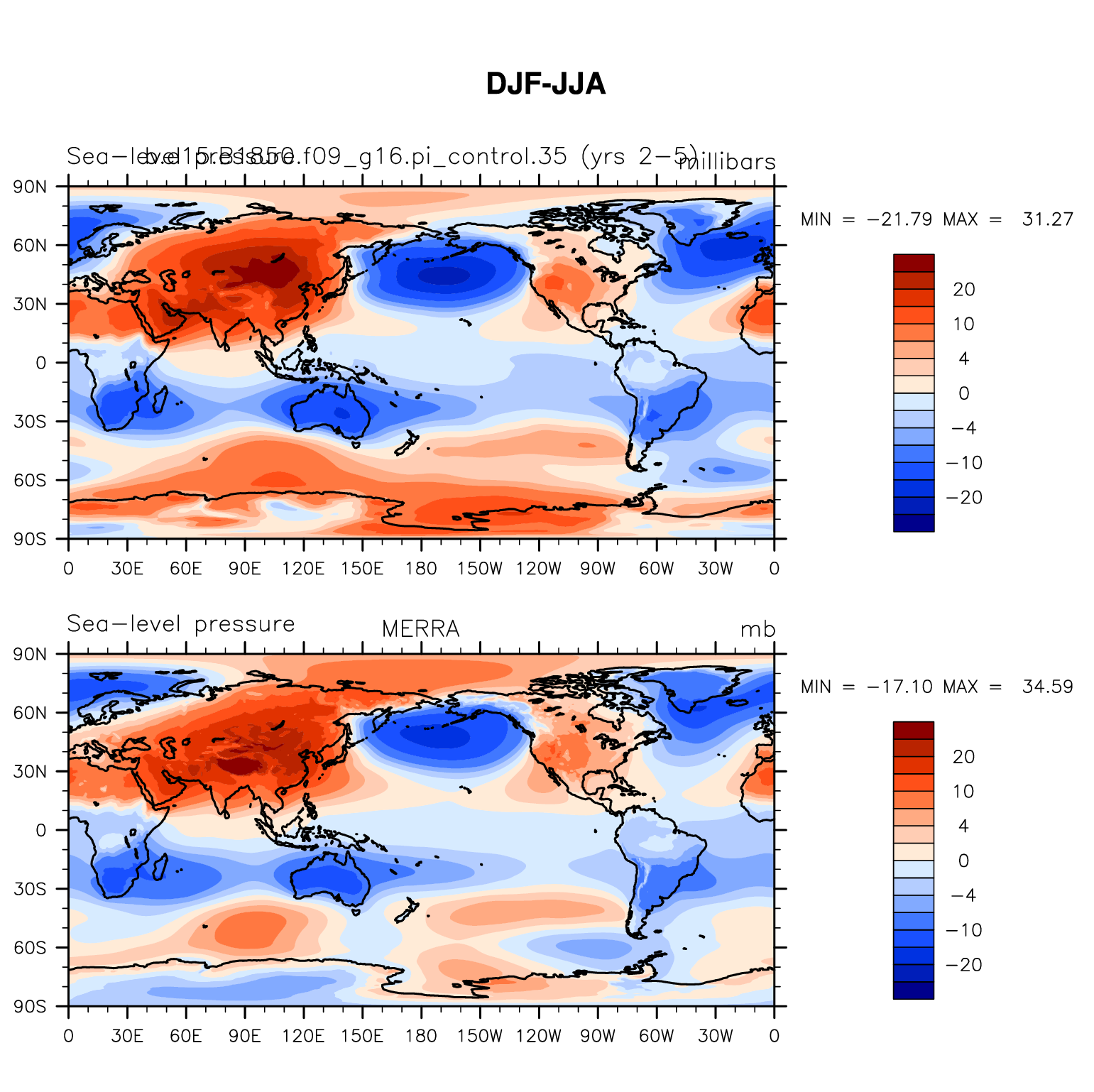 b.e15.B1850.f09_g16.pi_control.35 DIAG Set 9 - Horizontal contour plots of DJF-JJA differences