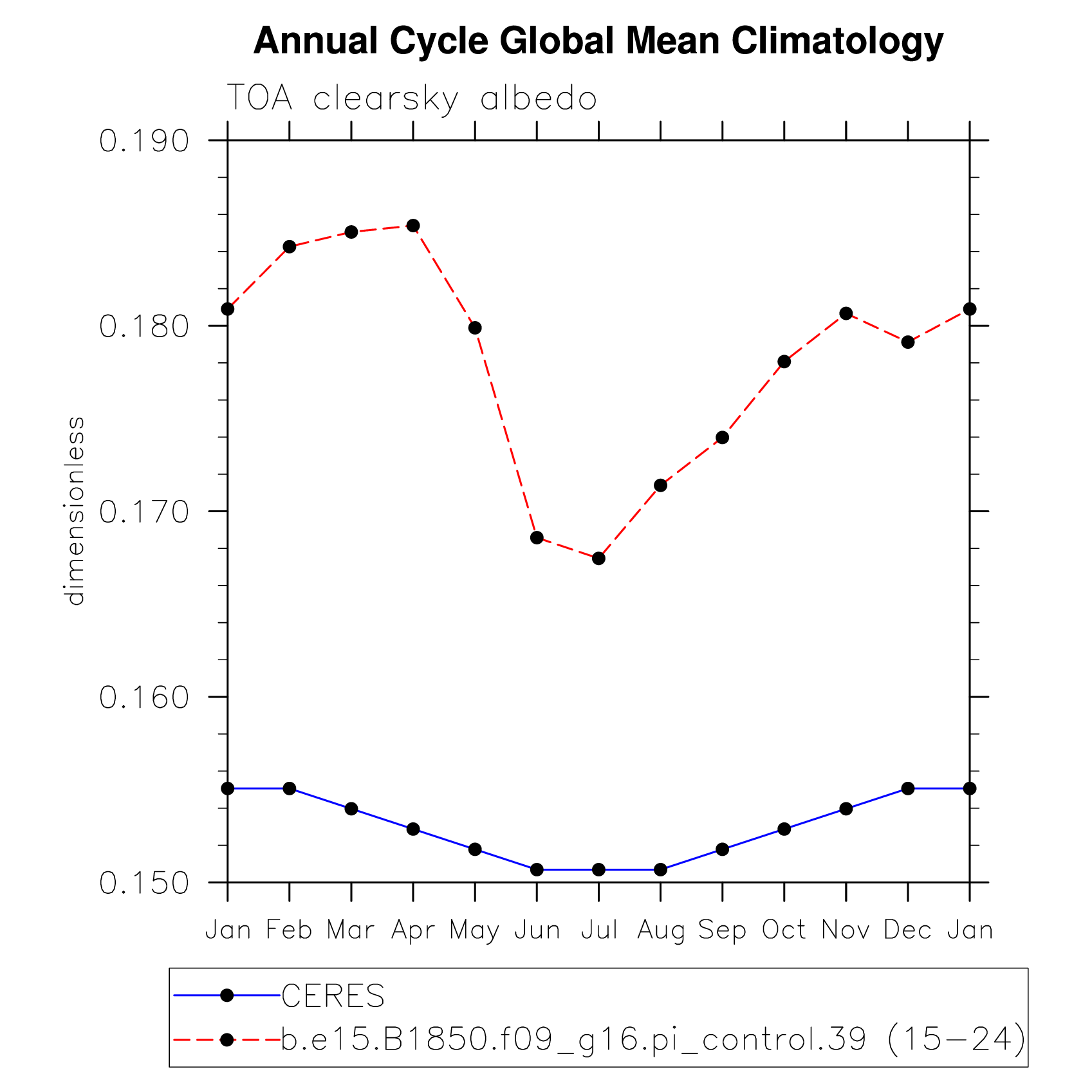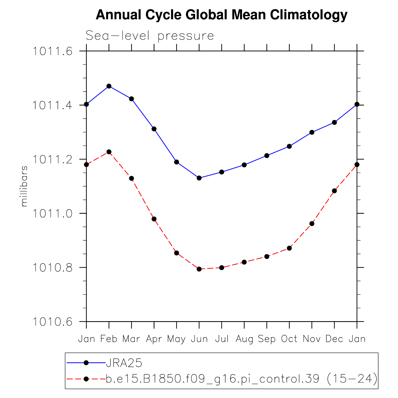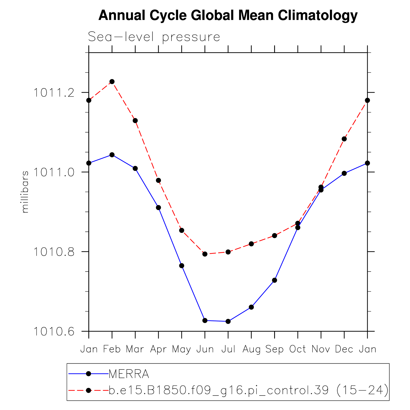 DIAG Set 10 - Annual cycle line plots of global means