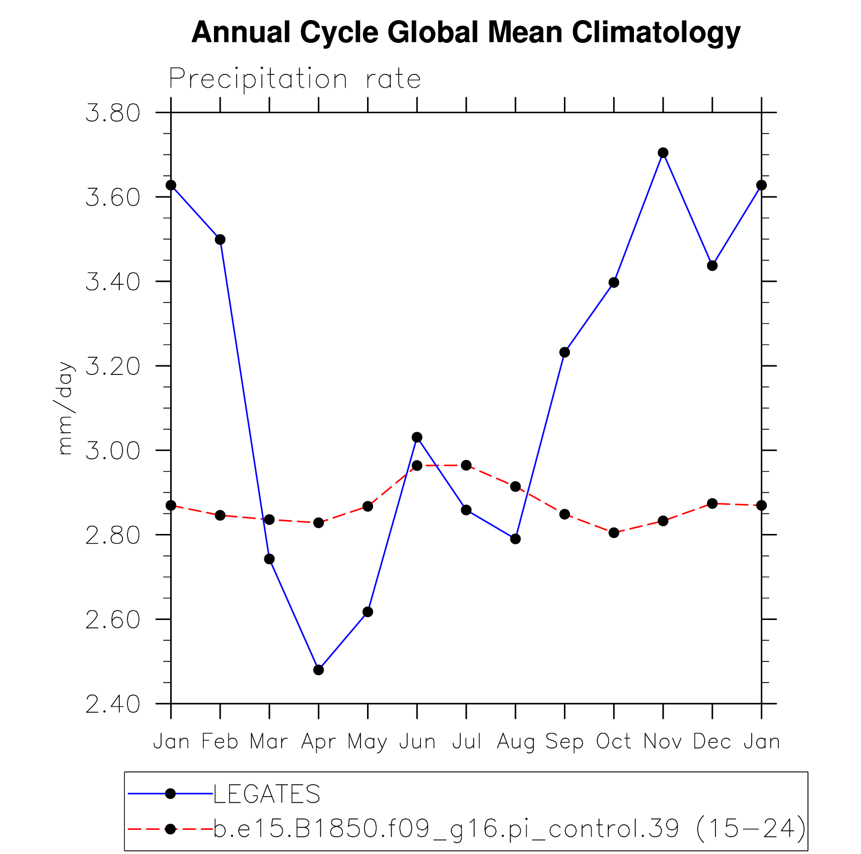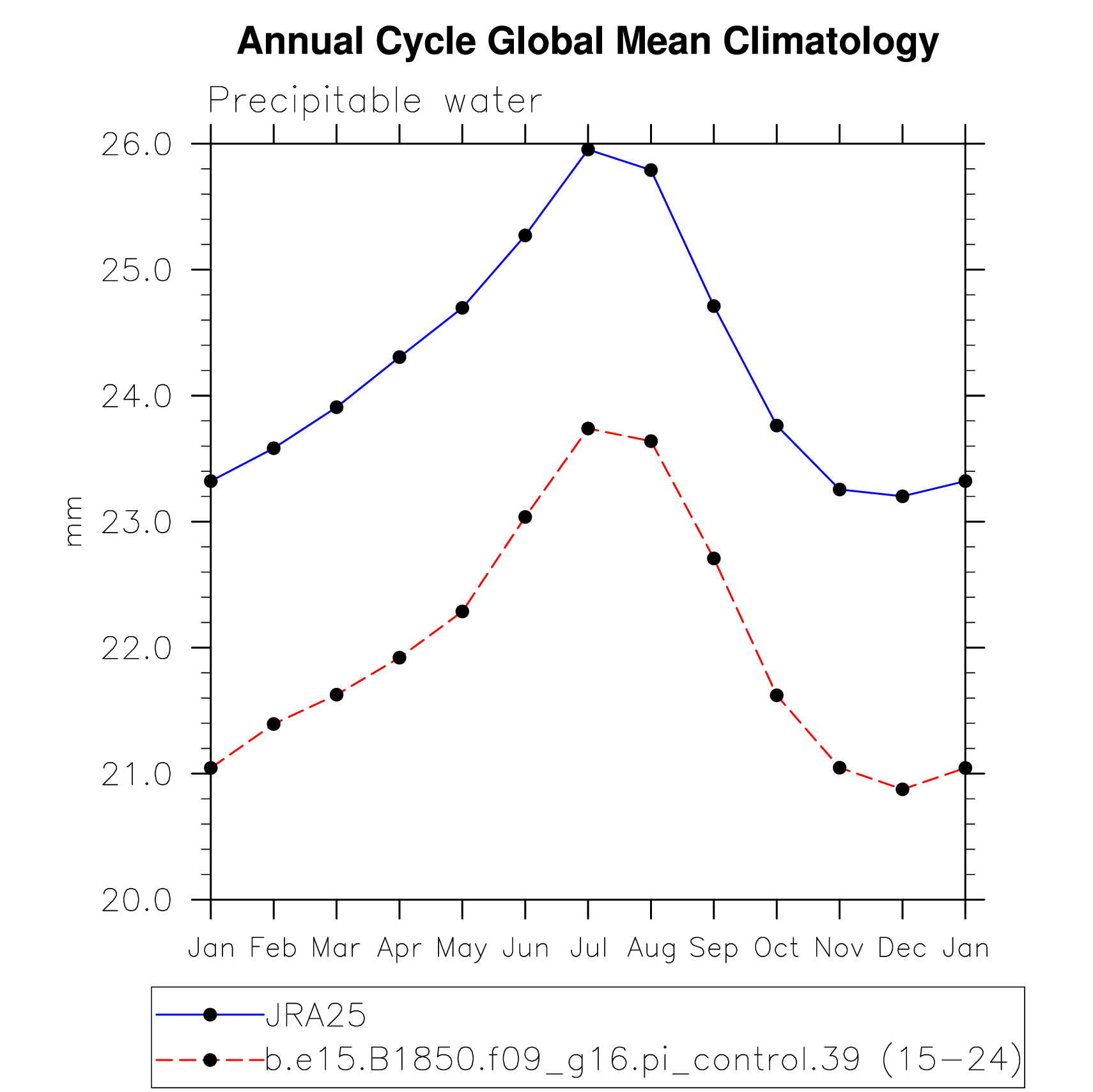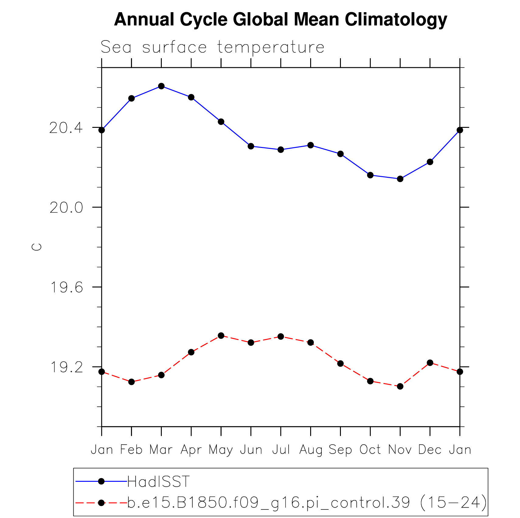 DIAG Set 10 - Annual cycle line plots of global means