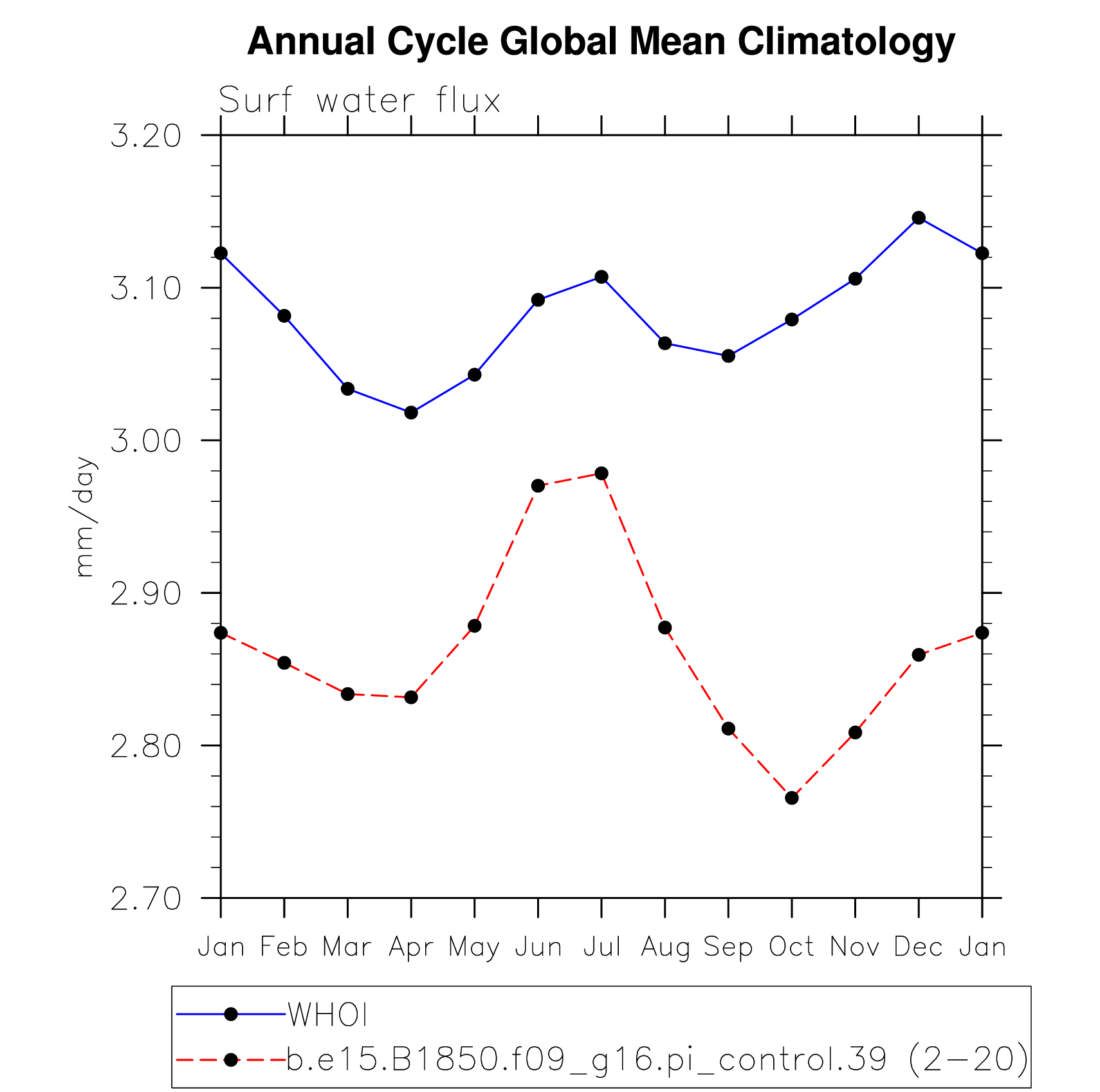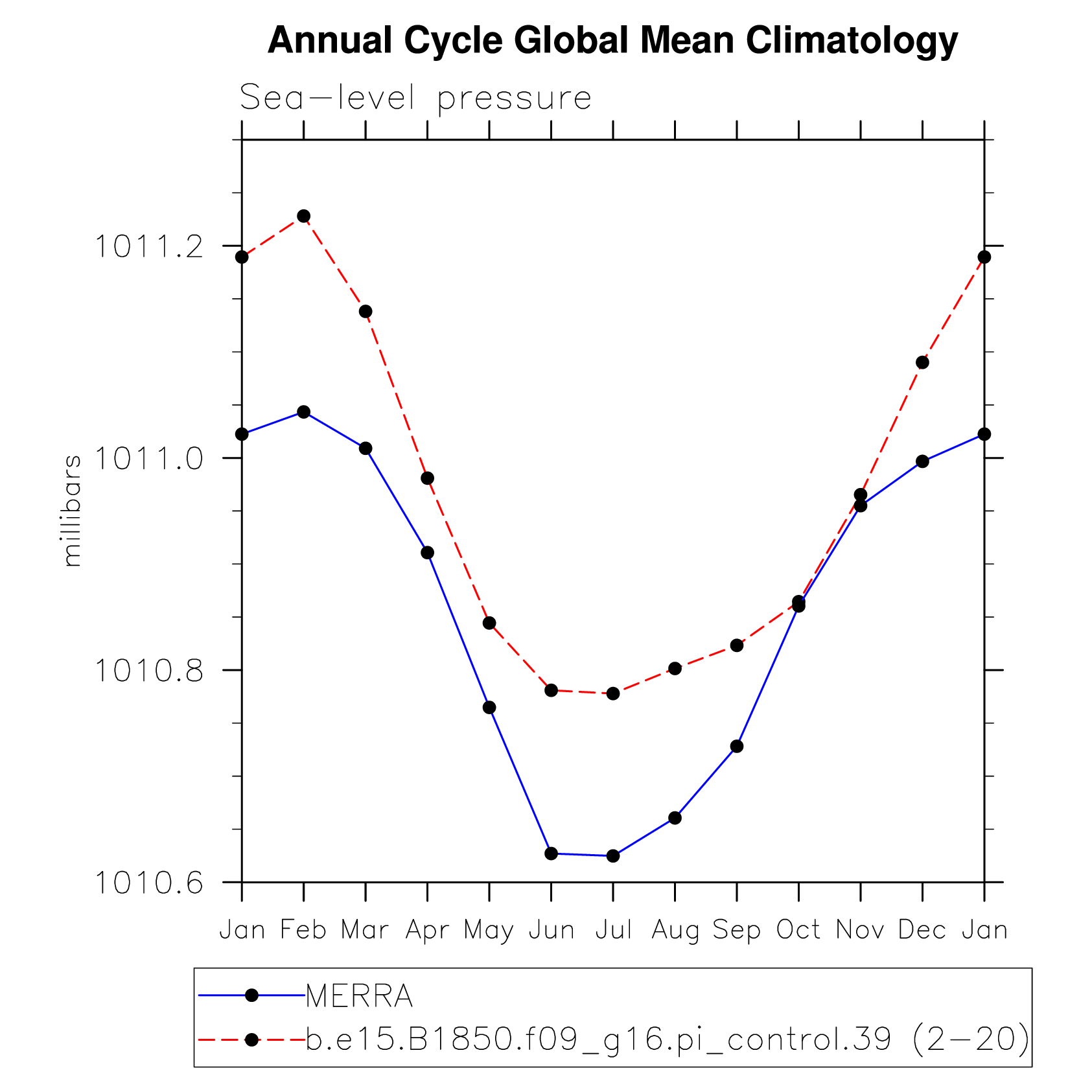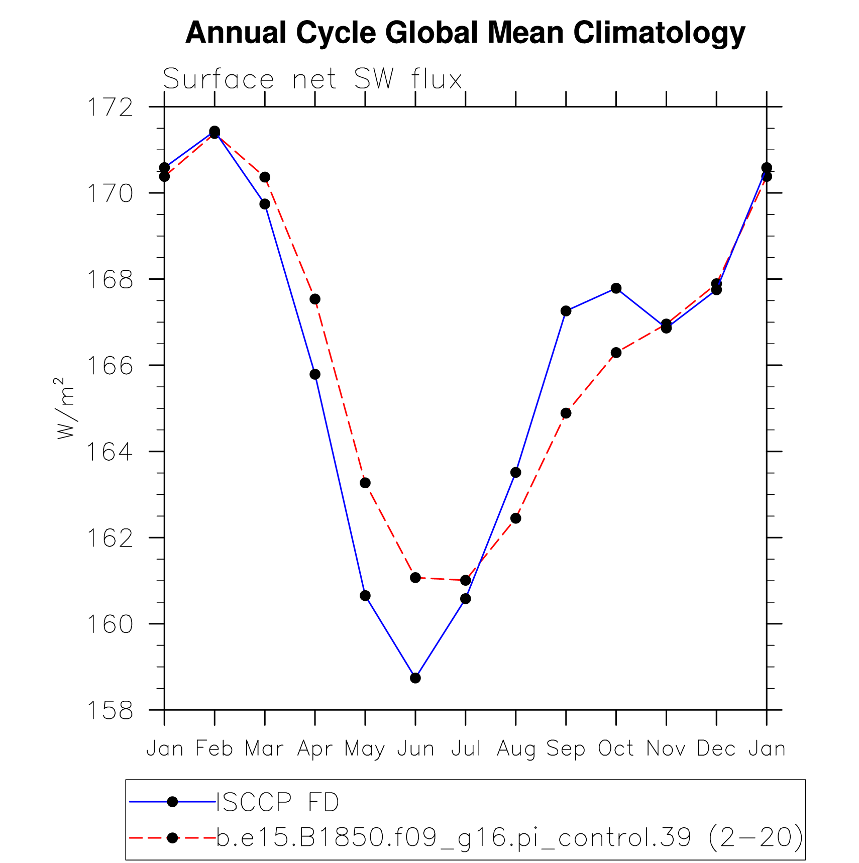 DIAG Set 10 - Annual cycle line plots of global means