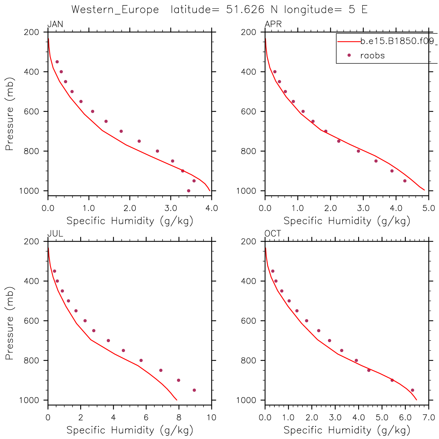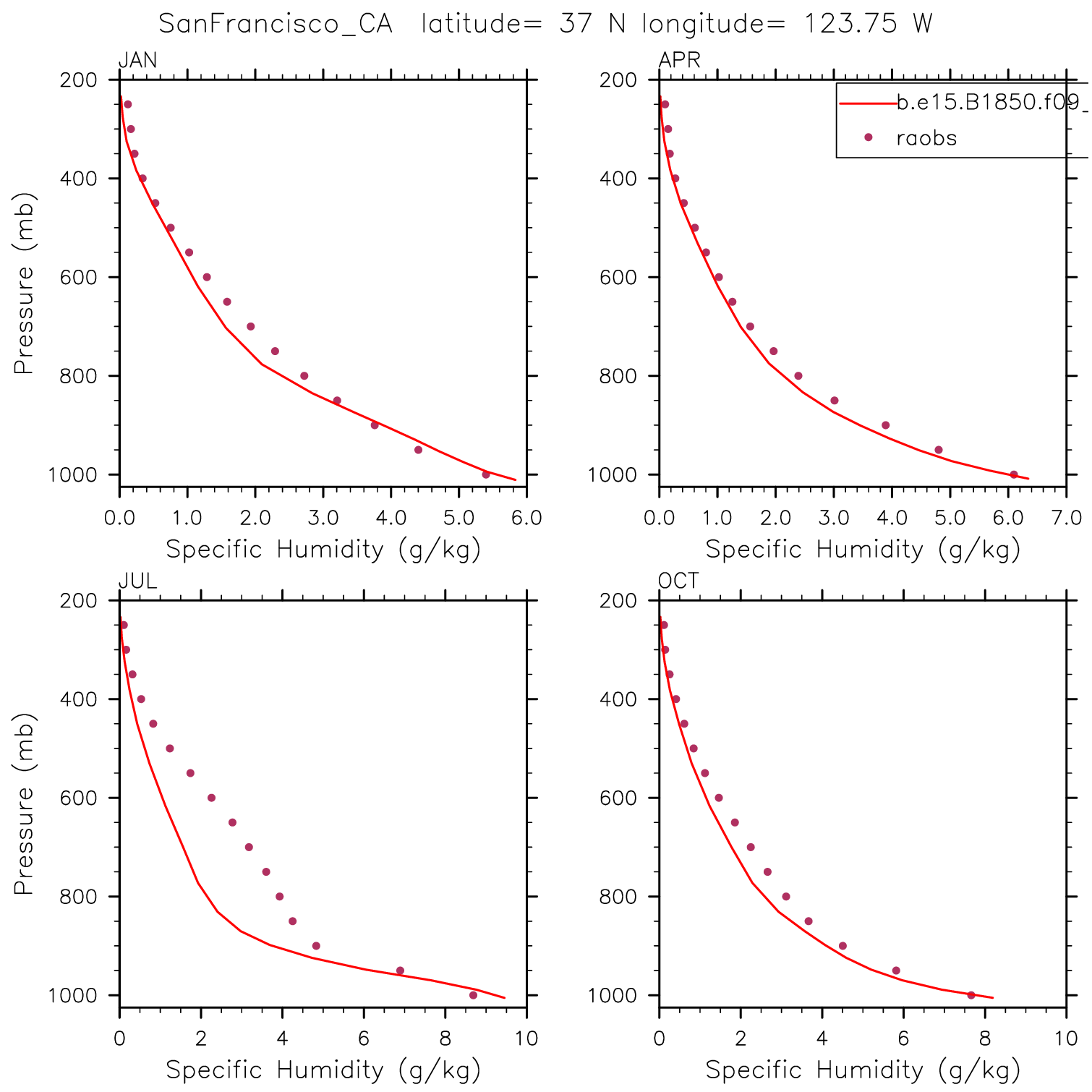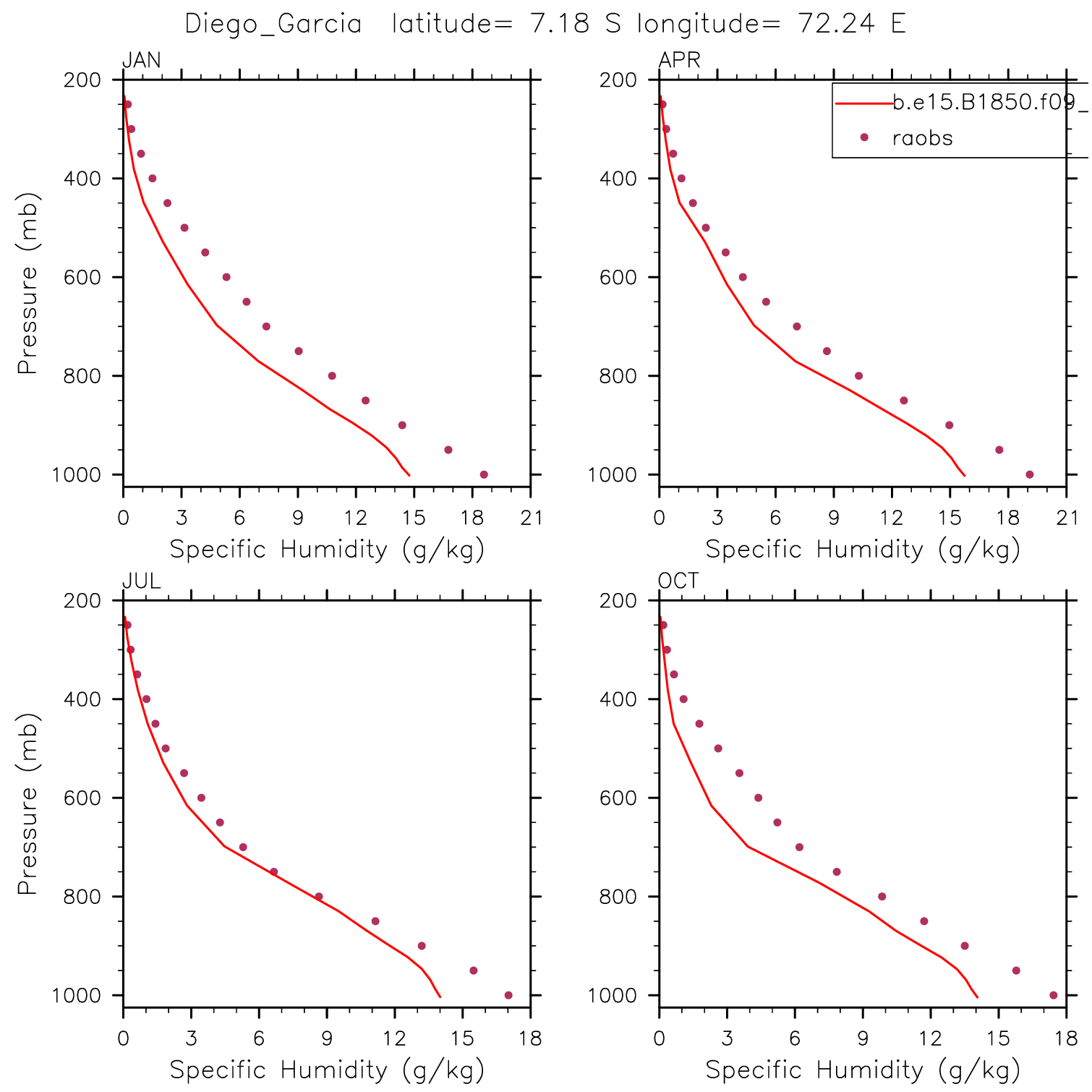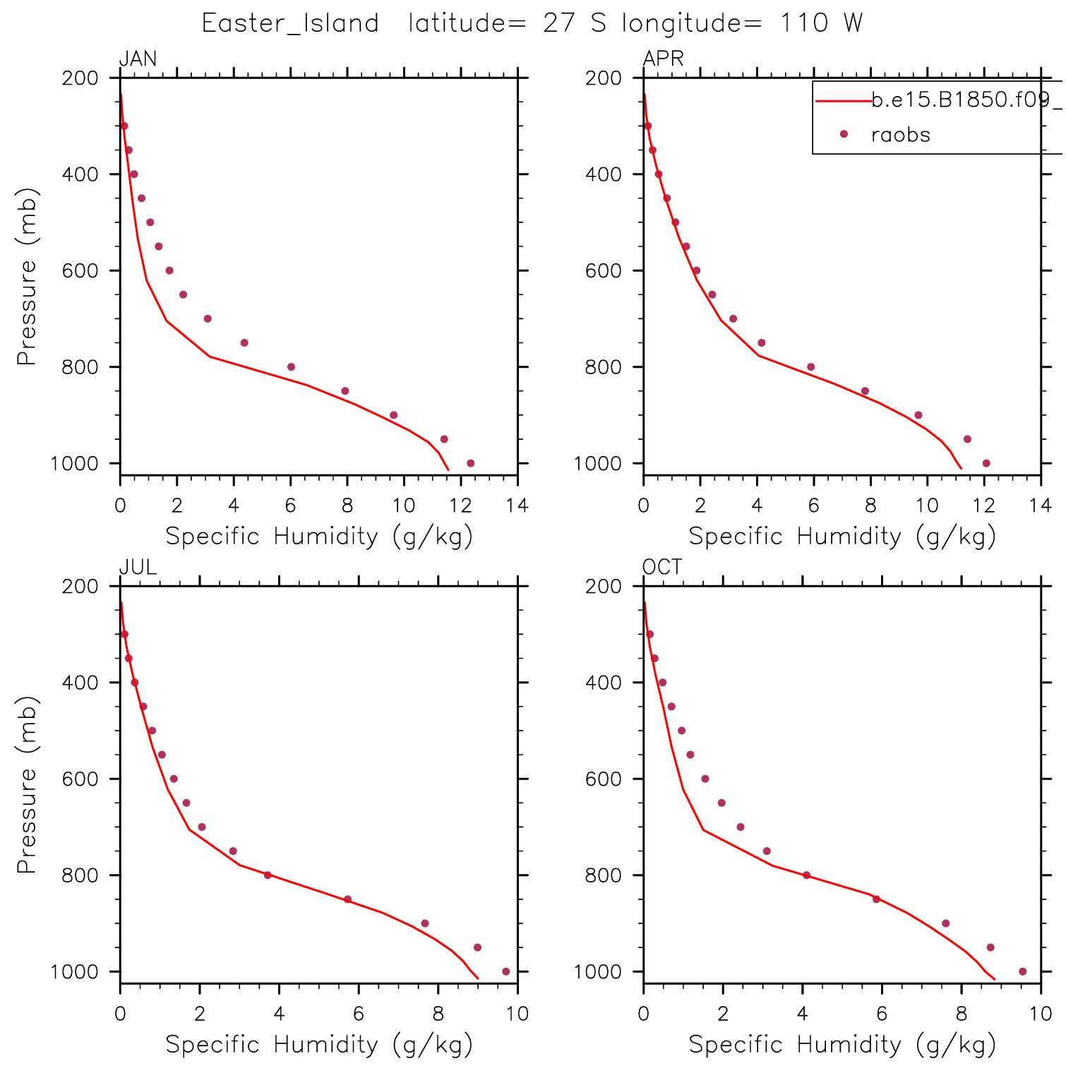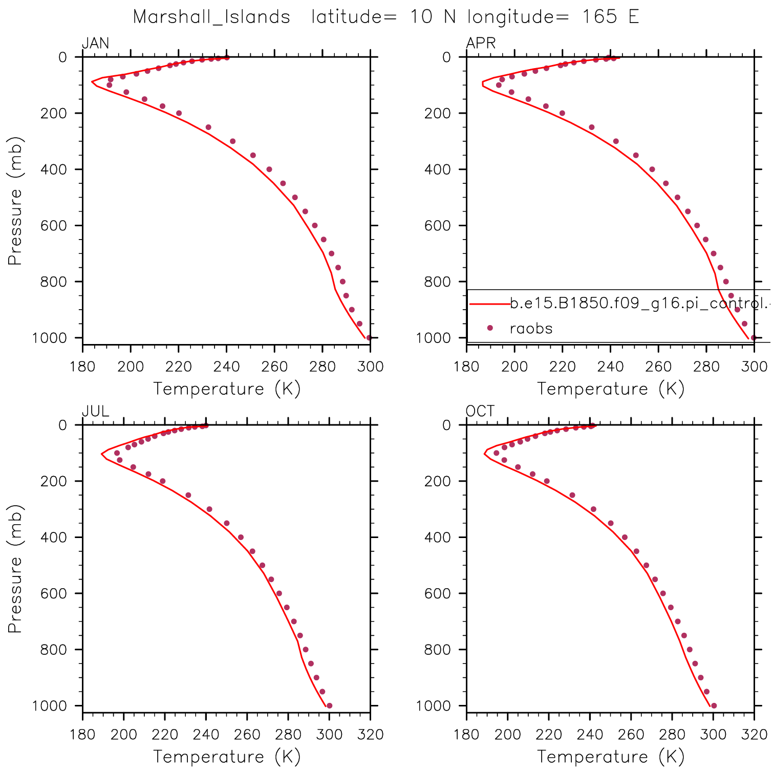 b.e15.B1850.f09_g16.pi_control.46 Set 12 - Vertical Profiles at 17 selected raobs stations