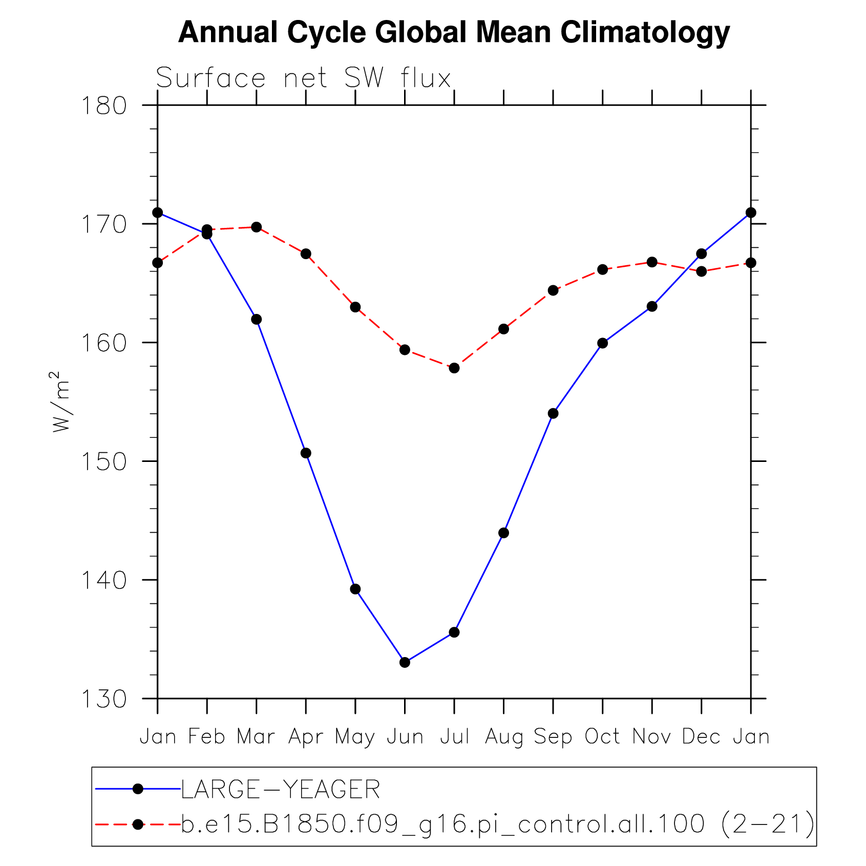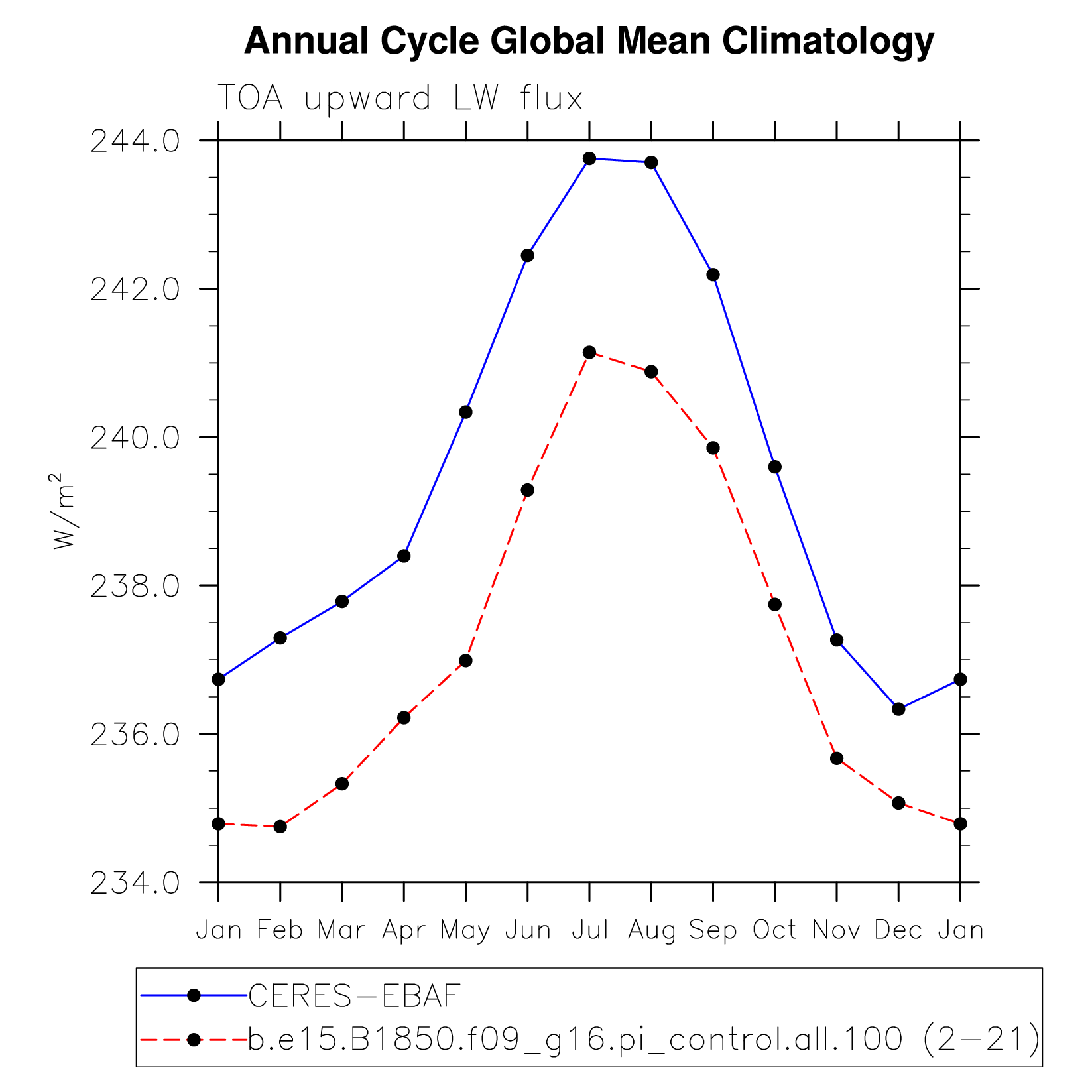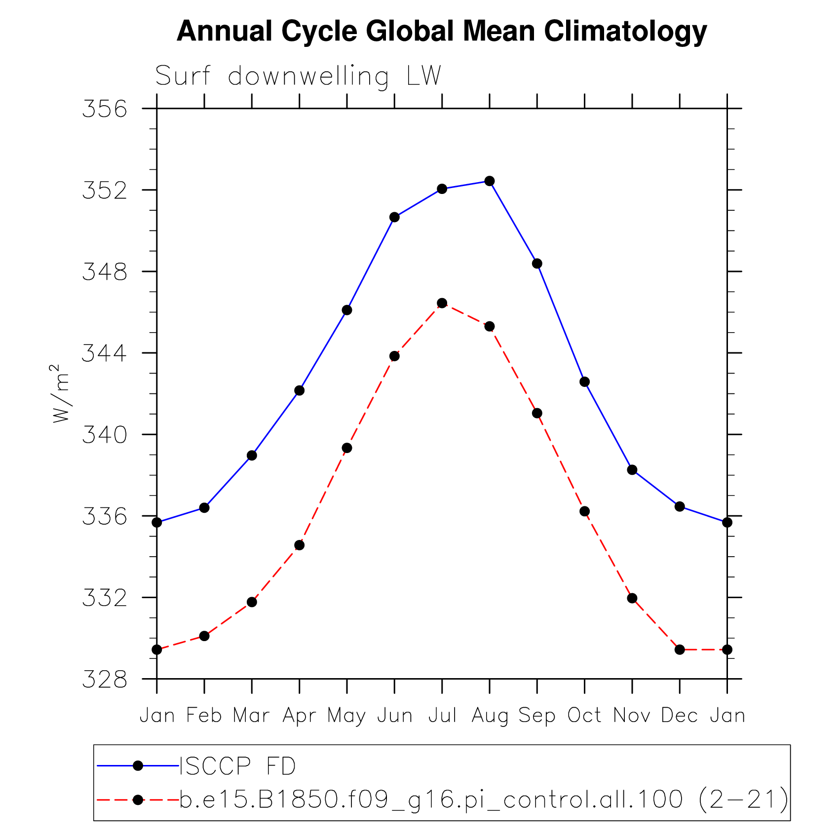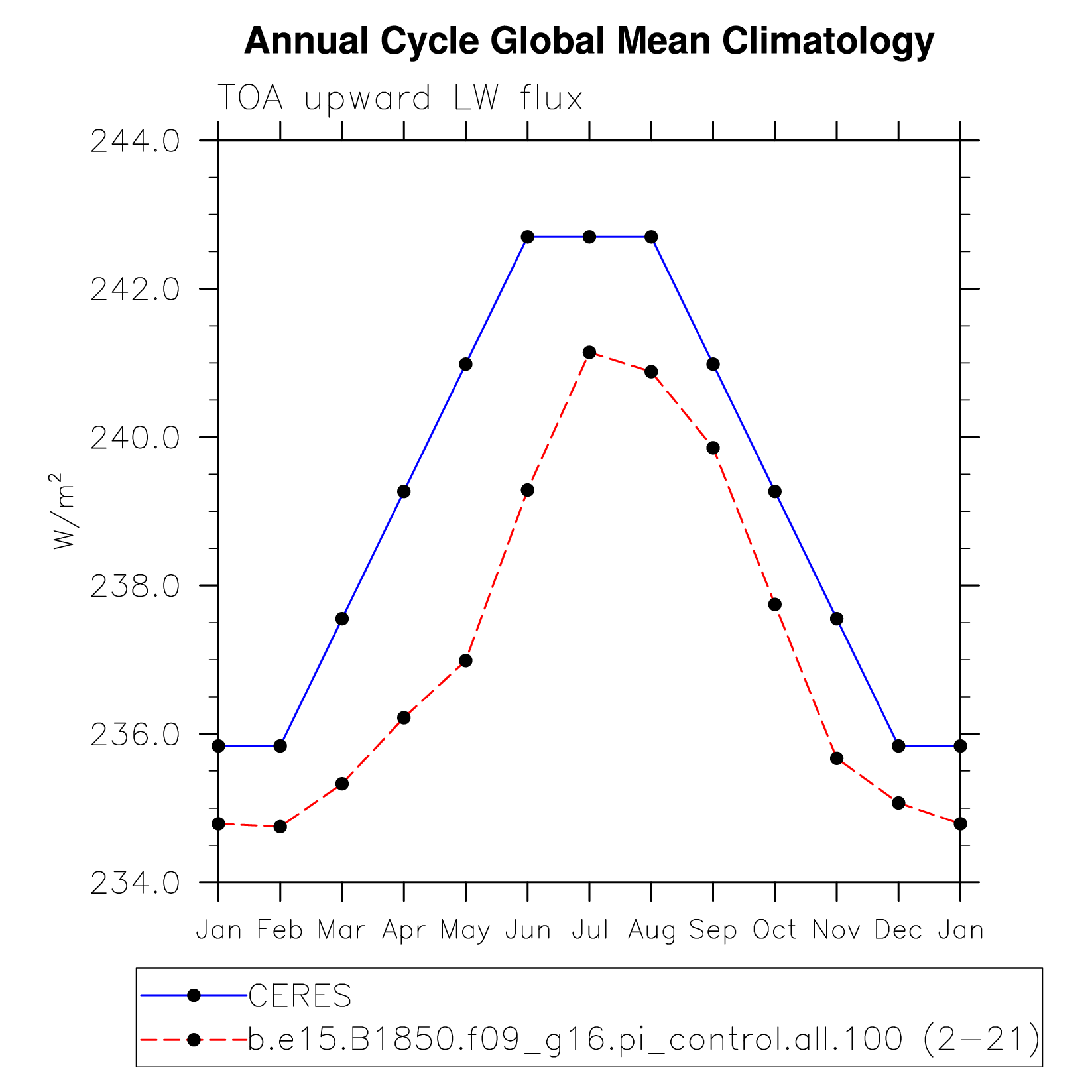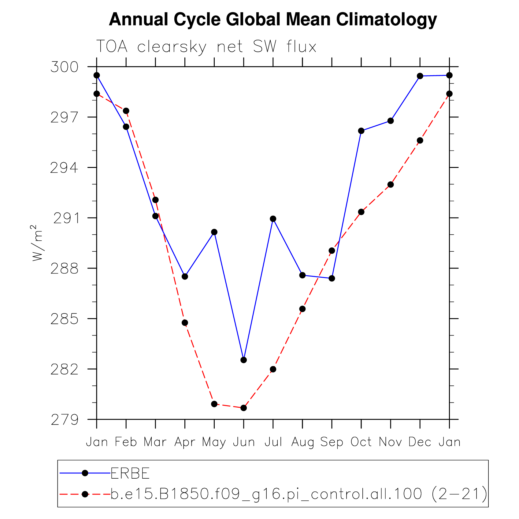DIAG Set 10 - Annual cycle line plots of global means
