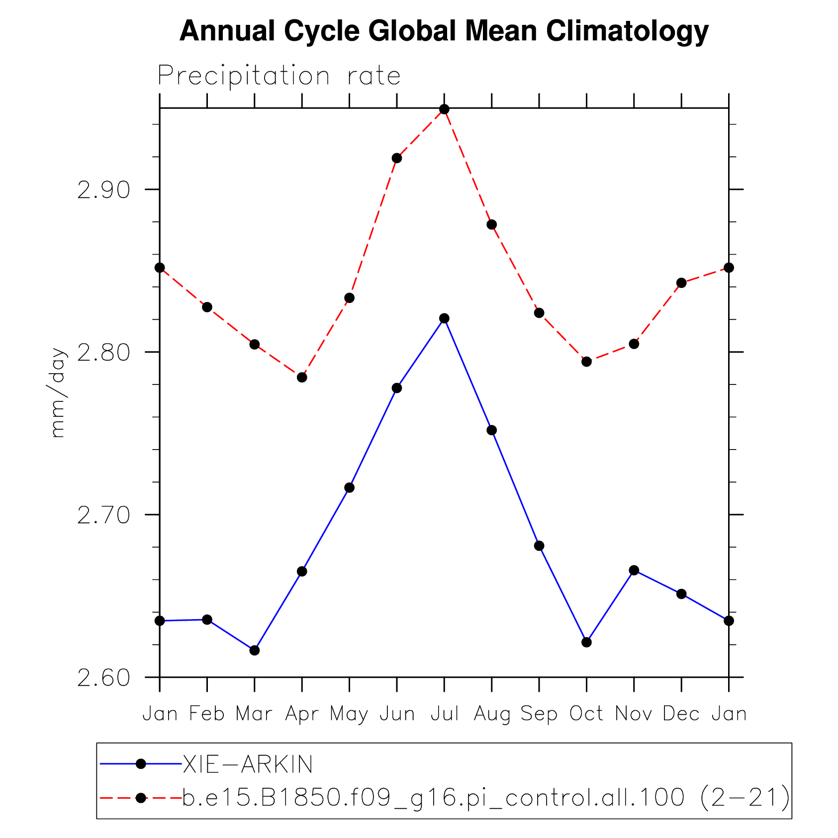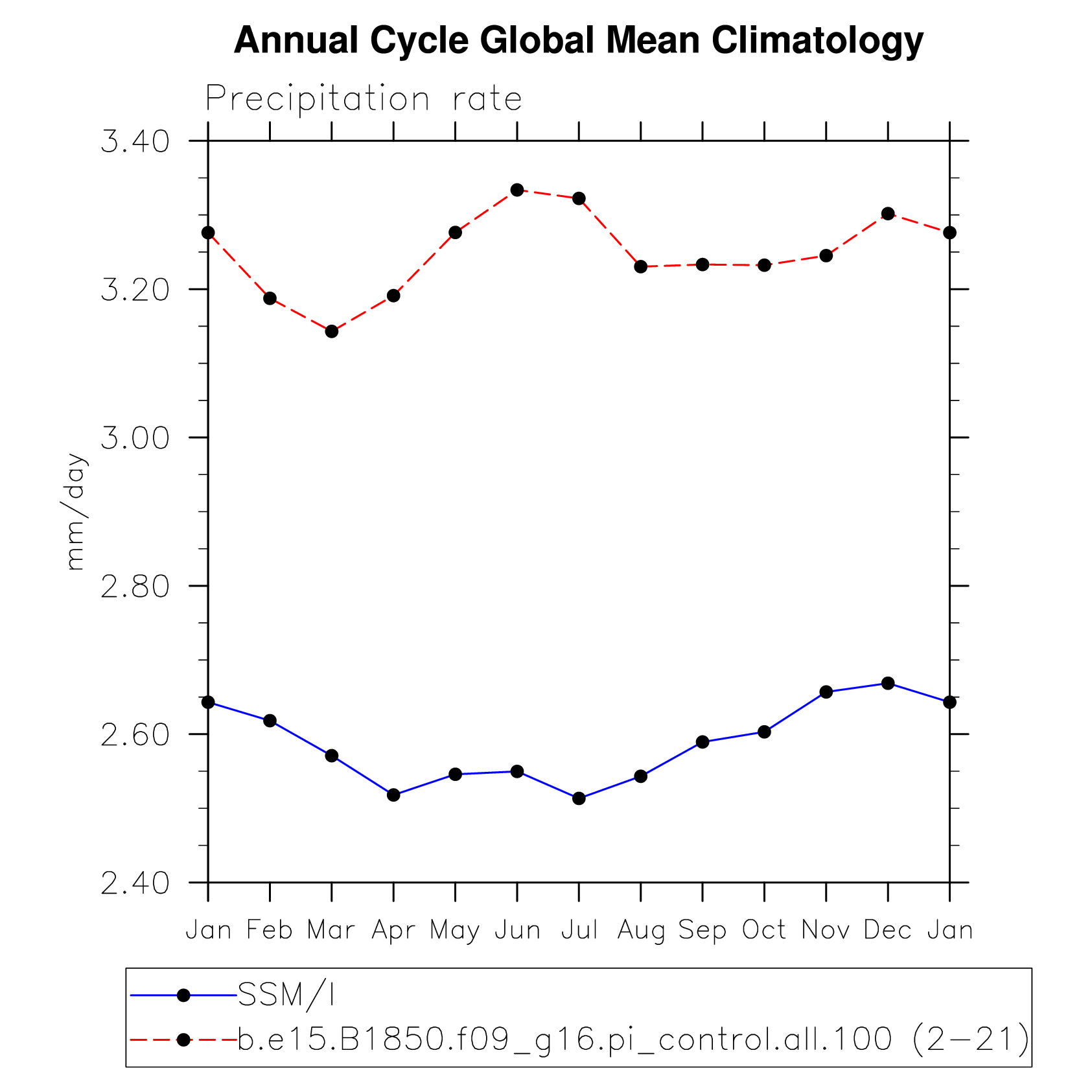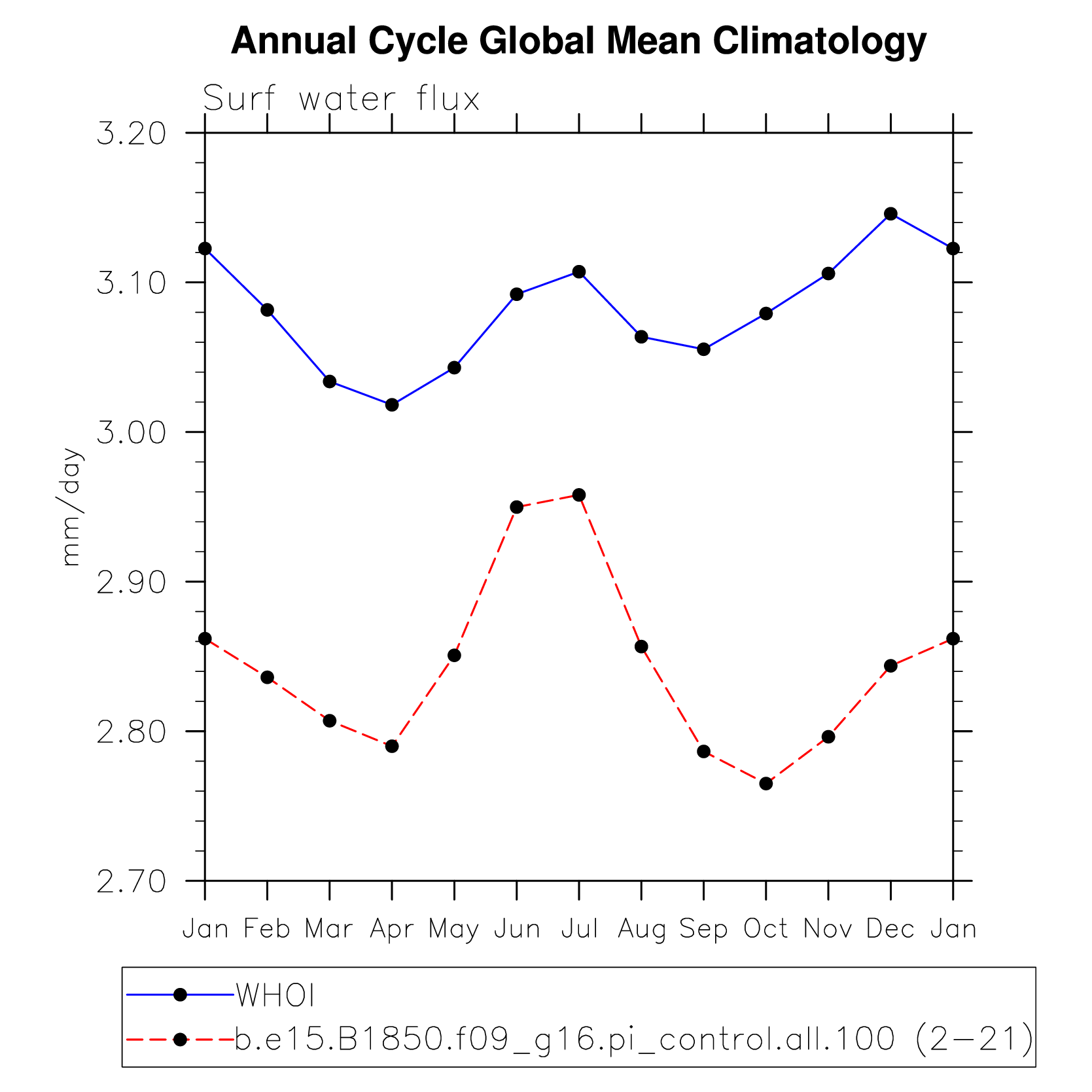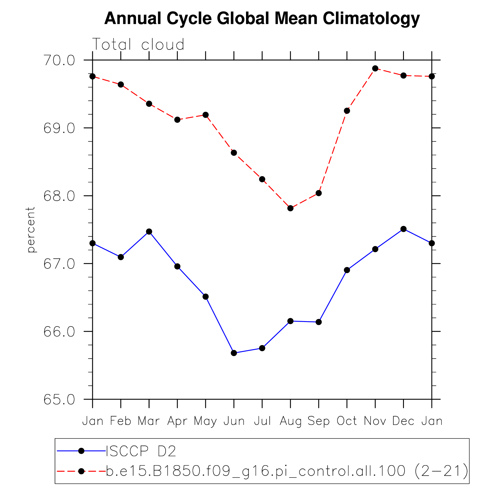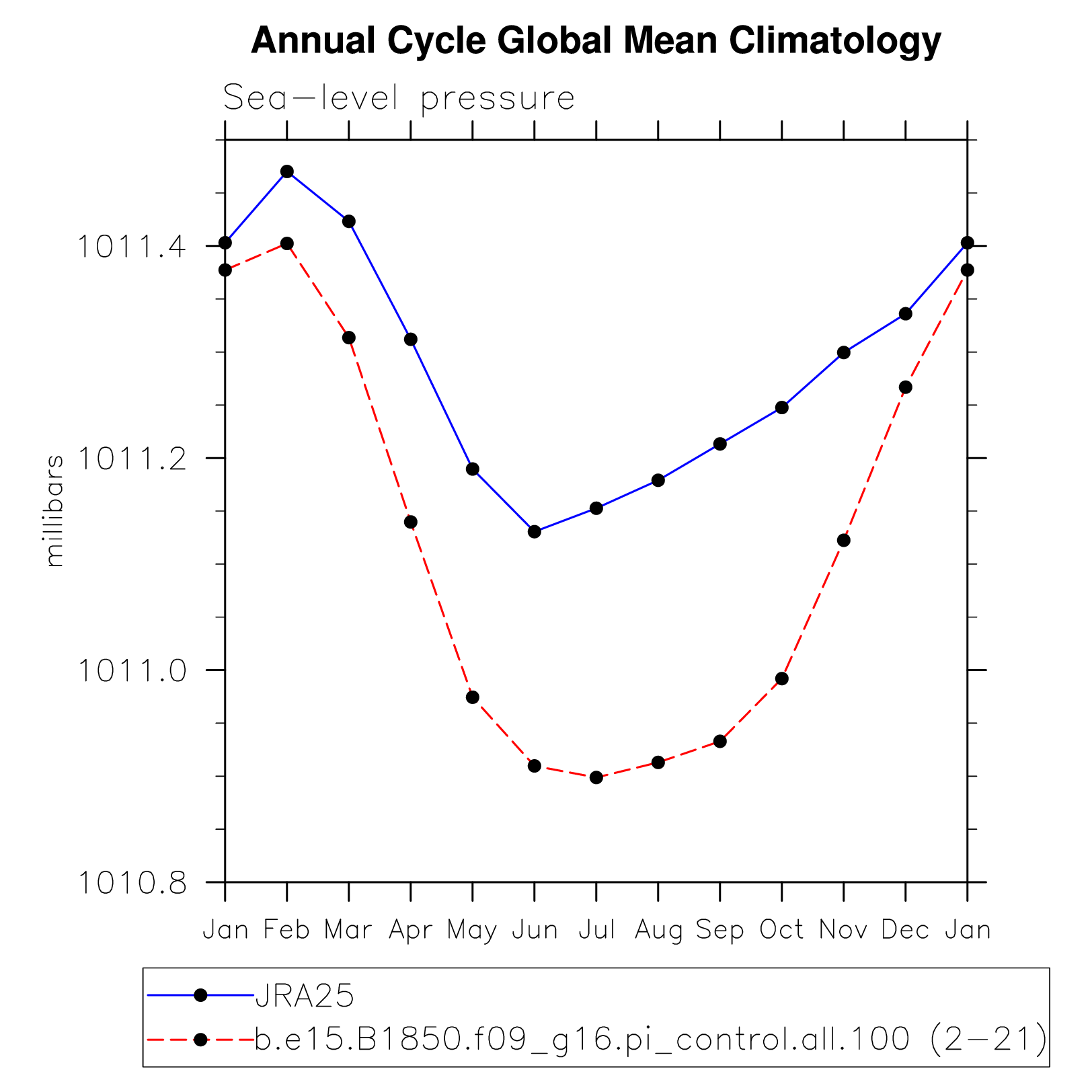 DIAG Set 10 - Annual cycle line plots of global means