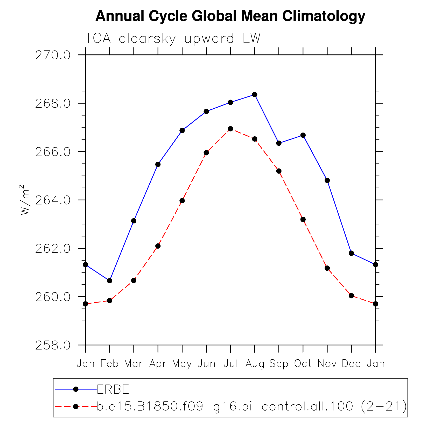 FLUTC TOA clearsky upward LW flux plot