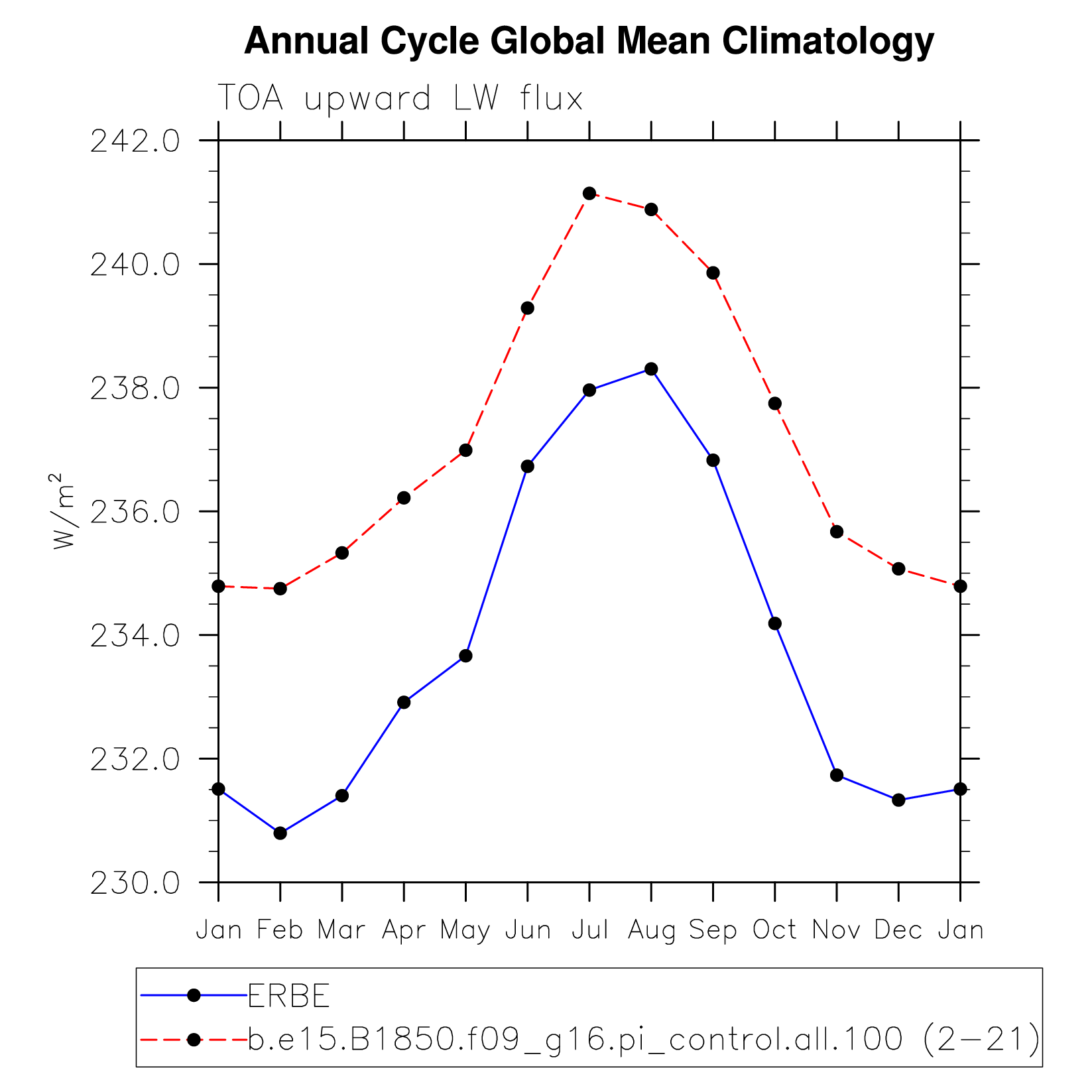 FLUT TOA upward longwave flux plot