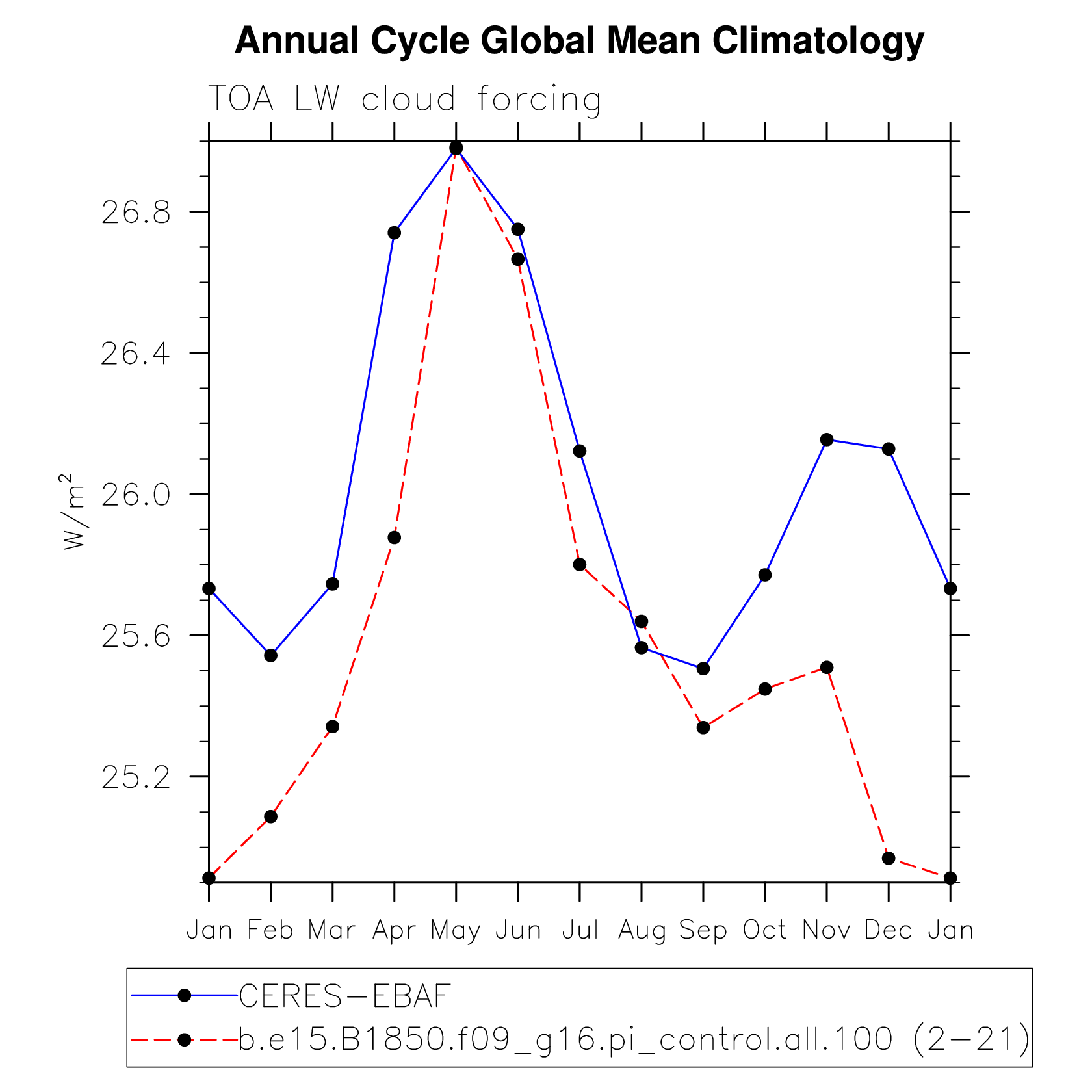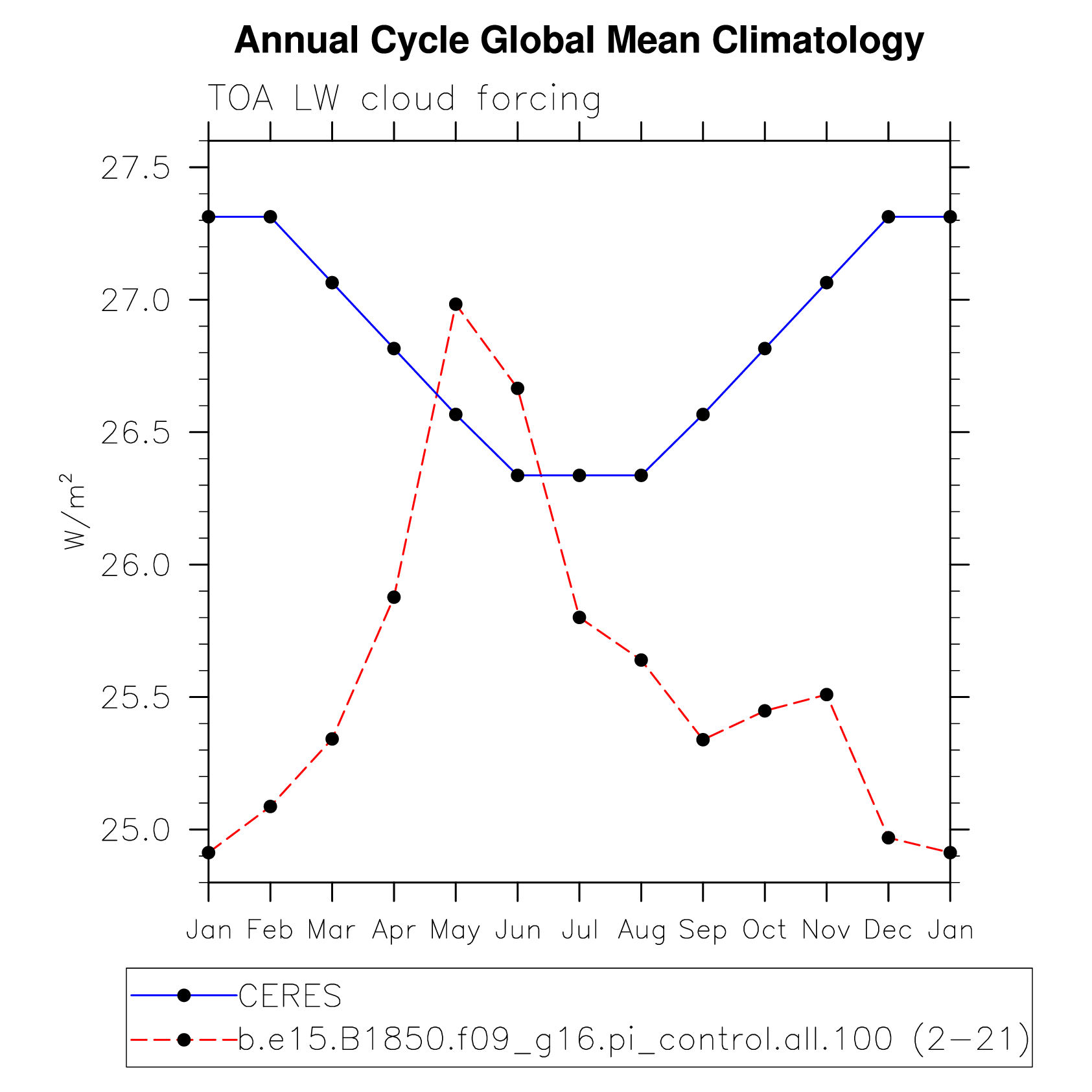 LWCF TOA longwave cloud forcing plot