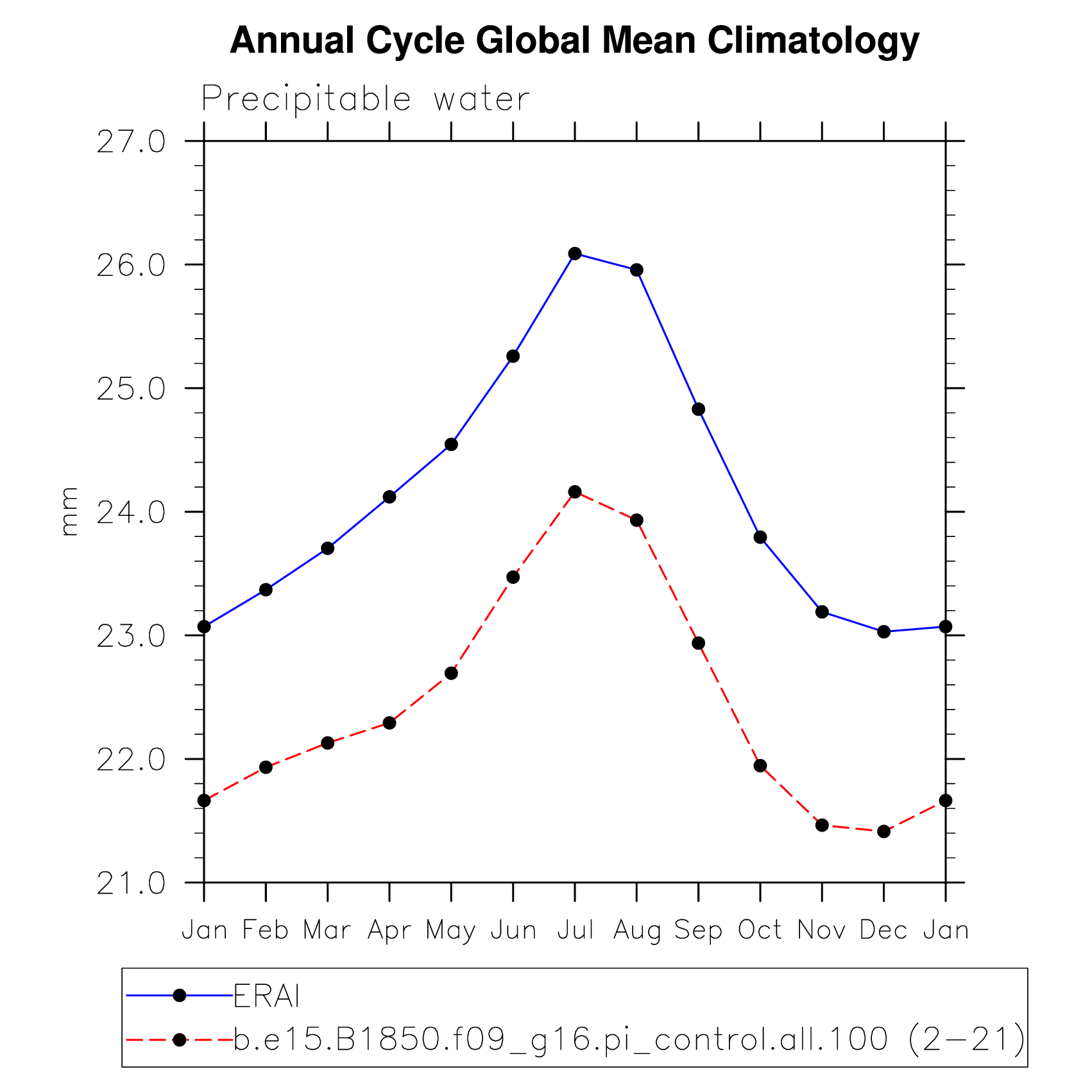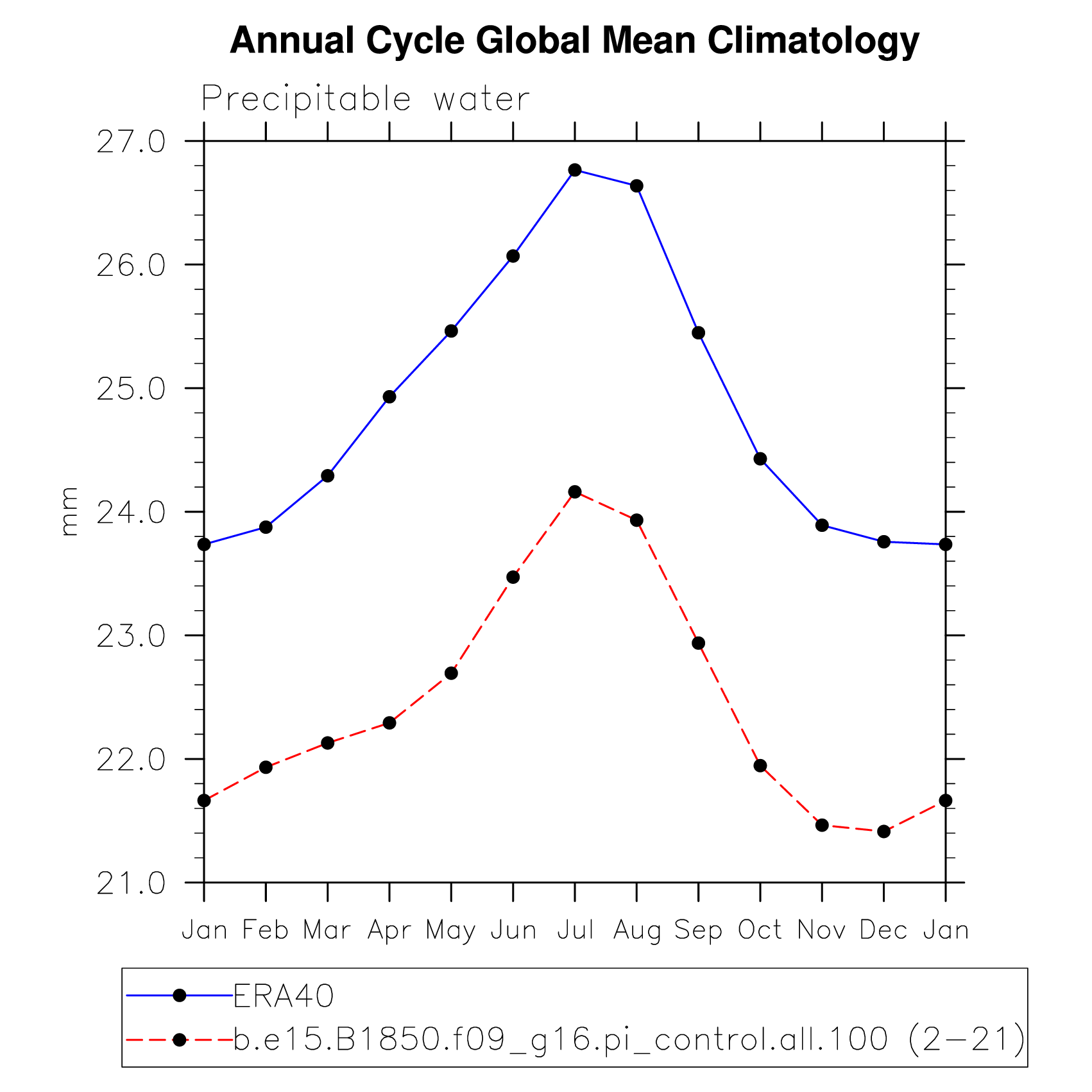 PREH2O Precipitable water (ocean) plot