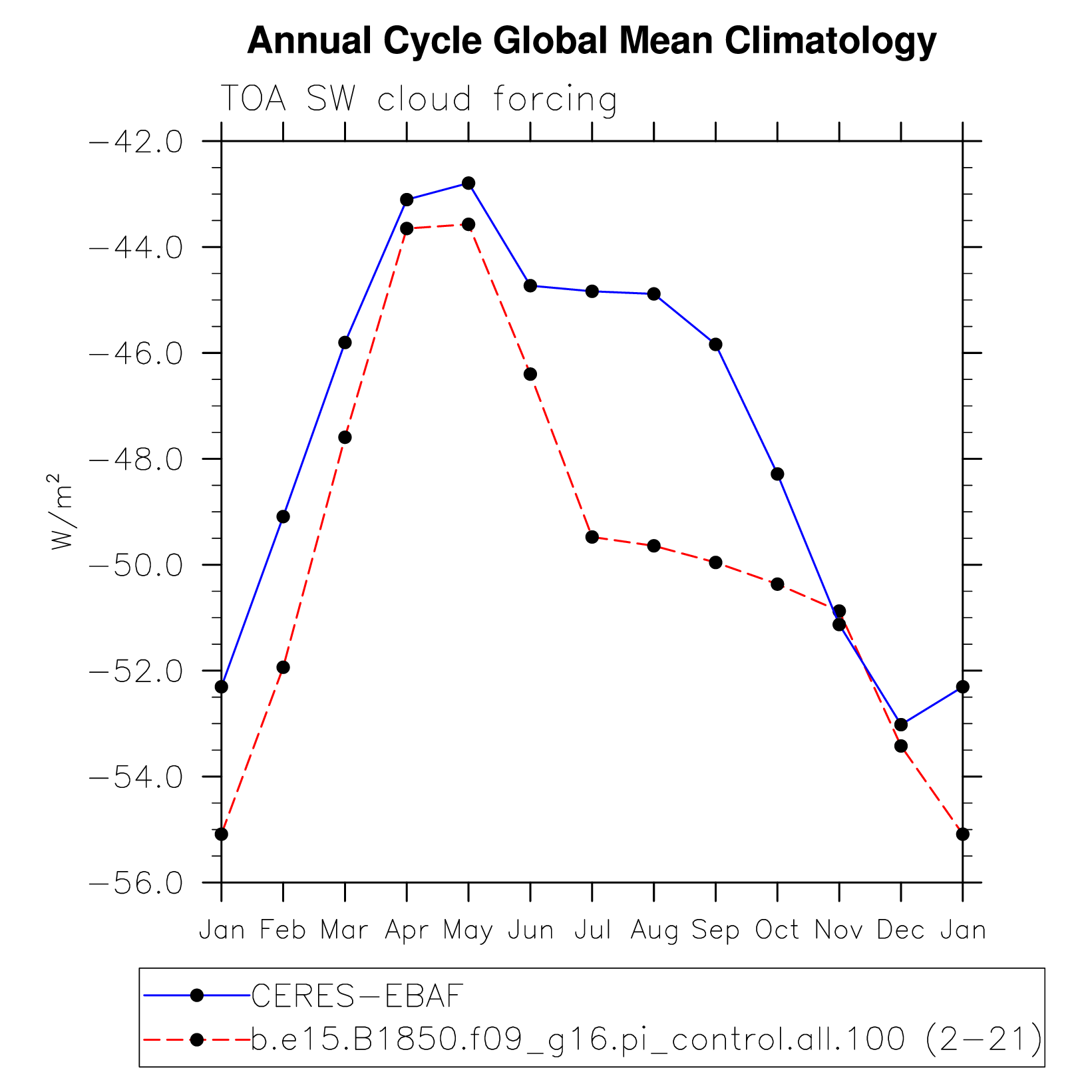 SWCF TOA shortwave cloud forcing plot