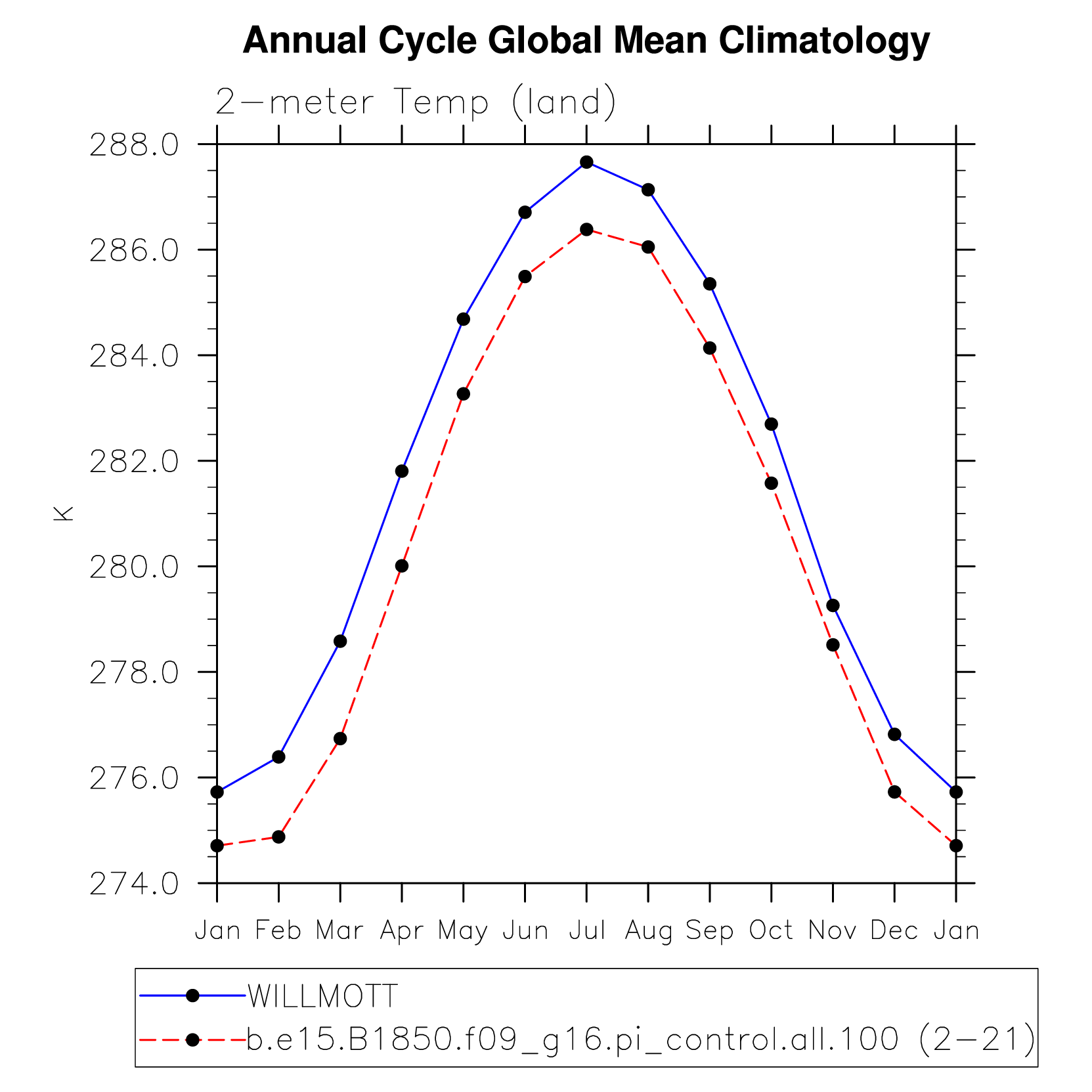 TREFHT 2-meter air temperature (land) plot