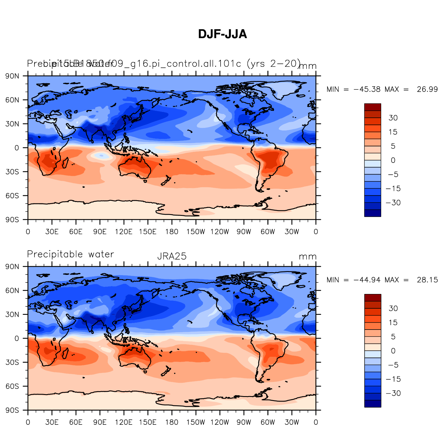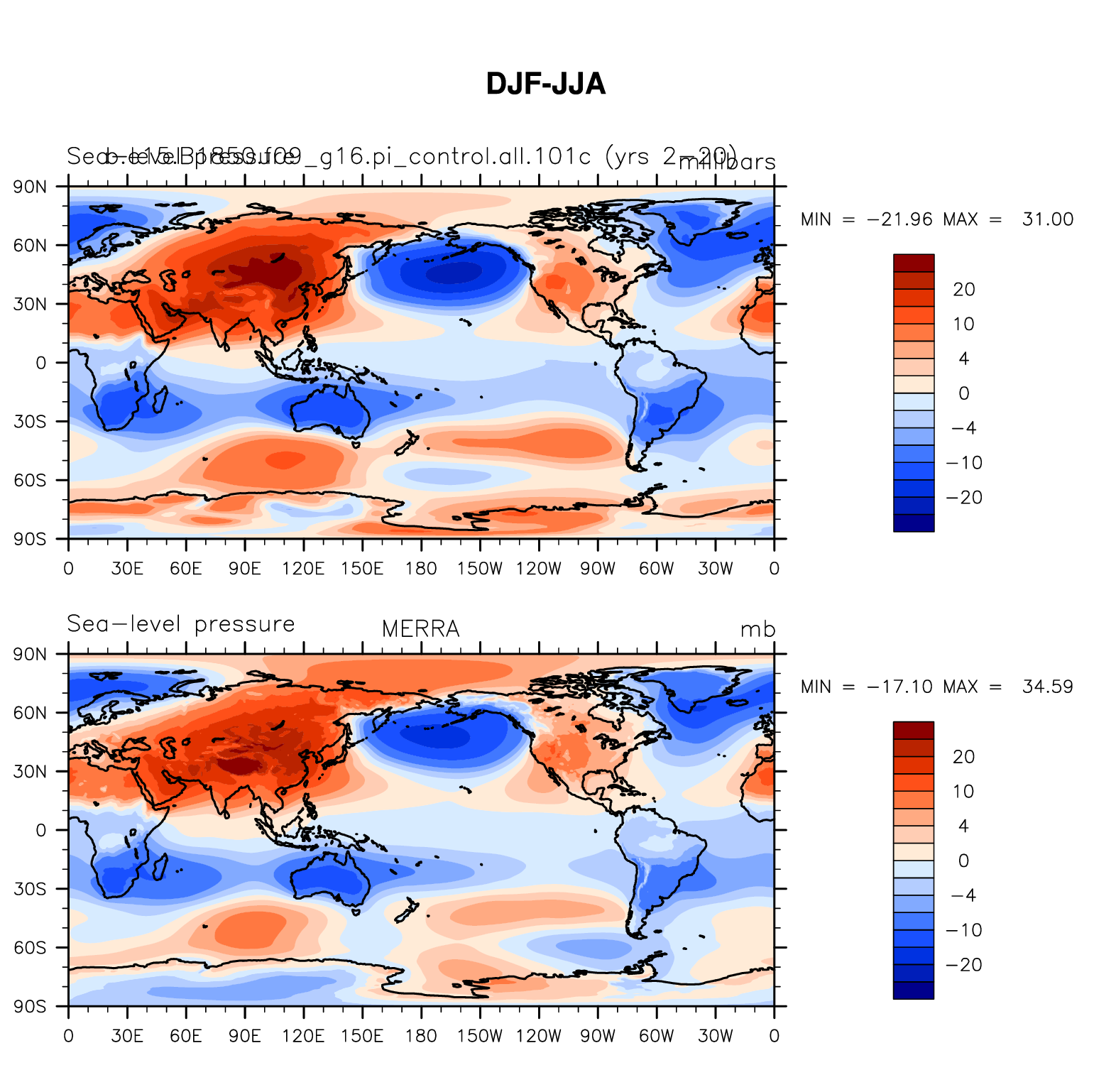 b.e15.B1850.f09_g16.pi_control.all.101c DIAG Set 9 - Horizontal contour plots of DJF-JJA differences