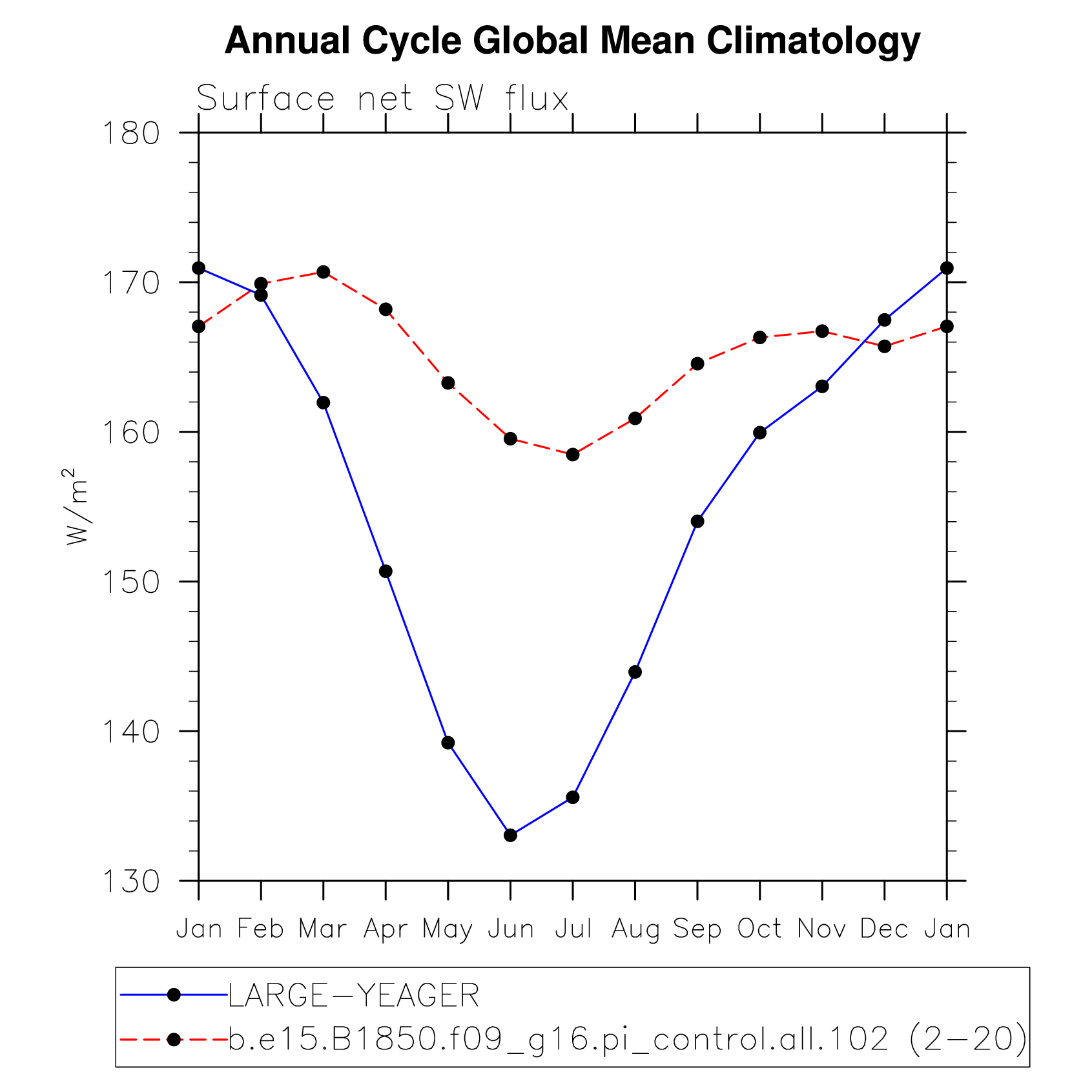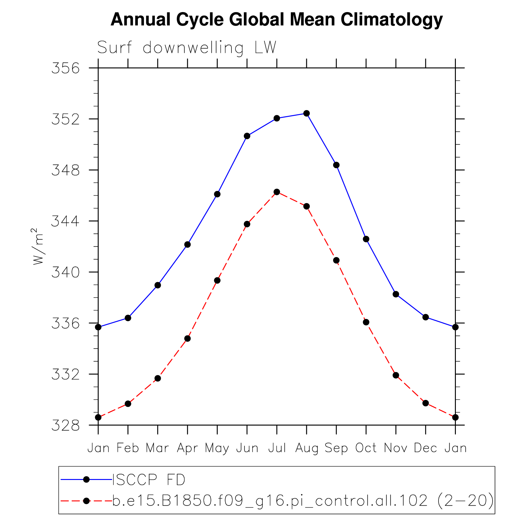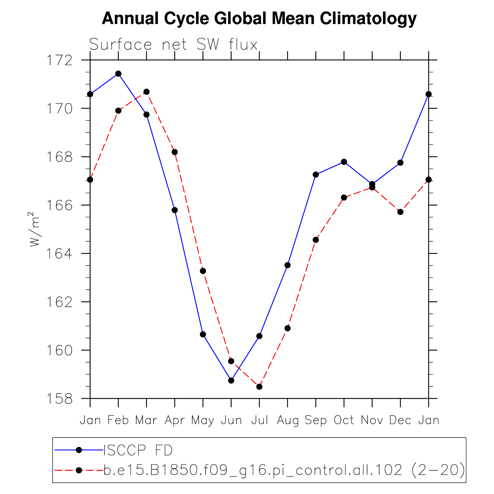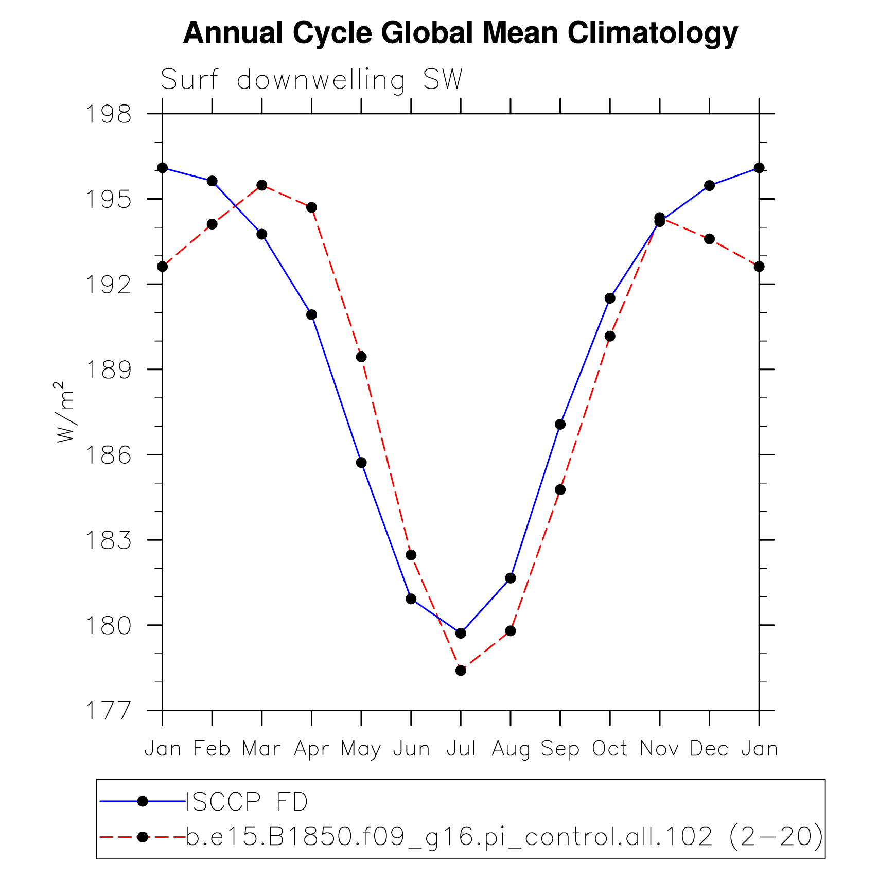 DIAG Set 10 - Annual cycle line plots of global means
