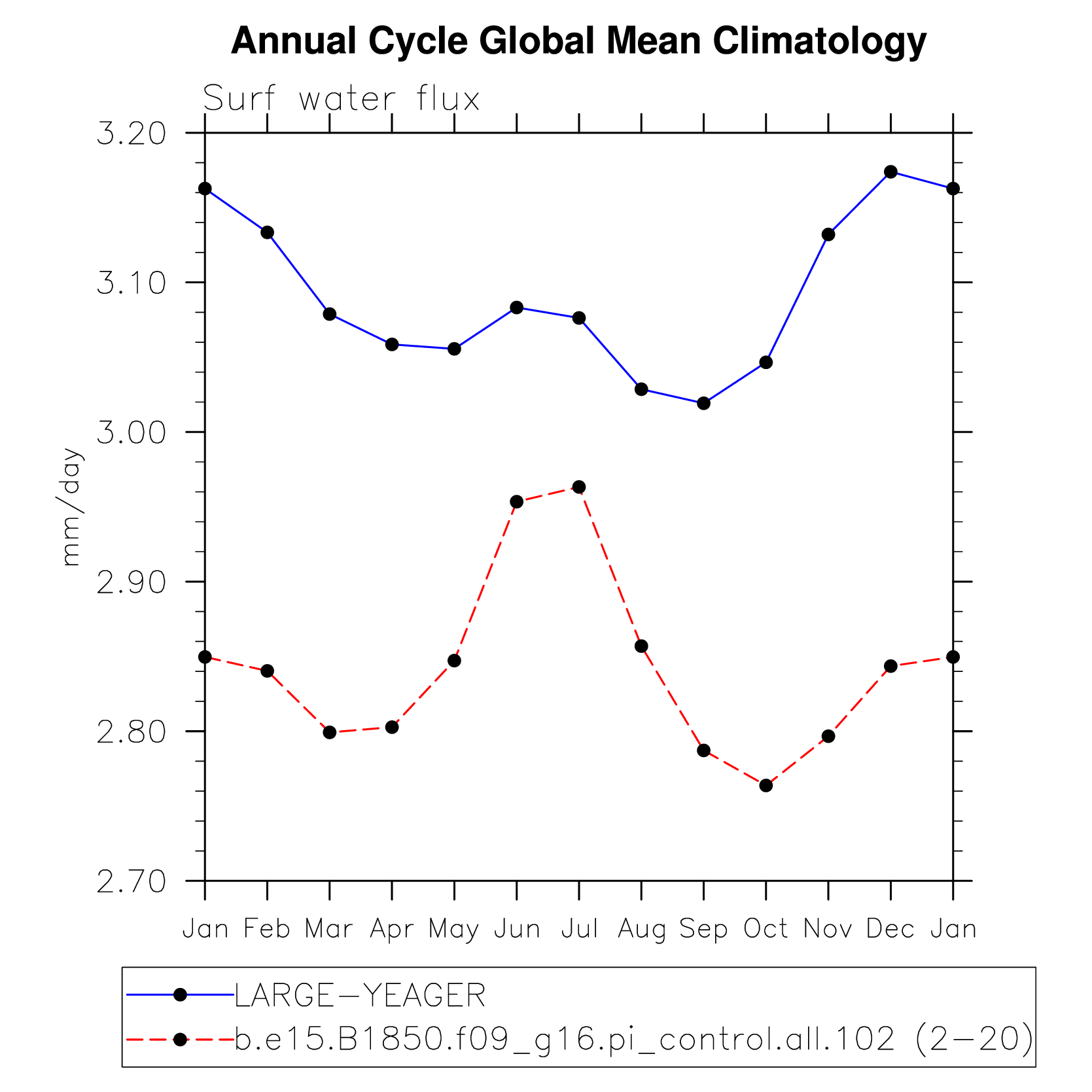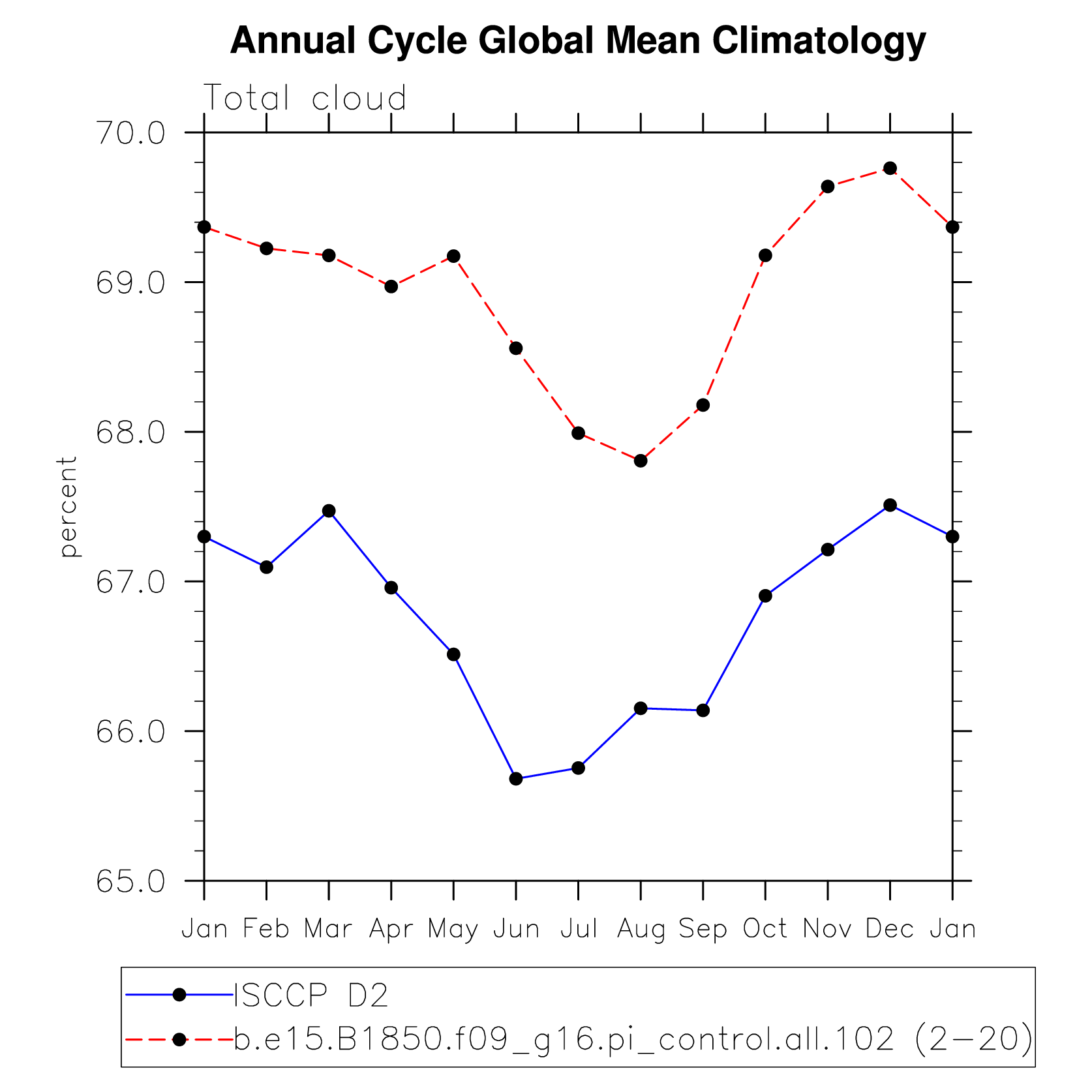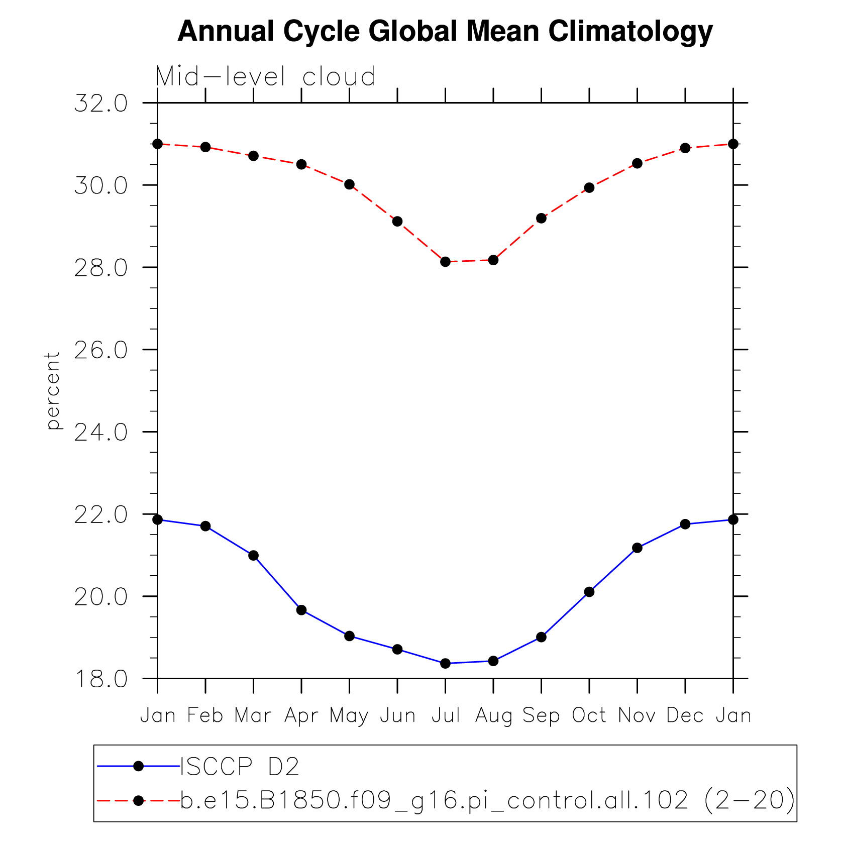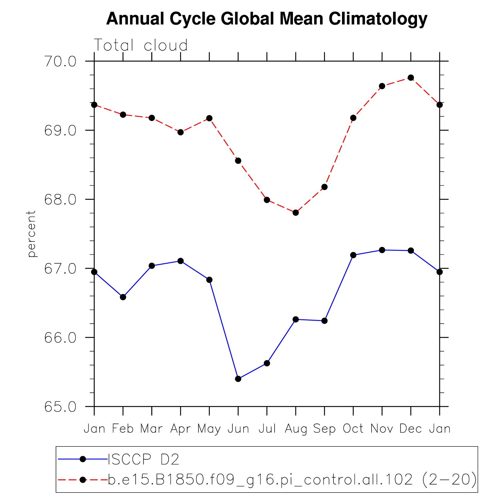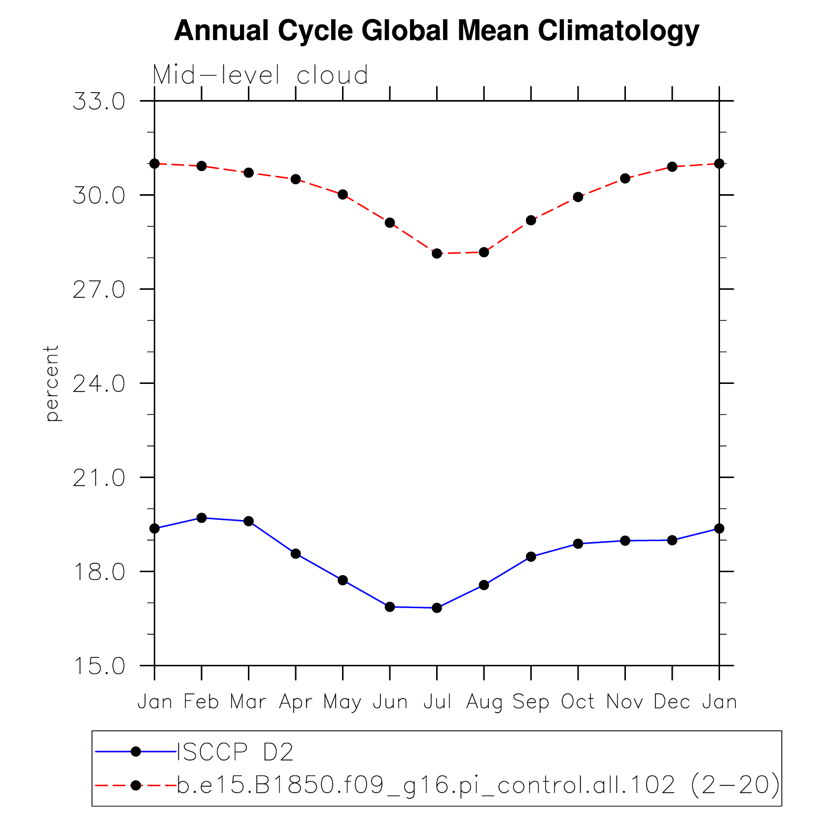 DIAG Set 10 - Annual cycle line plots of global means