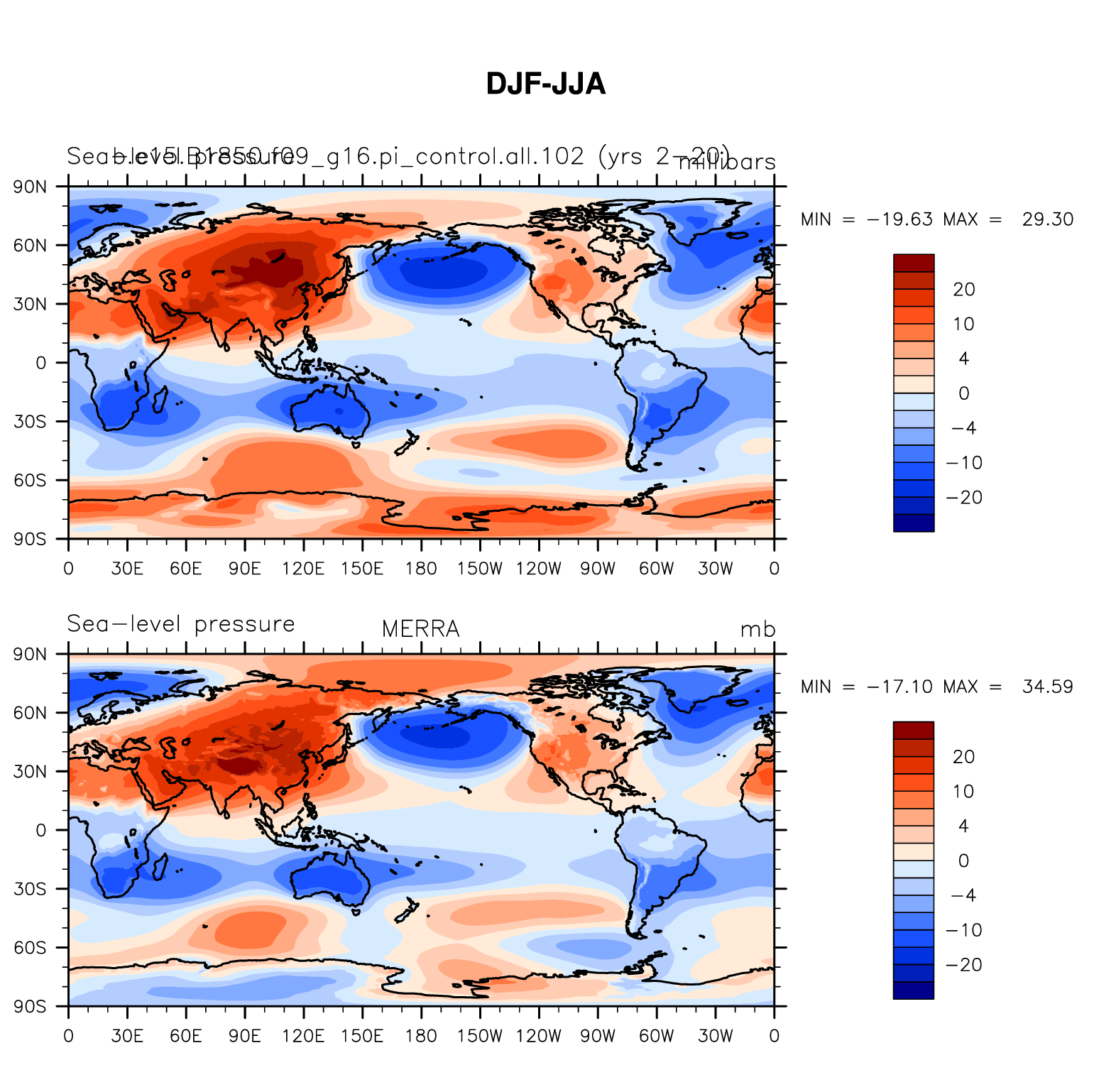 b.e15.B1850.f09_g16.pi_control.all.102 DIAG Set 9 - Horizontal contour plots of DJF-JJA differences