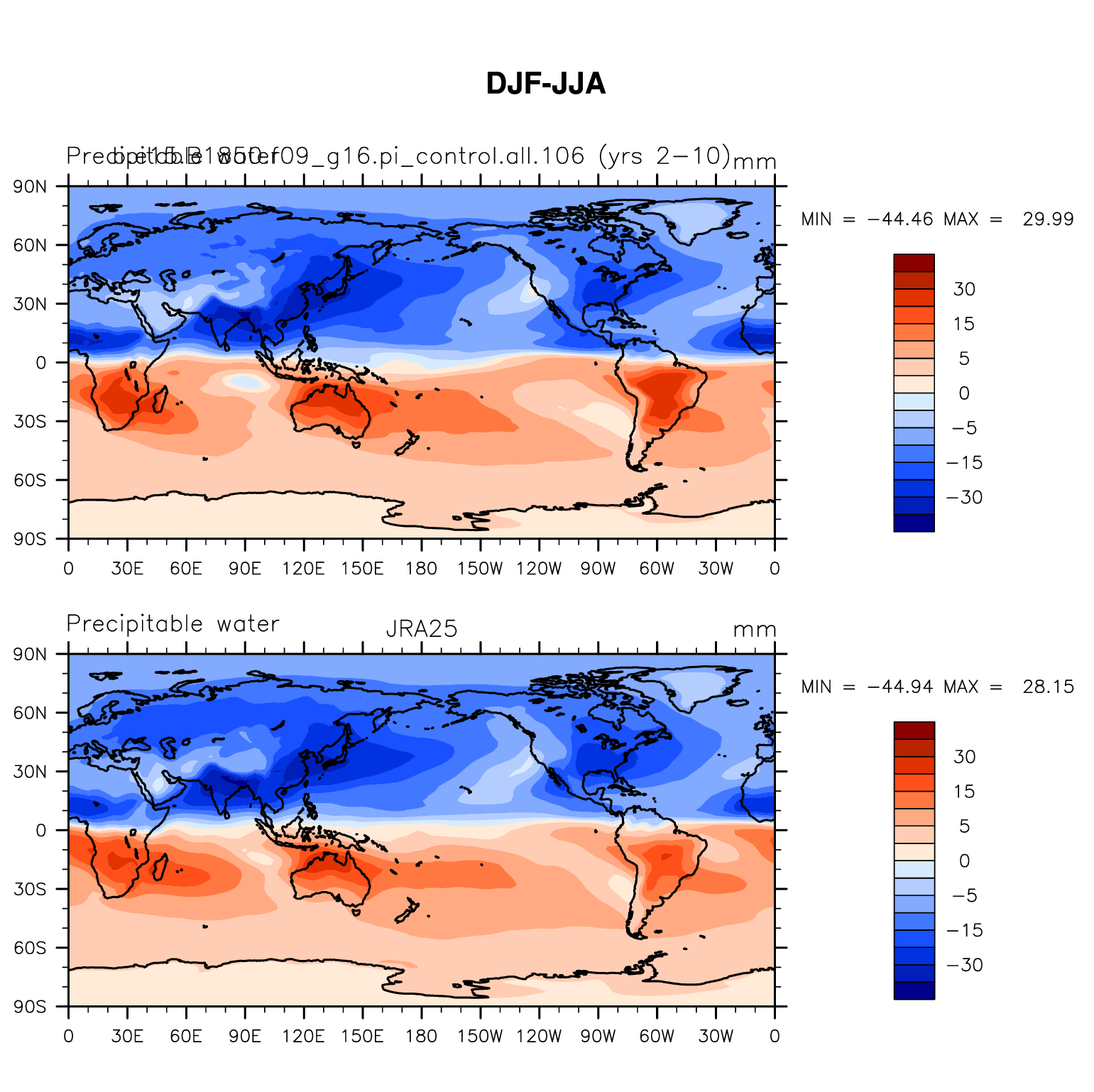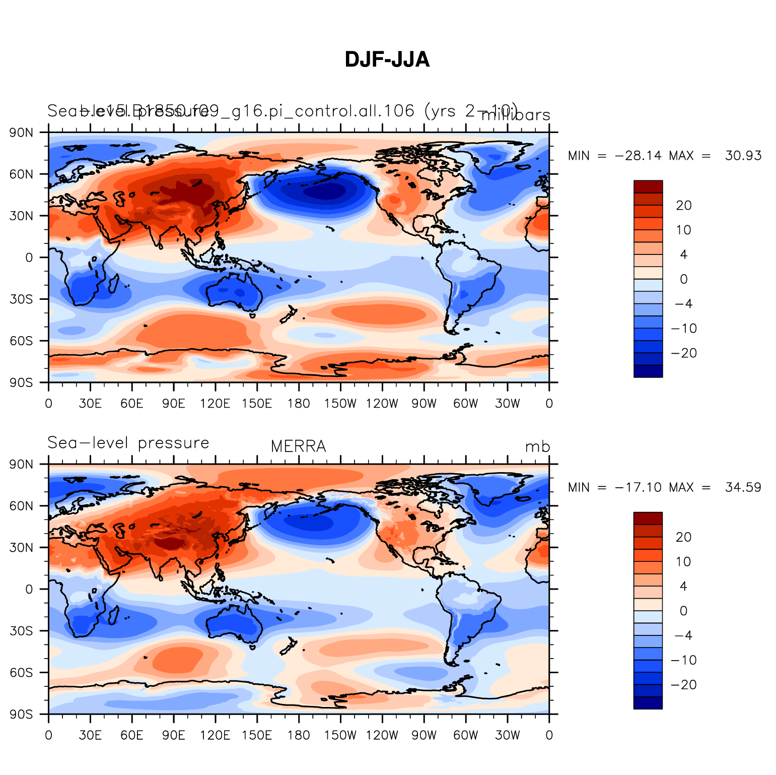 b.e15.B1850.f09_g16.pi_control.all.106 DIAG Set 9 - Horizontal contour plots of DJF-JJA differences