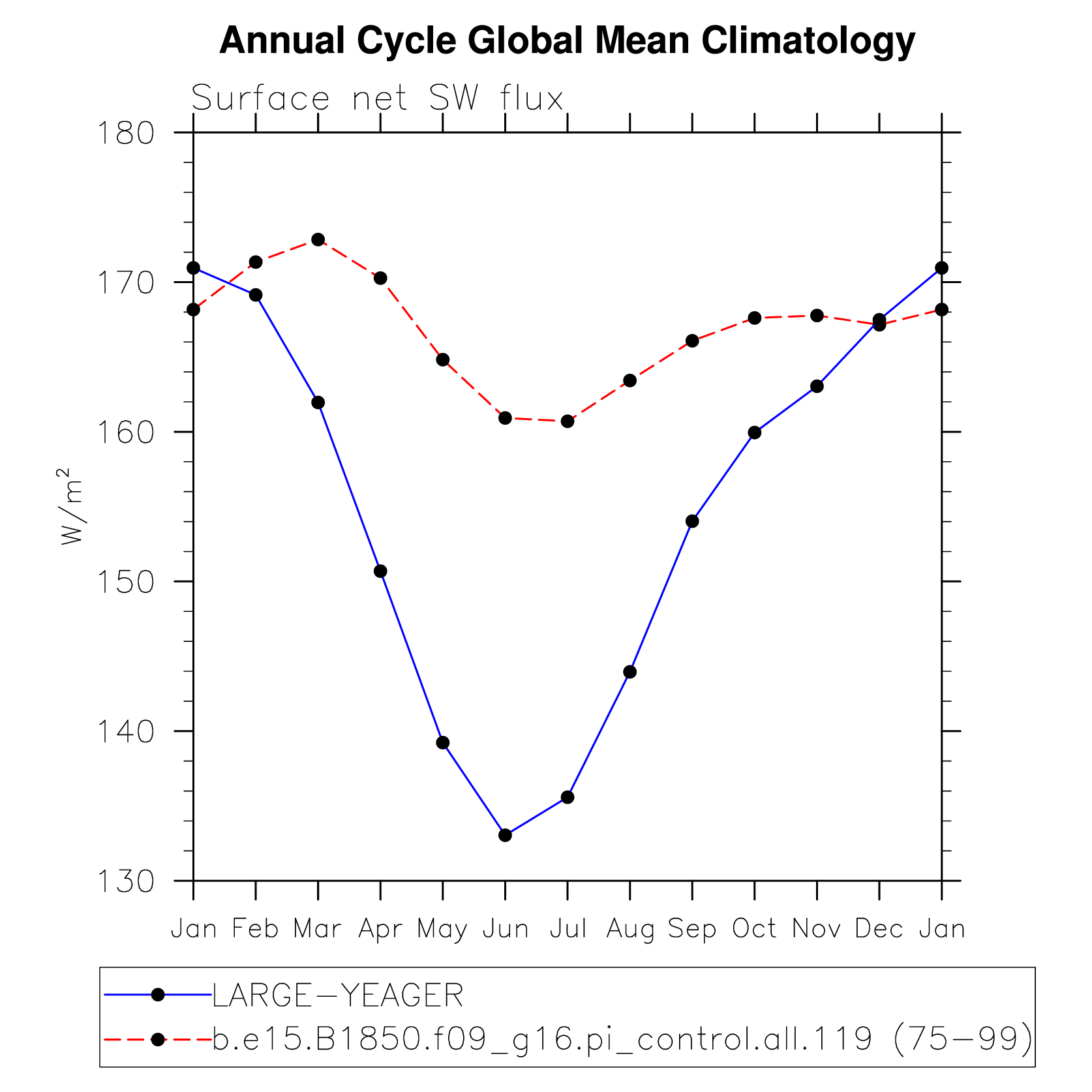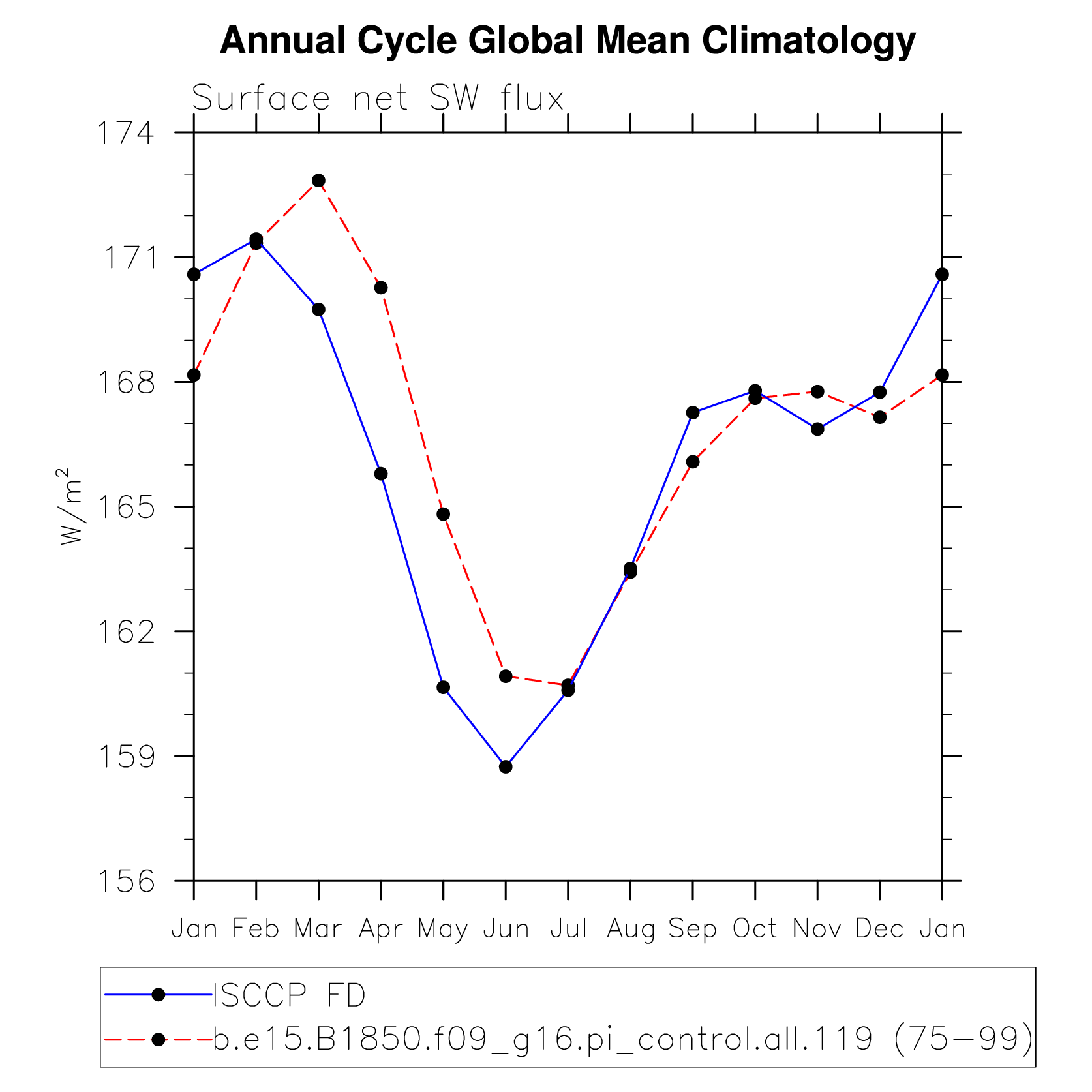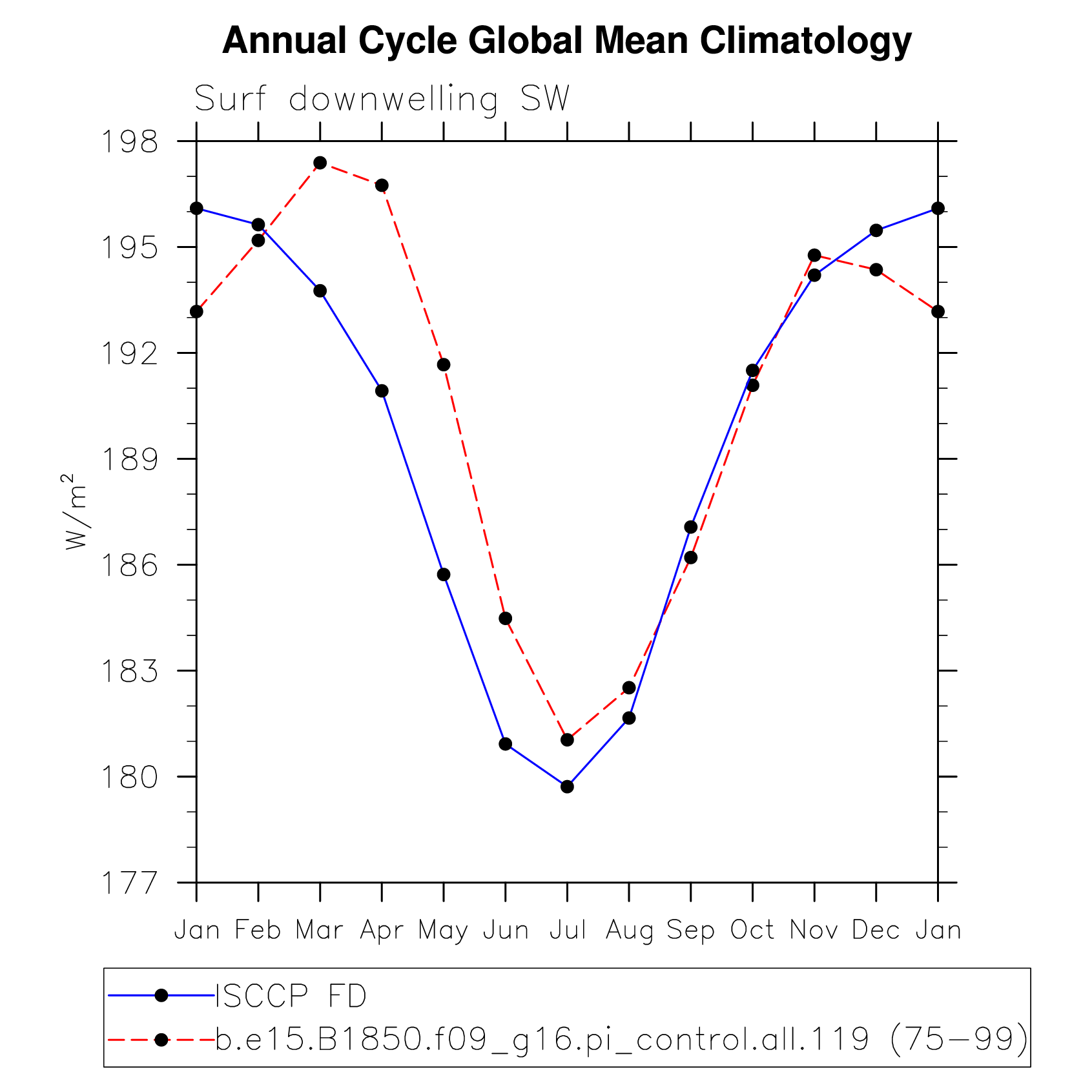DIAG Set 10 - Annual cycle line plots of global means