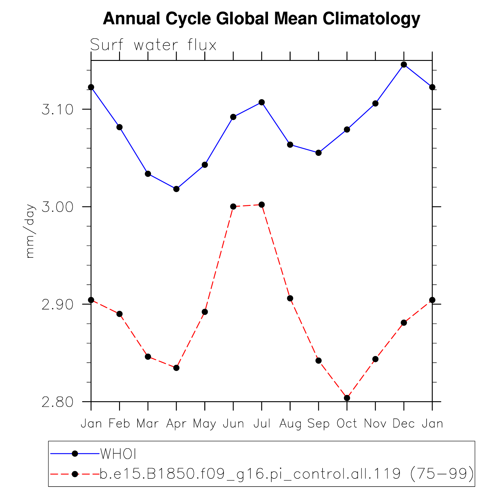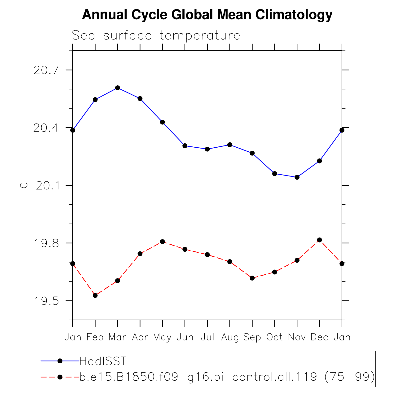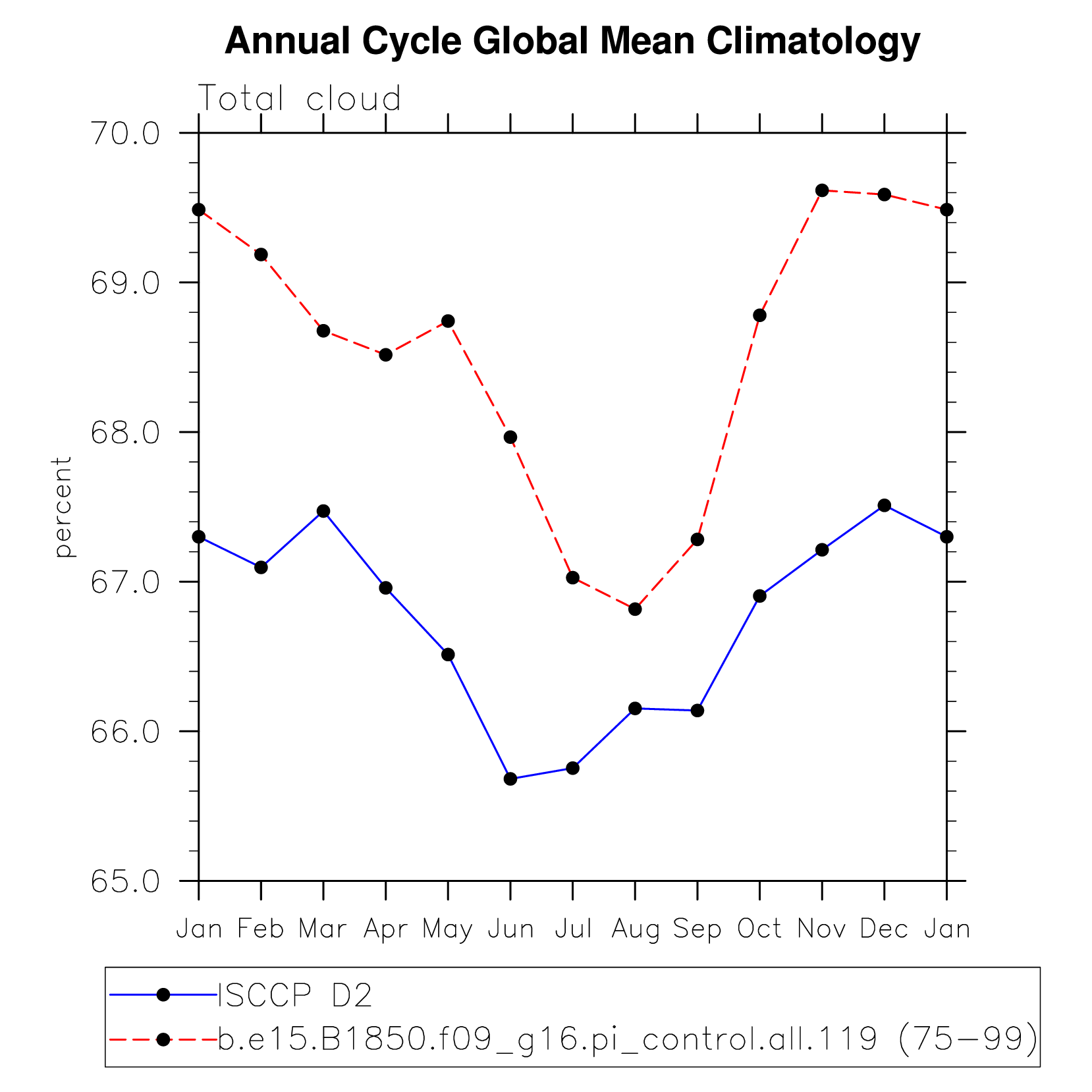 DIAG Set 10 - Annual cycle line plots of global means