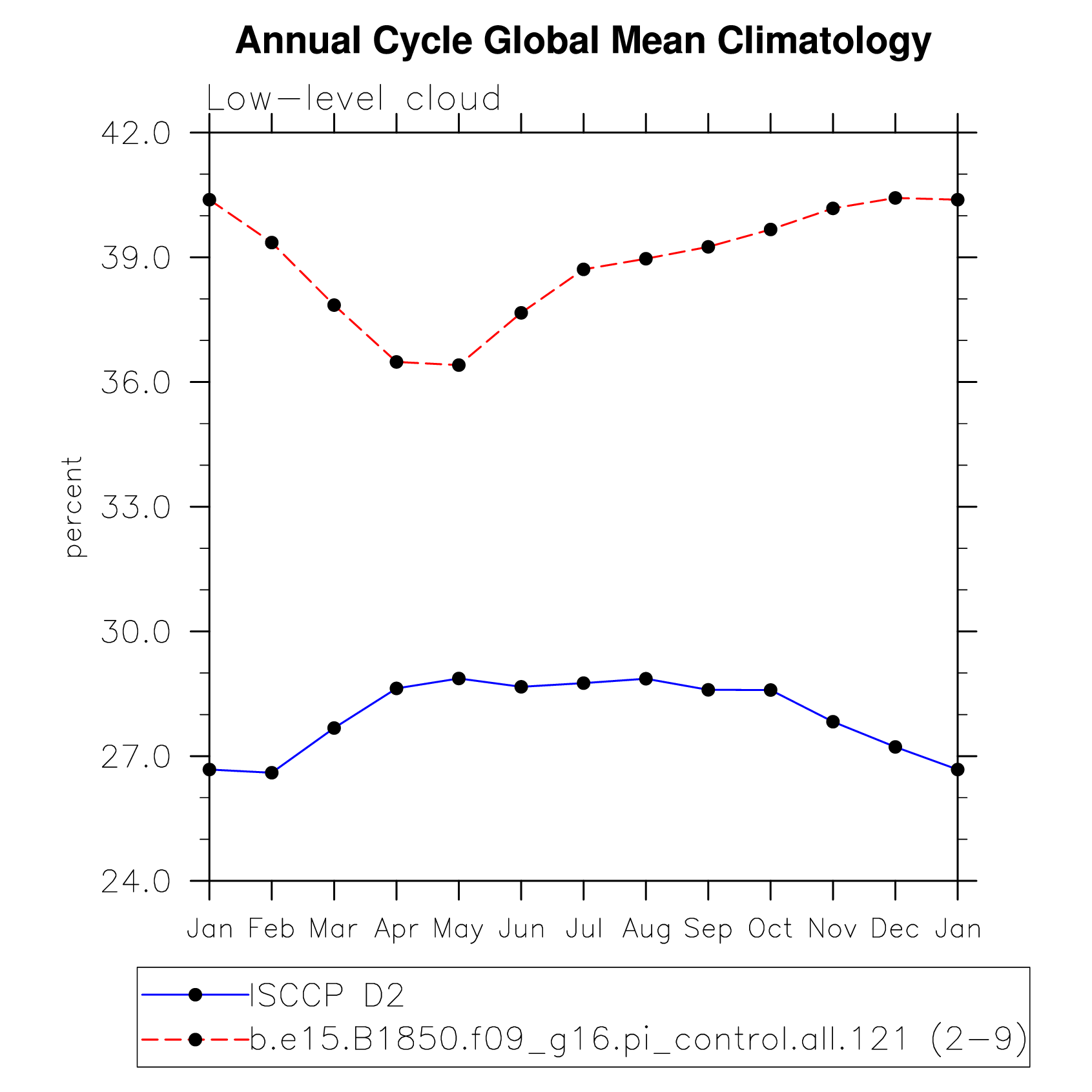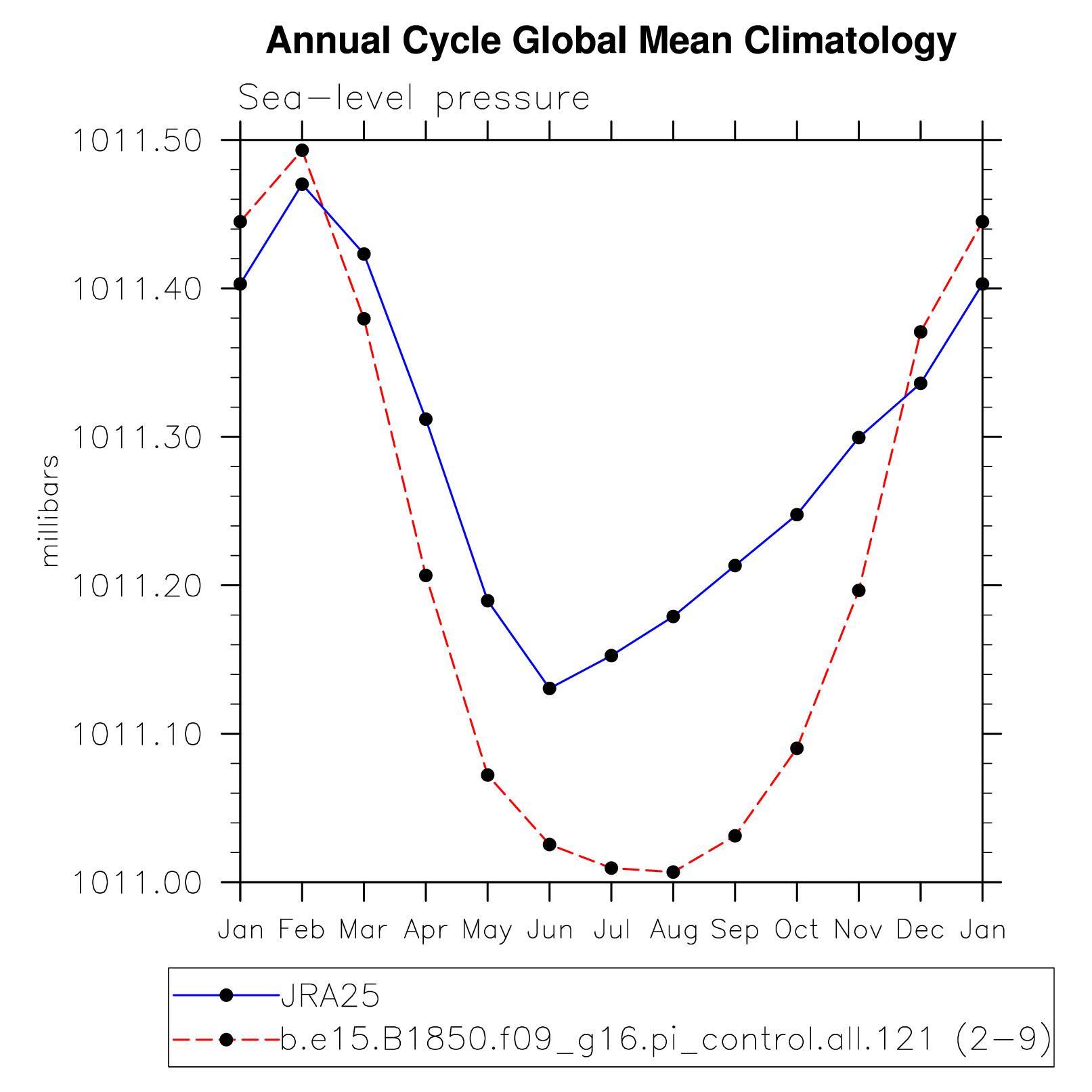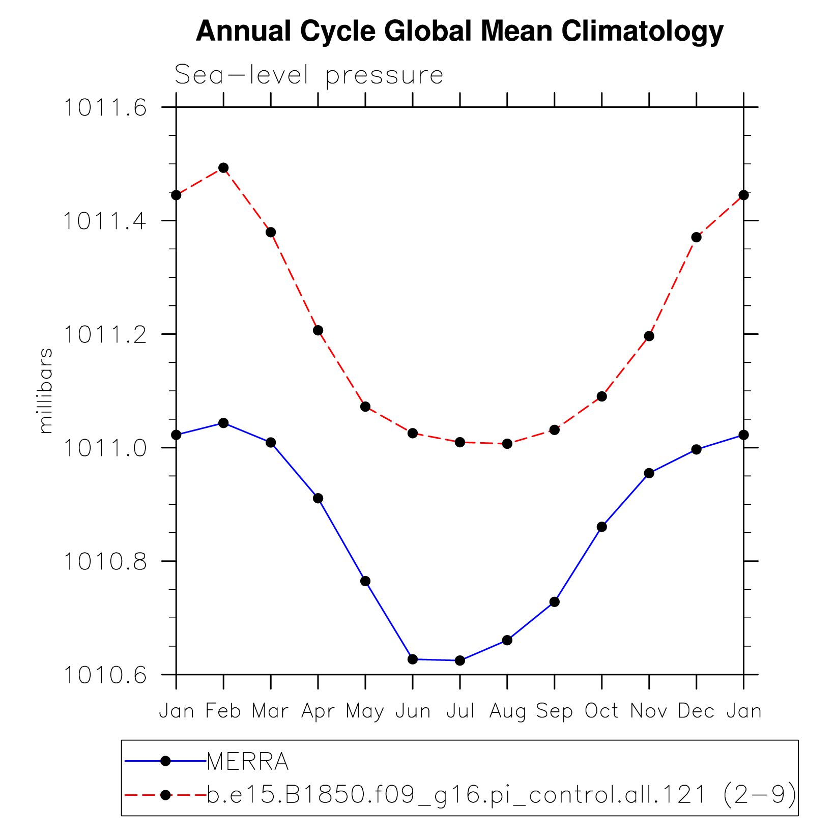 DIAG Set 10 - Annual cycle line plots of global means