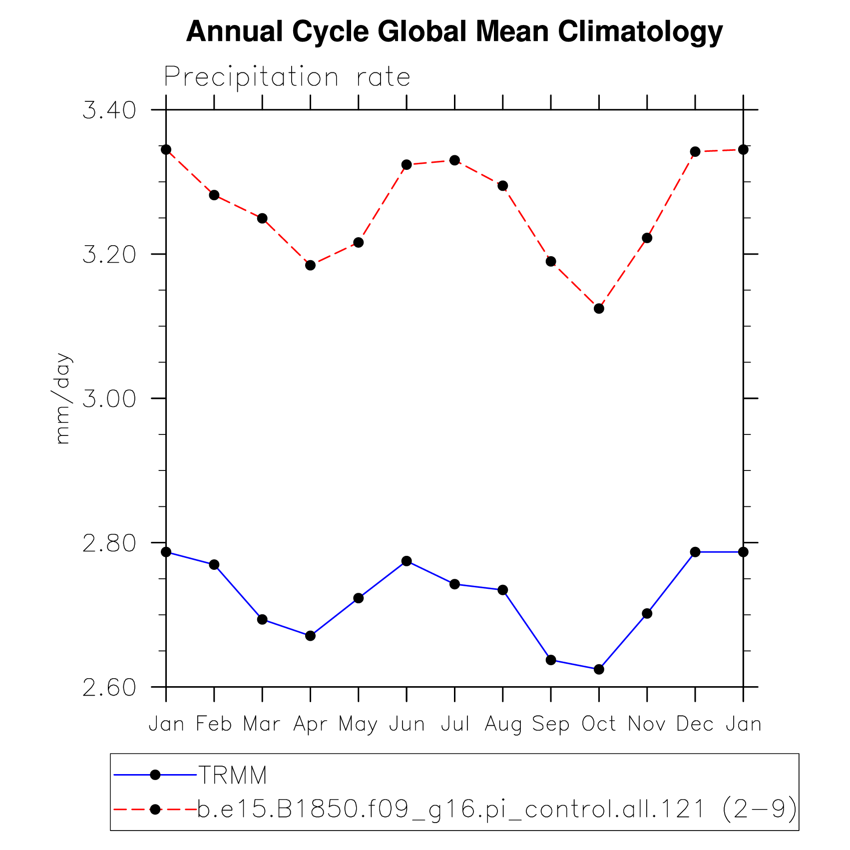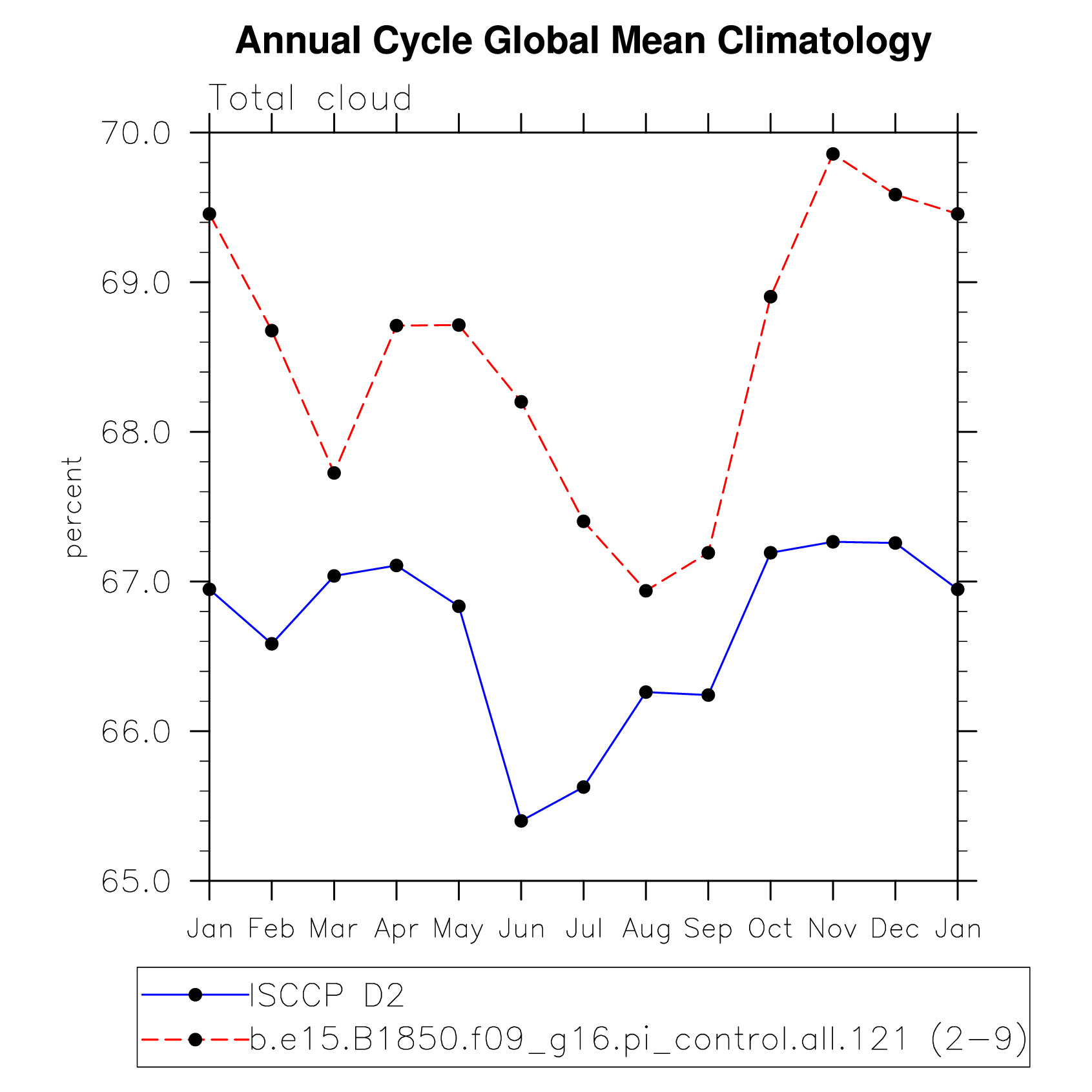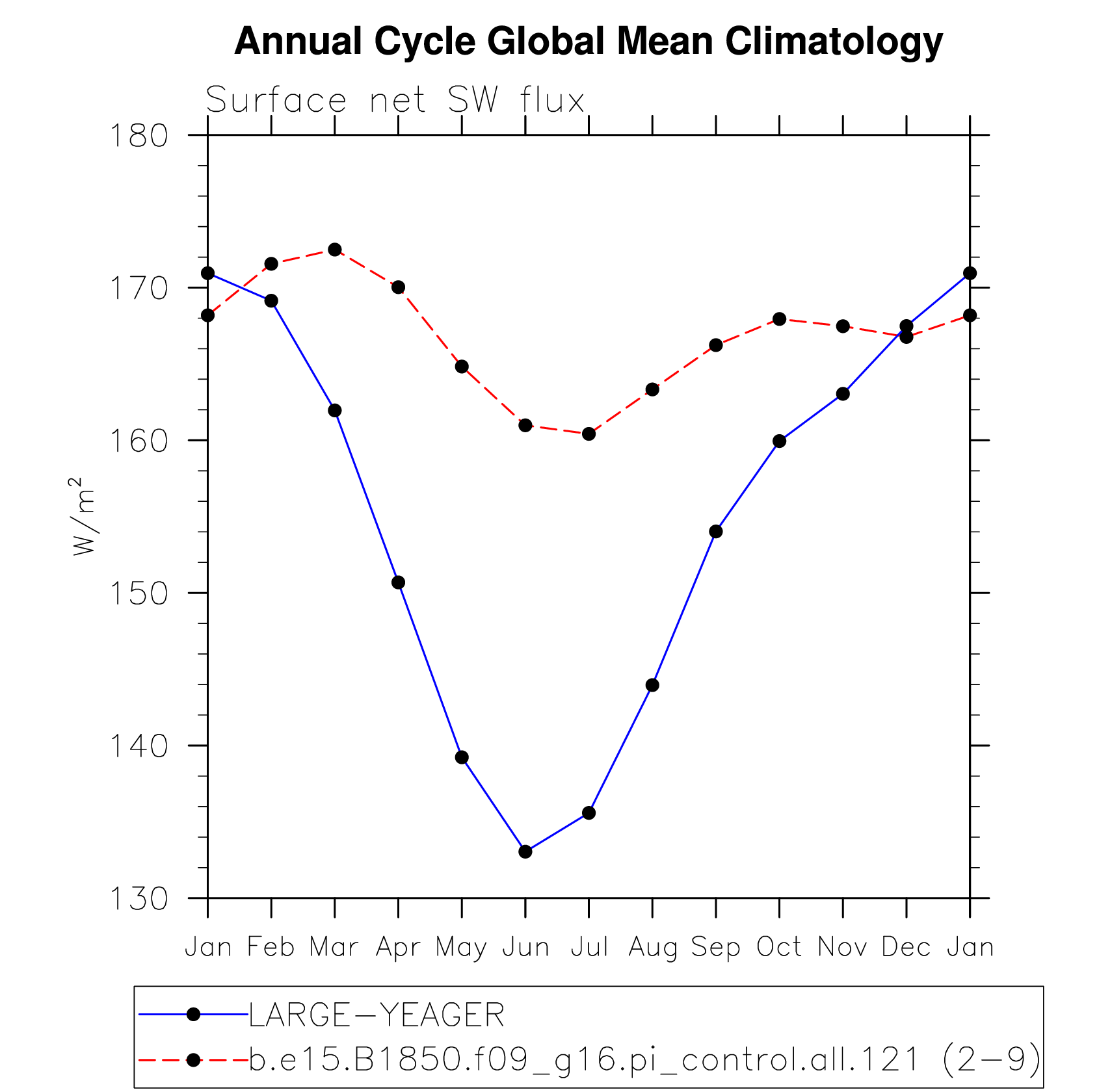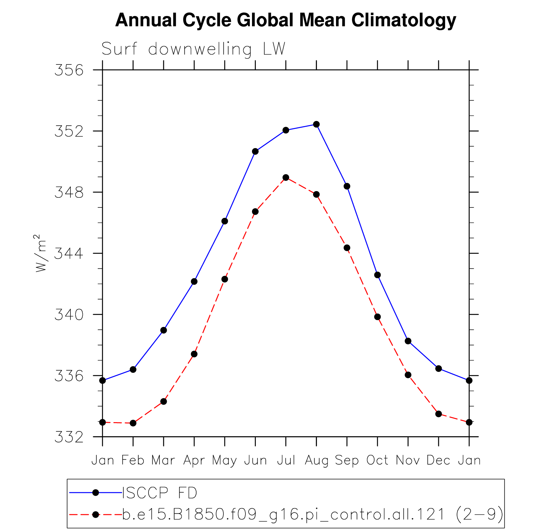 DIAG Set 10 - Annual cycle line plots of global means