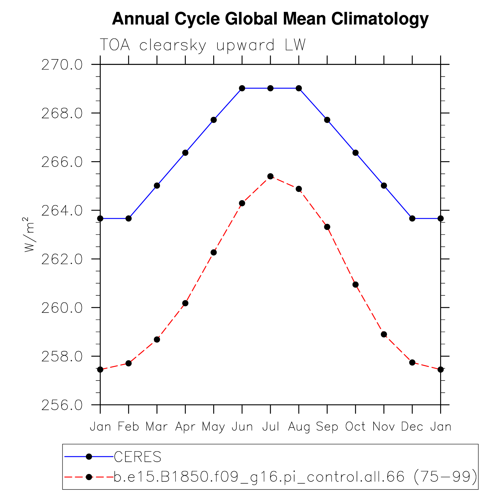 FLUTC TOA clearsky upward LW flux plot