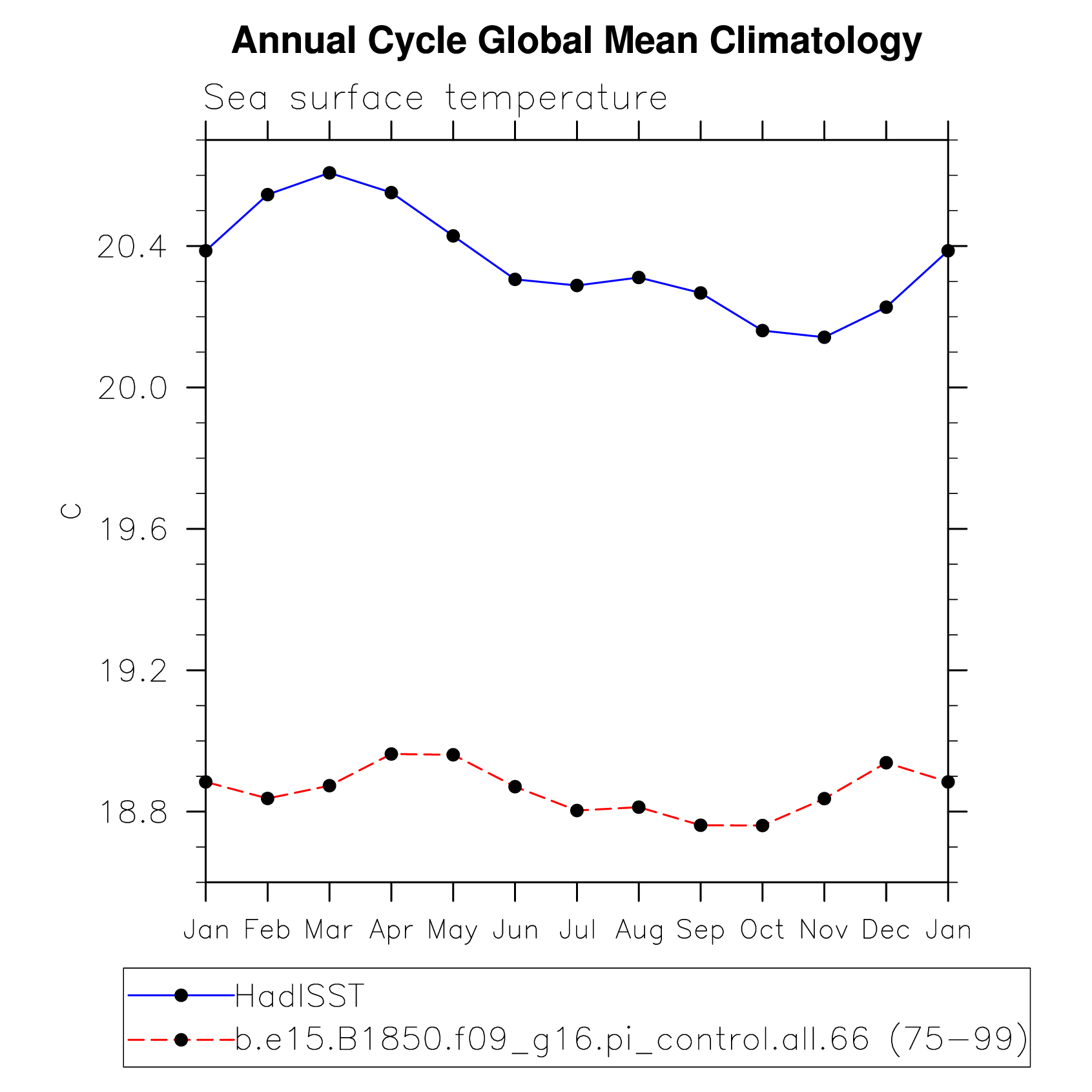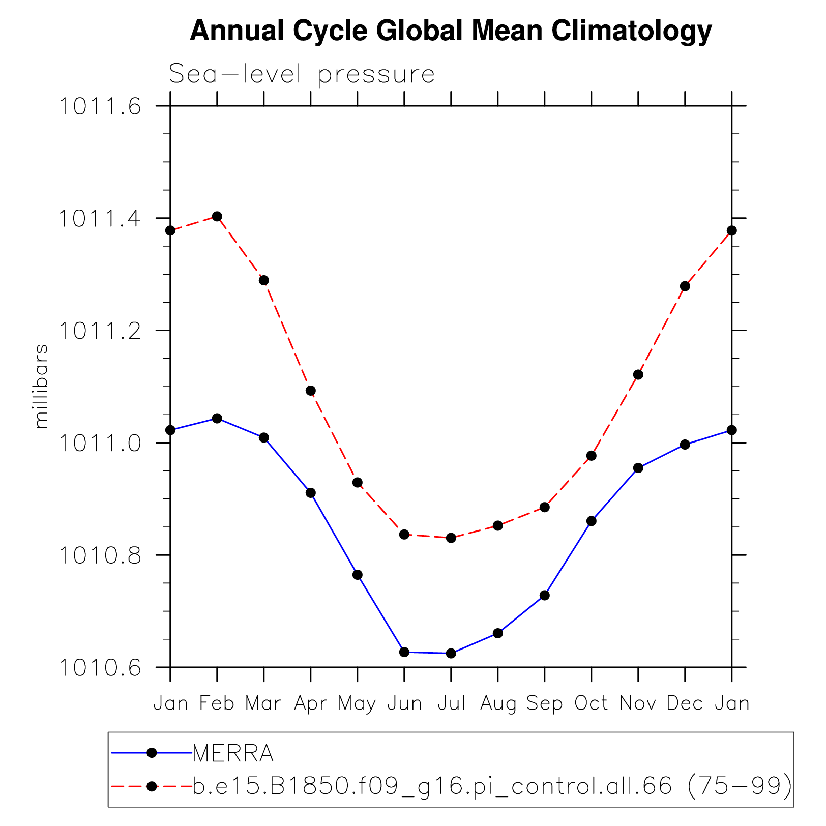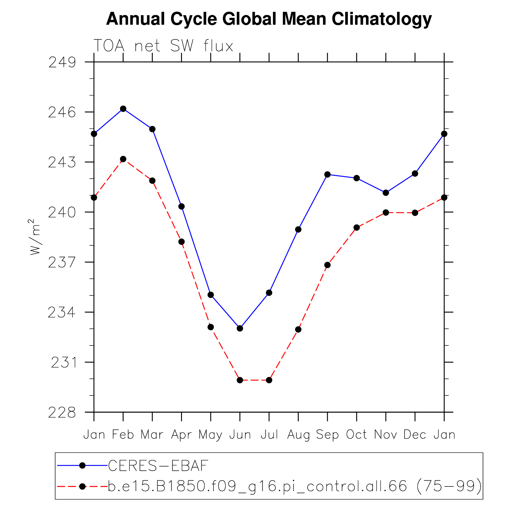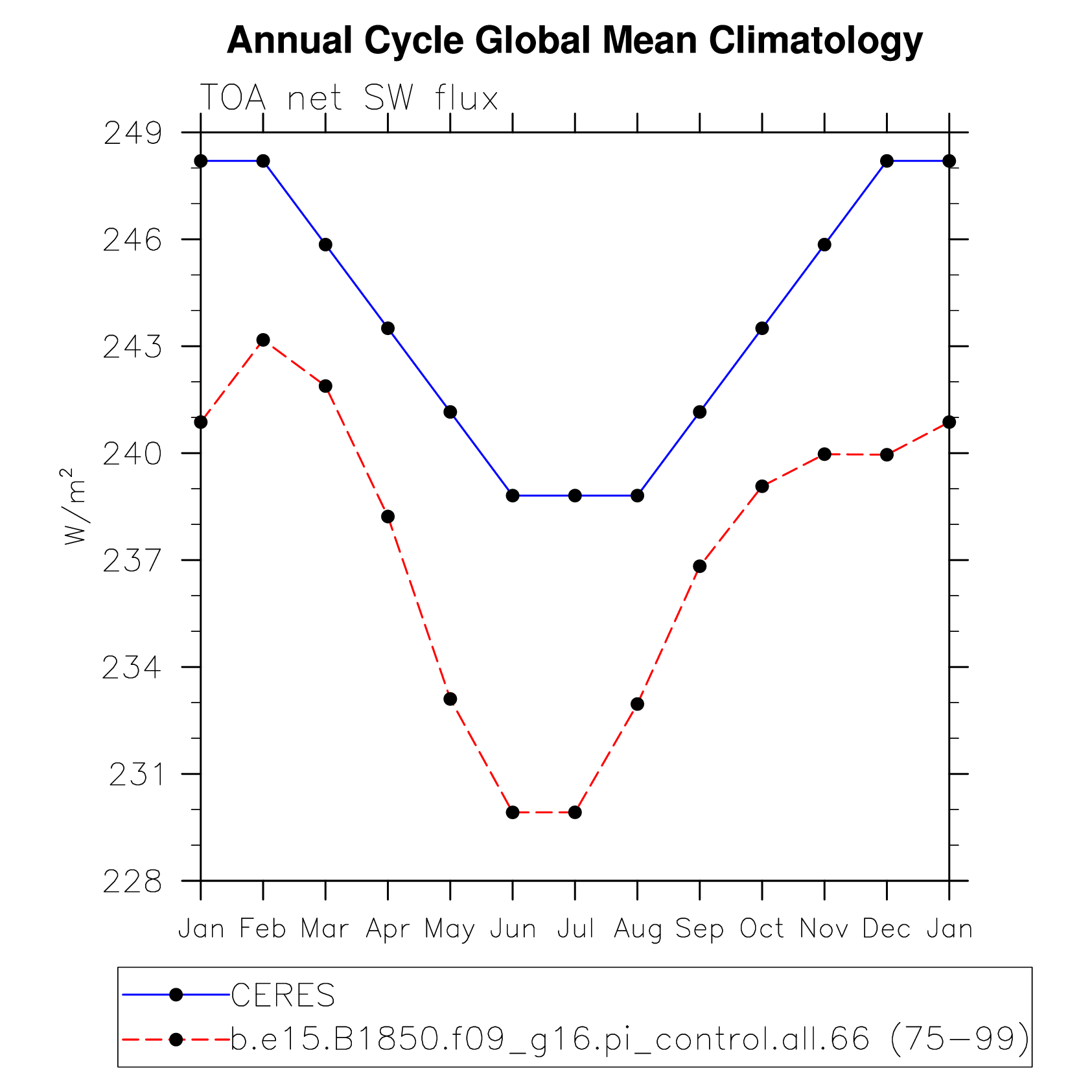 DIAG Set 10 - Annual cycle line plots of global means