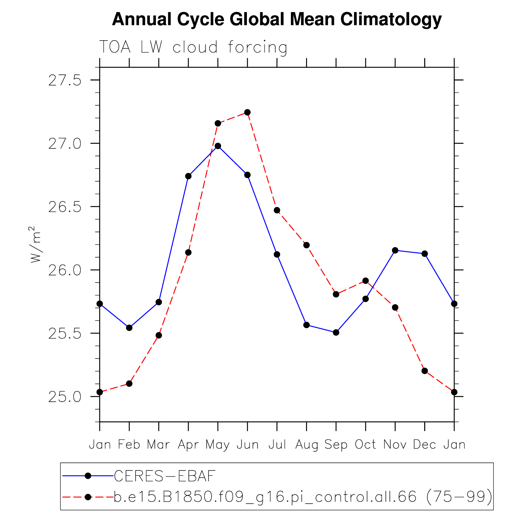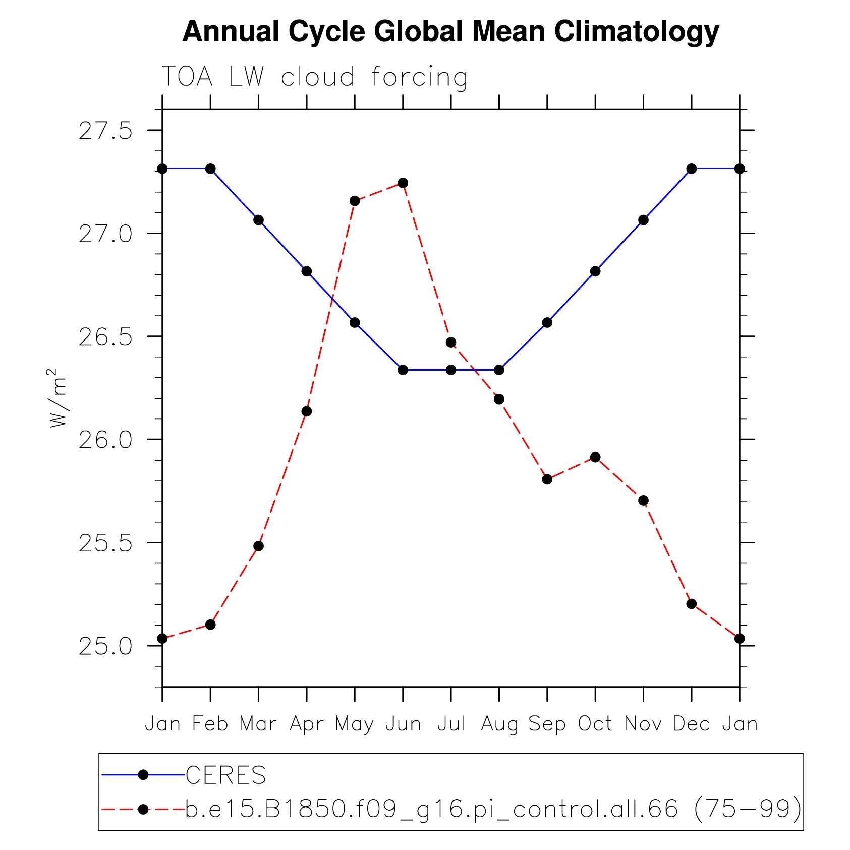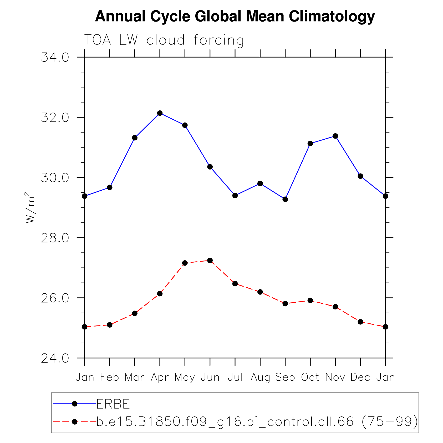 LWCF TOA longwave cloud forcing plot