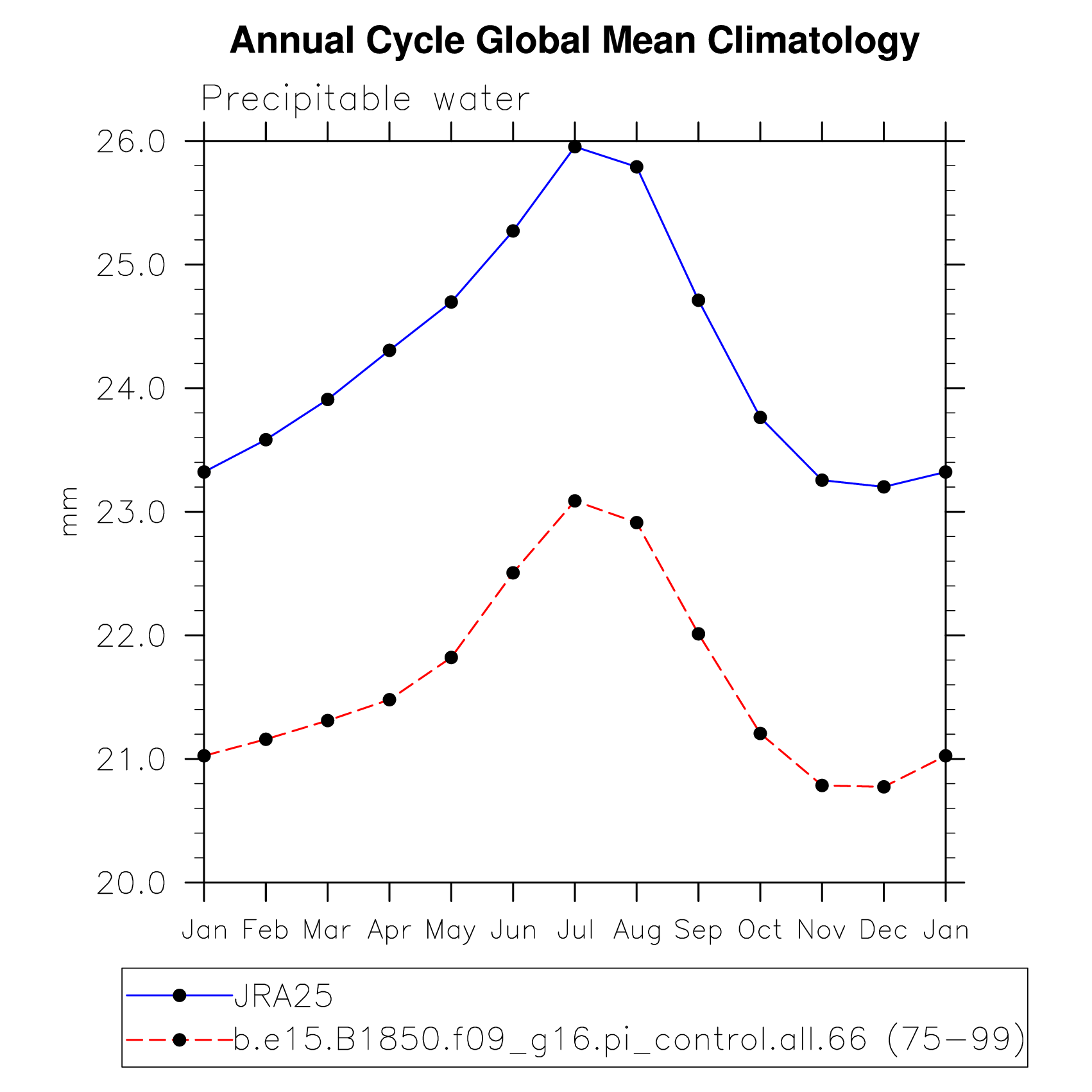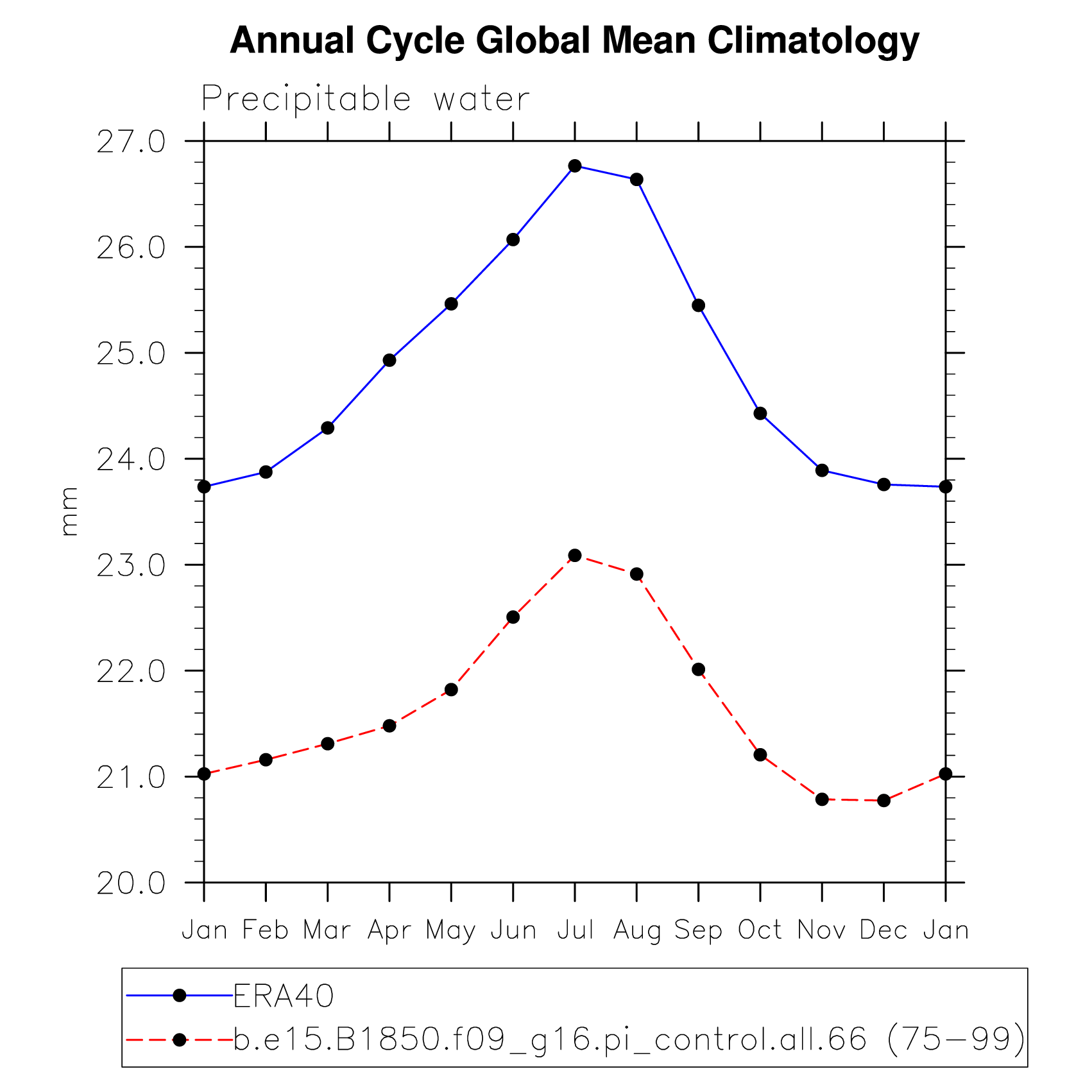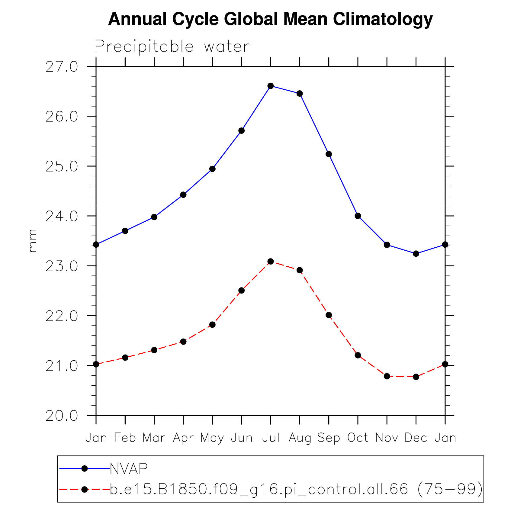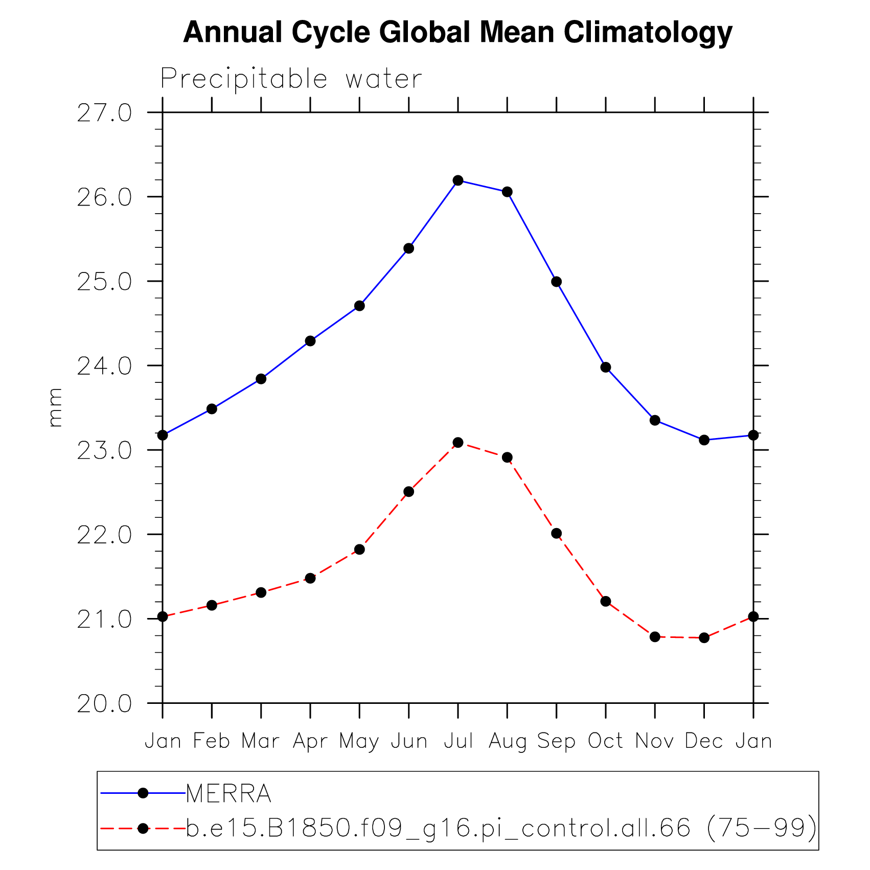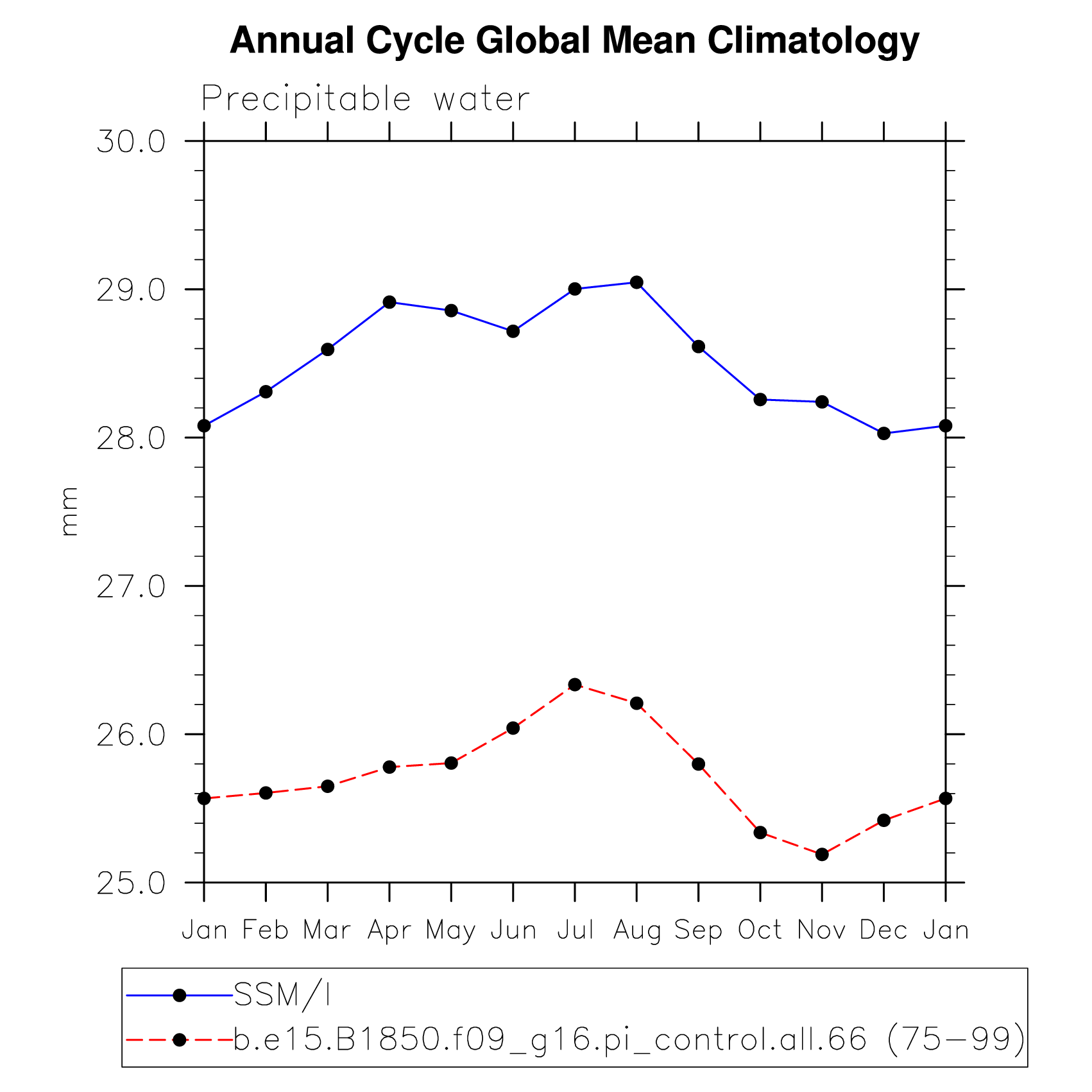 PREH2O Precipitable water (ocean) plot