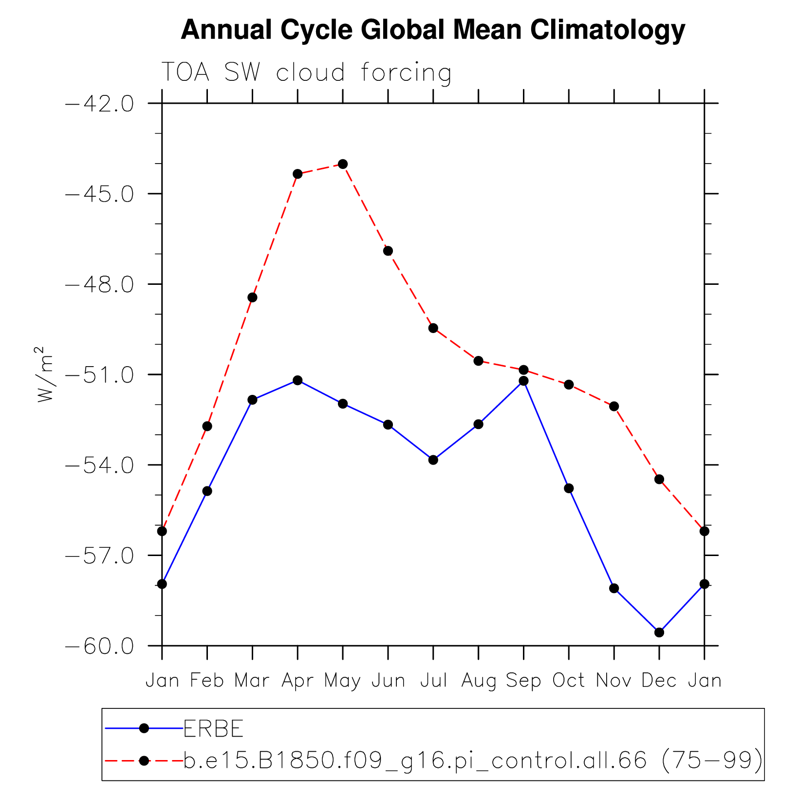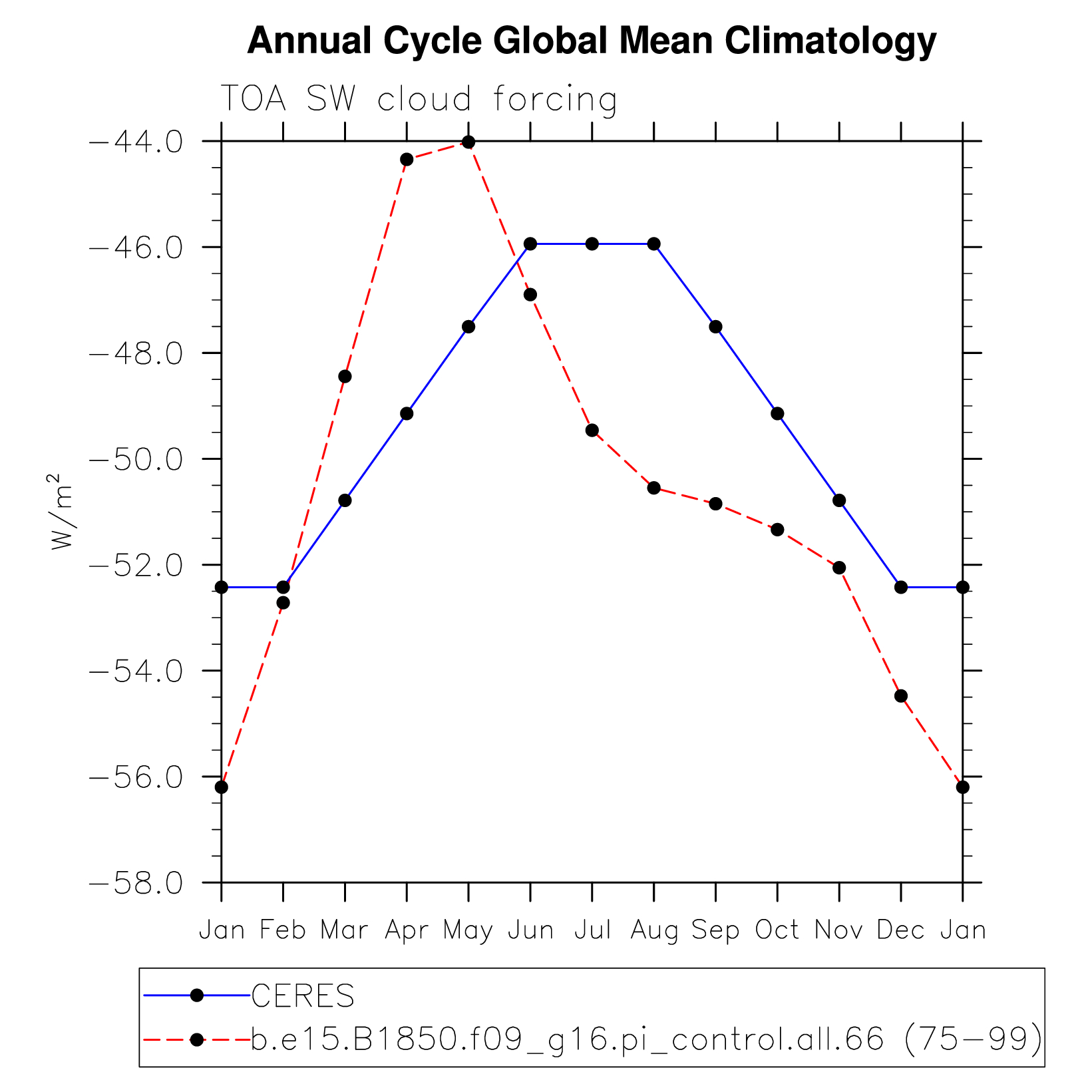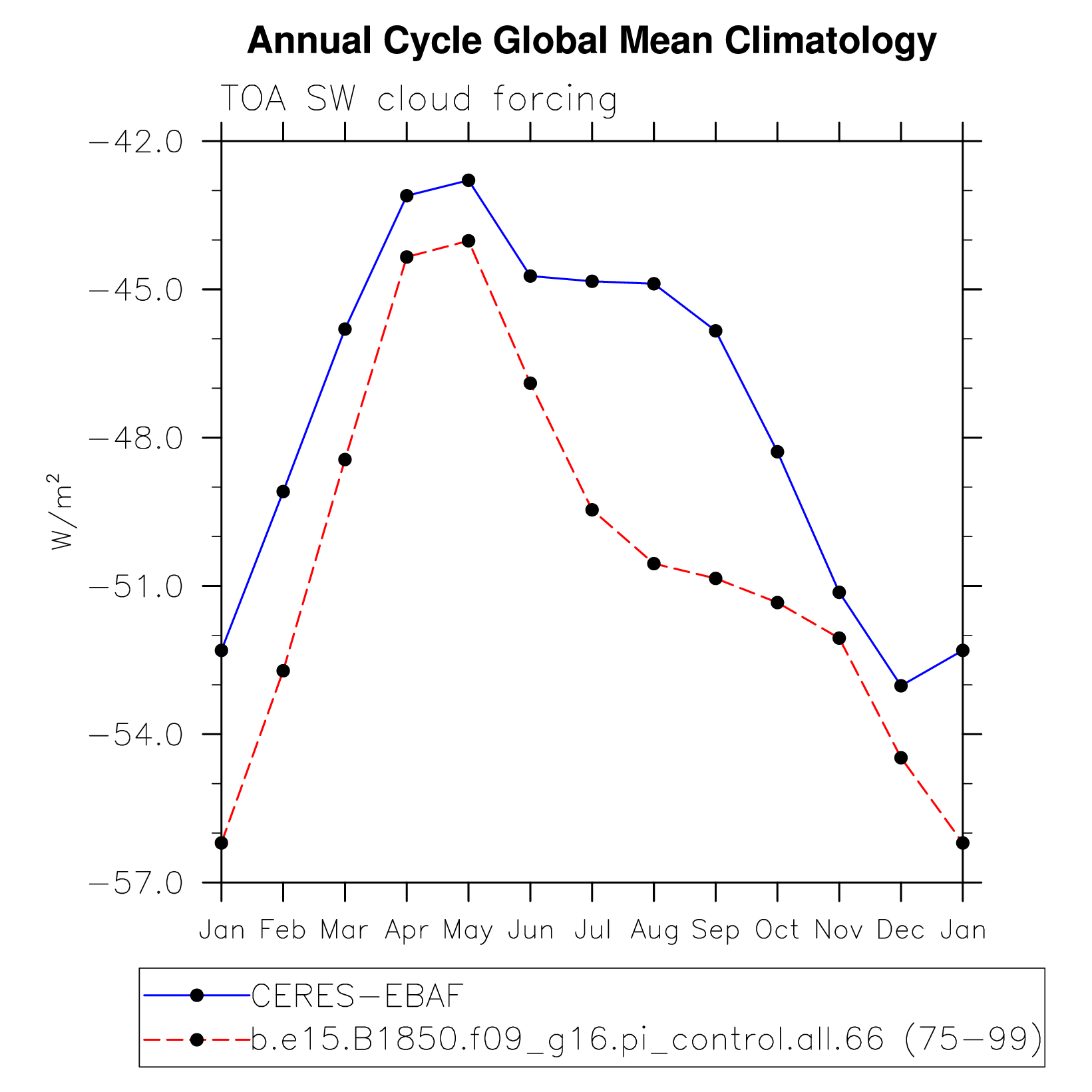 SWCF TOA shortwave cloud forcing plot