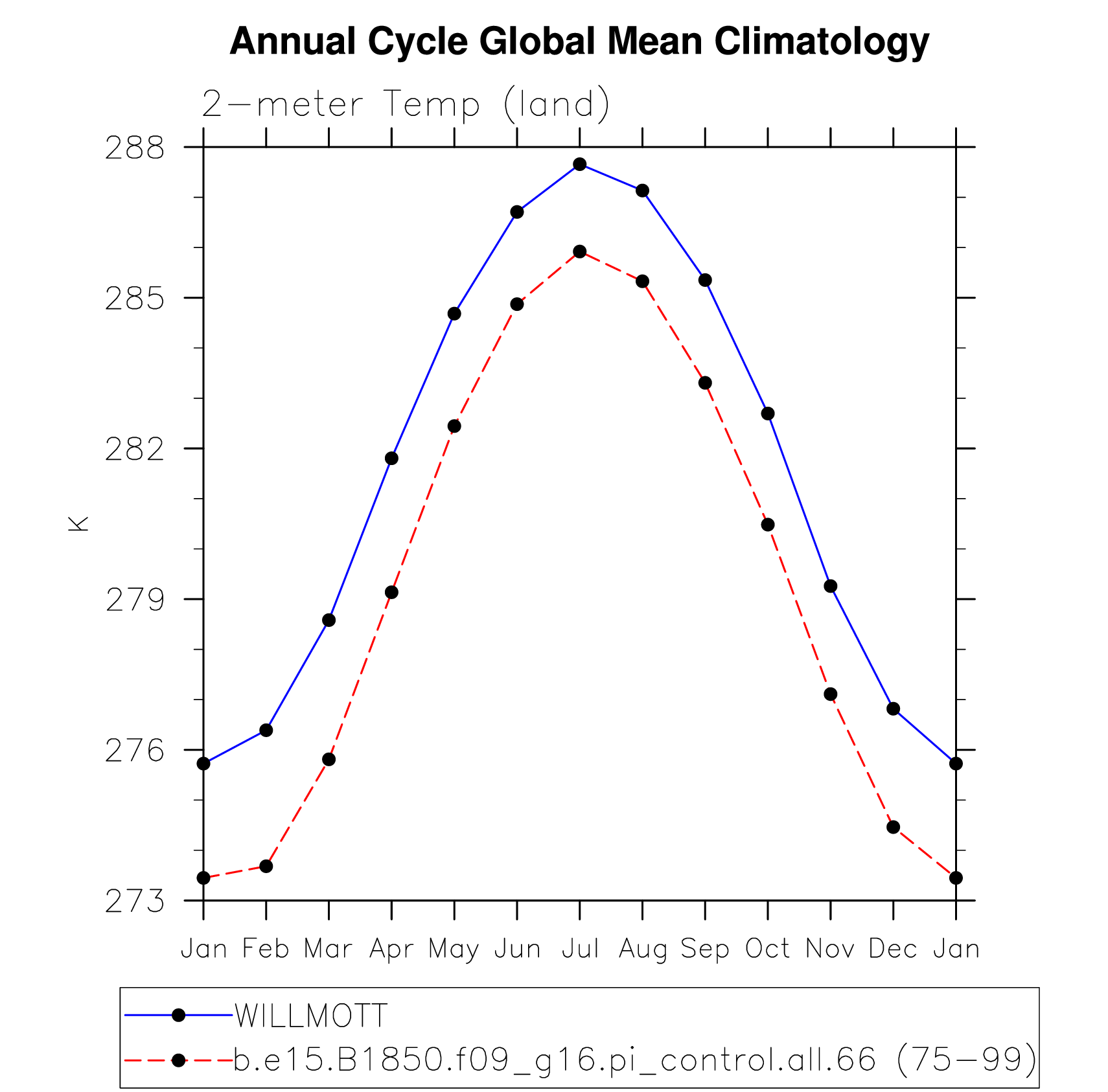 TREFHT 2-meter air temperature (land) plot