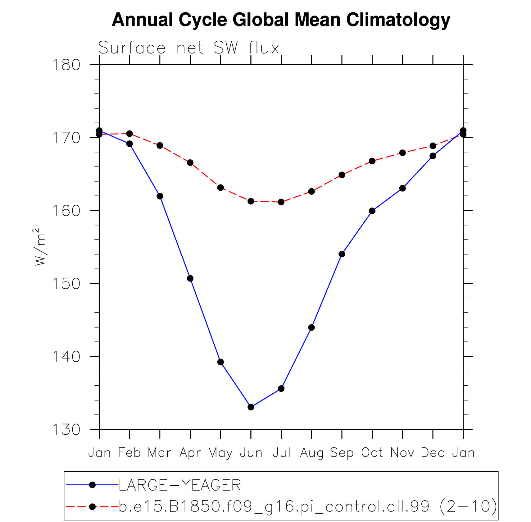 DIAG Set 10 - Annual cycle line plots of global means