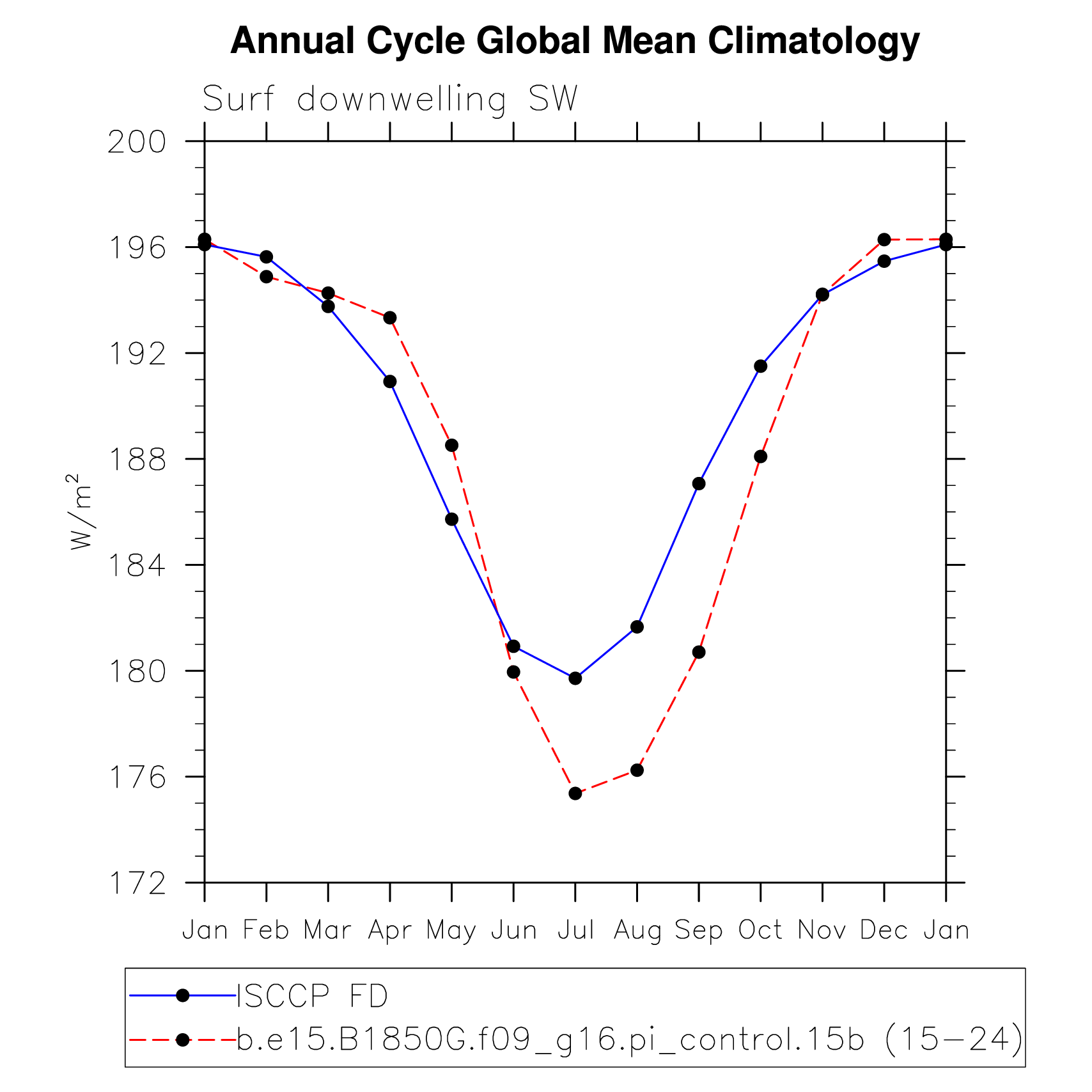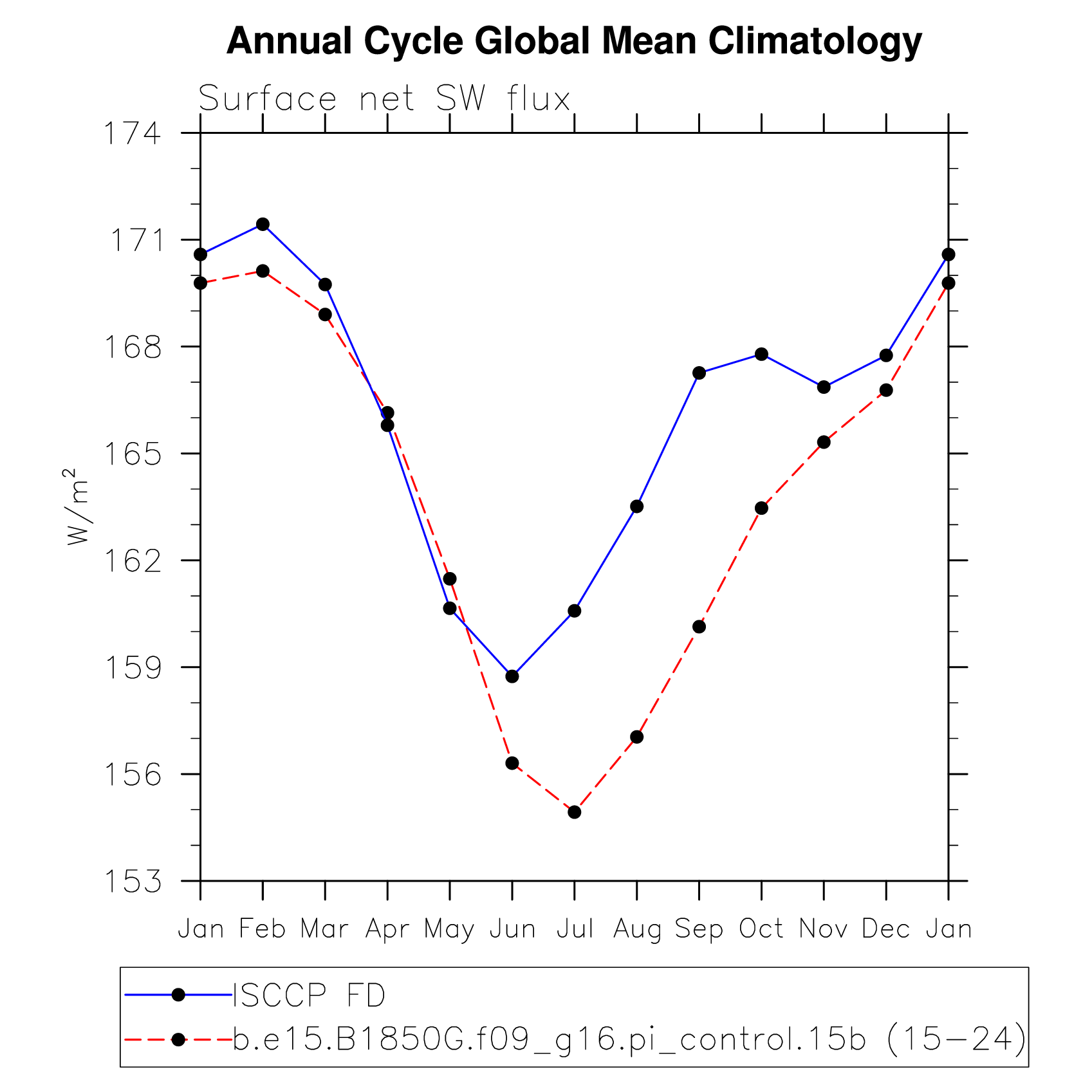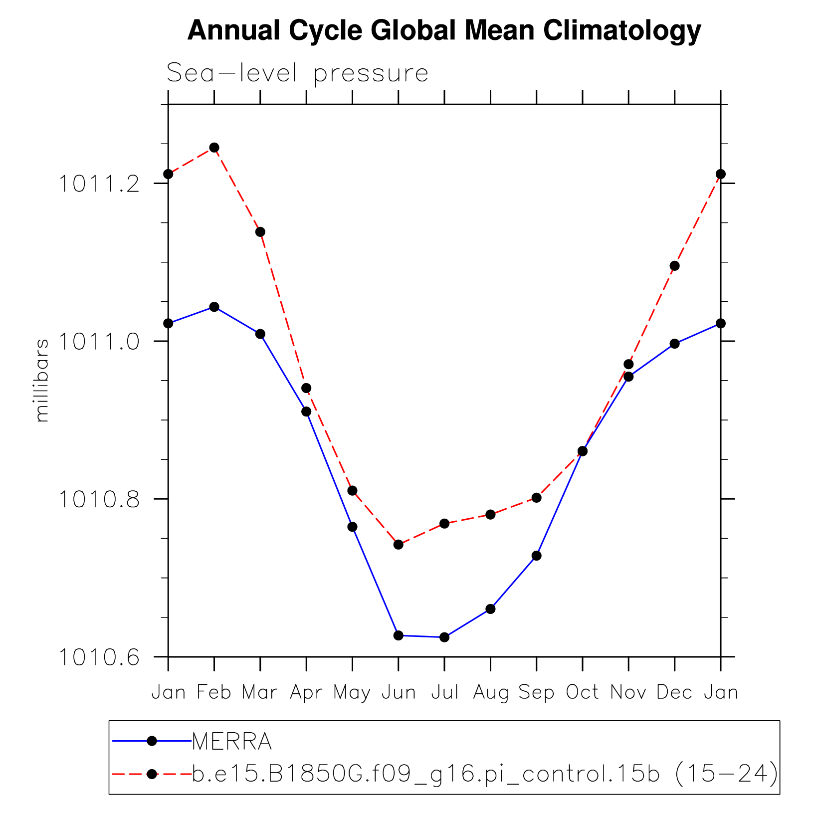 DIAG Set 10 - Annual cycle line plots of global means