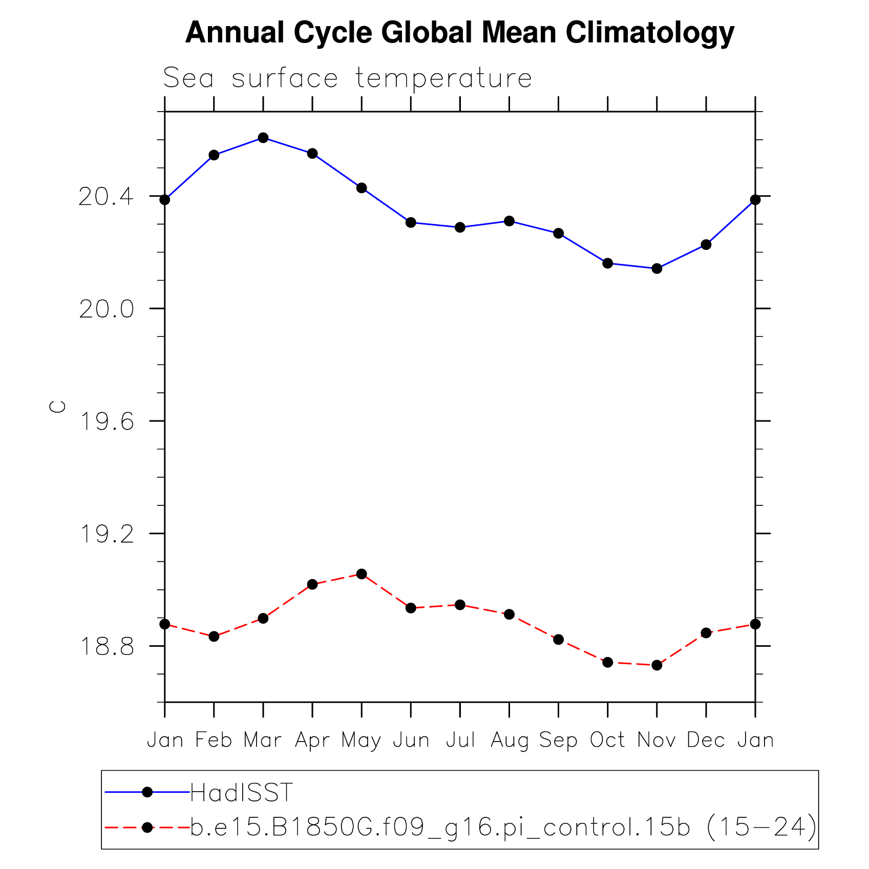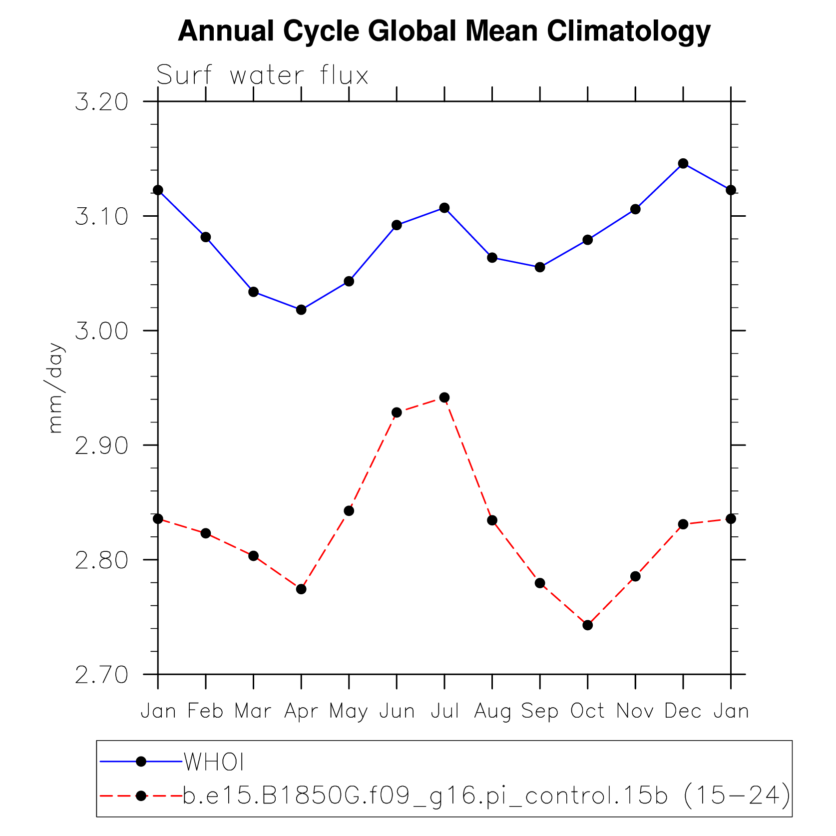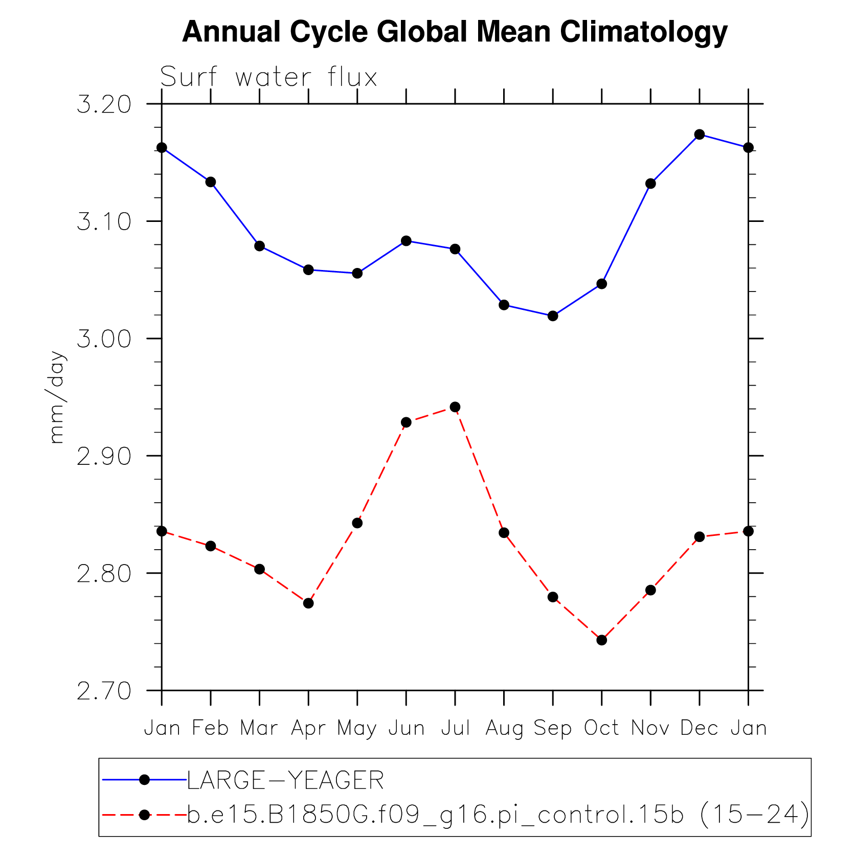 DIAG Set 10 - Annual cycle line plots of global means