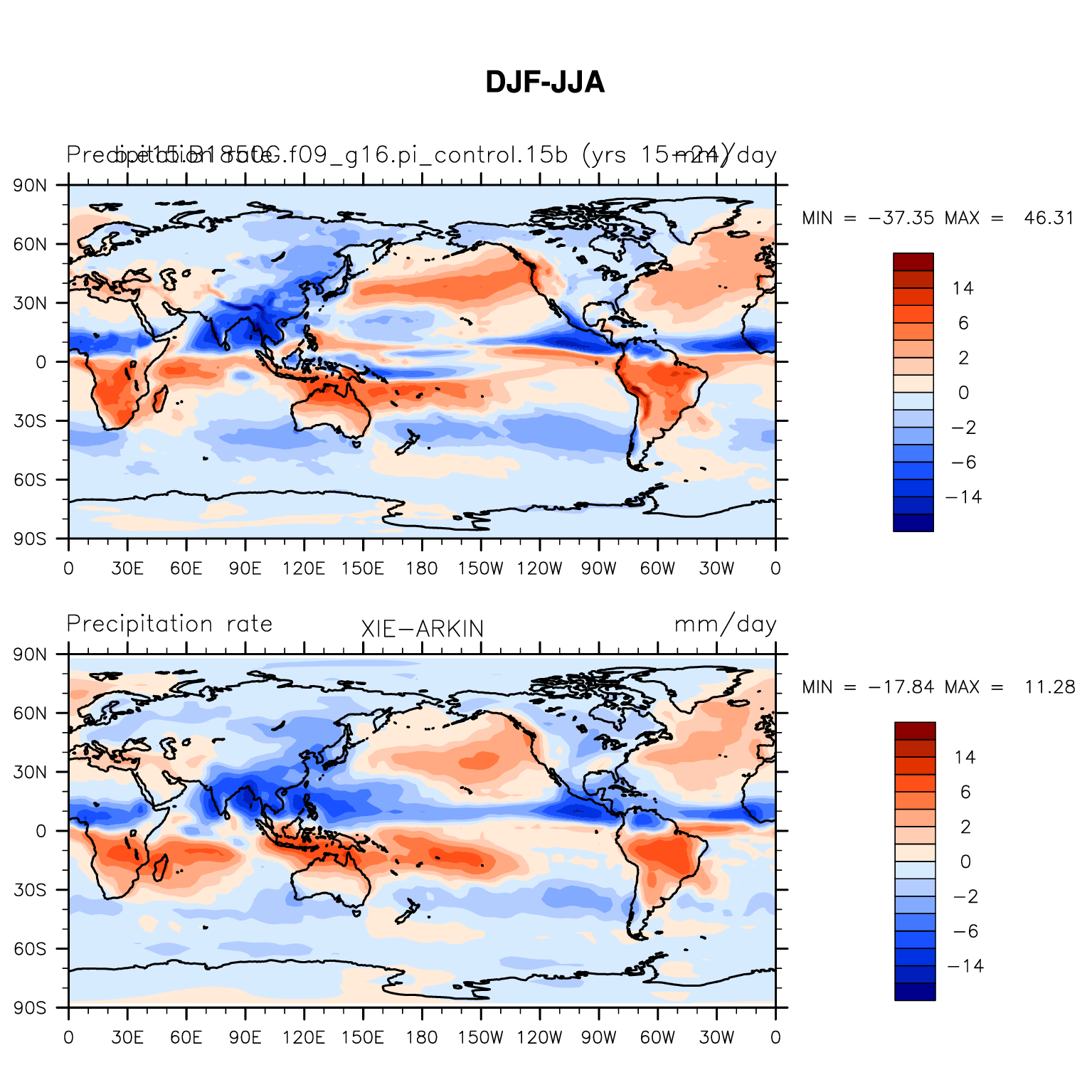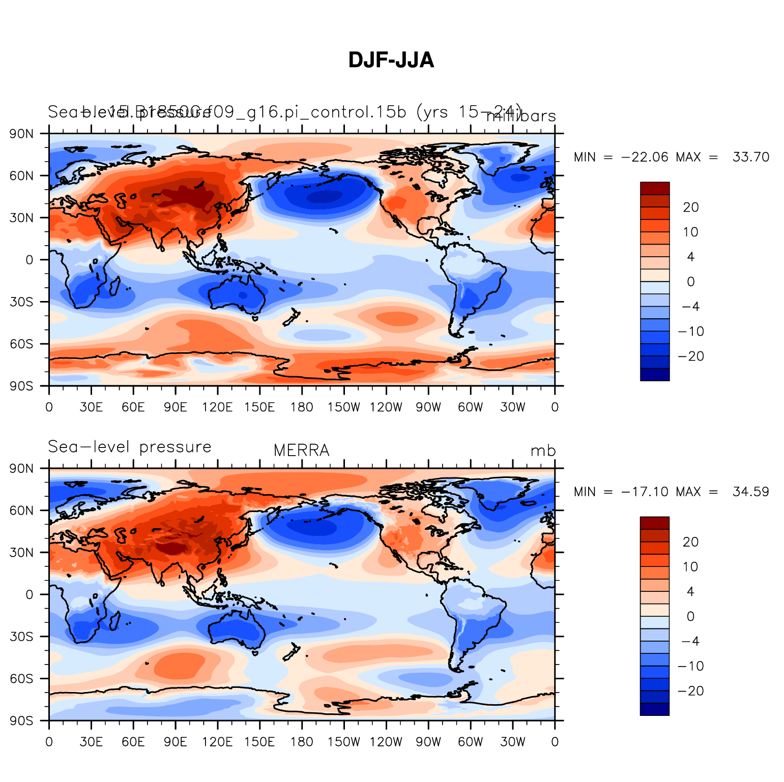 b.e15.B1850G.f09_g16.pi_control.15b DIAG Set 9 - Horizontal contour plots of DJF-JJA differences