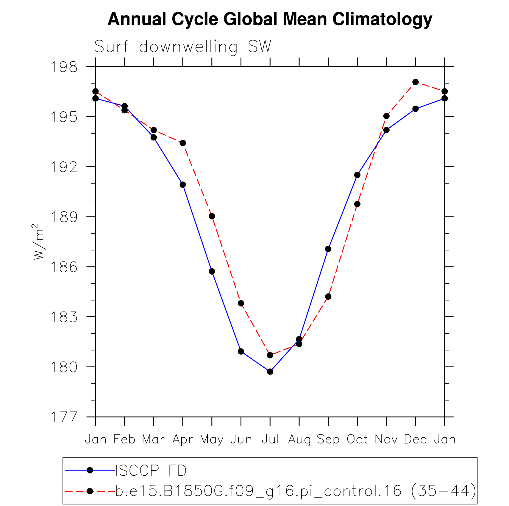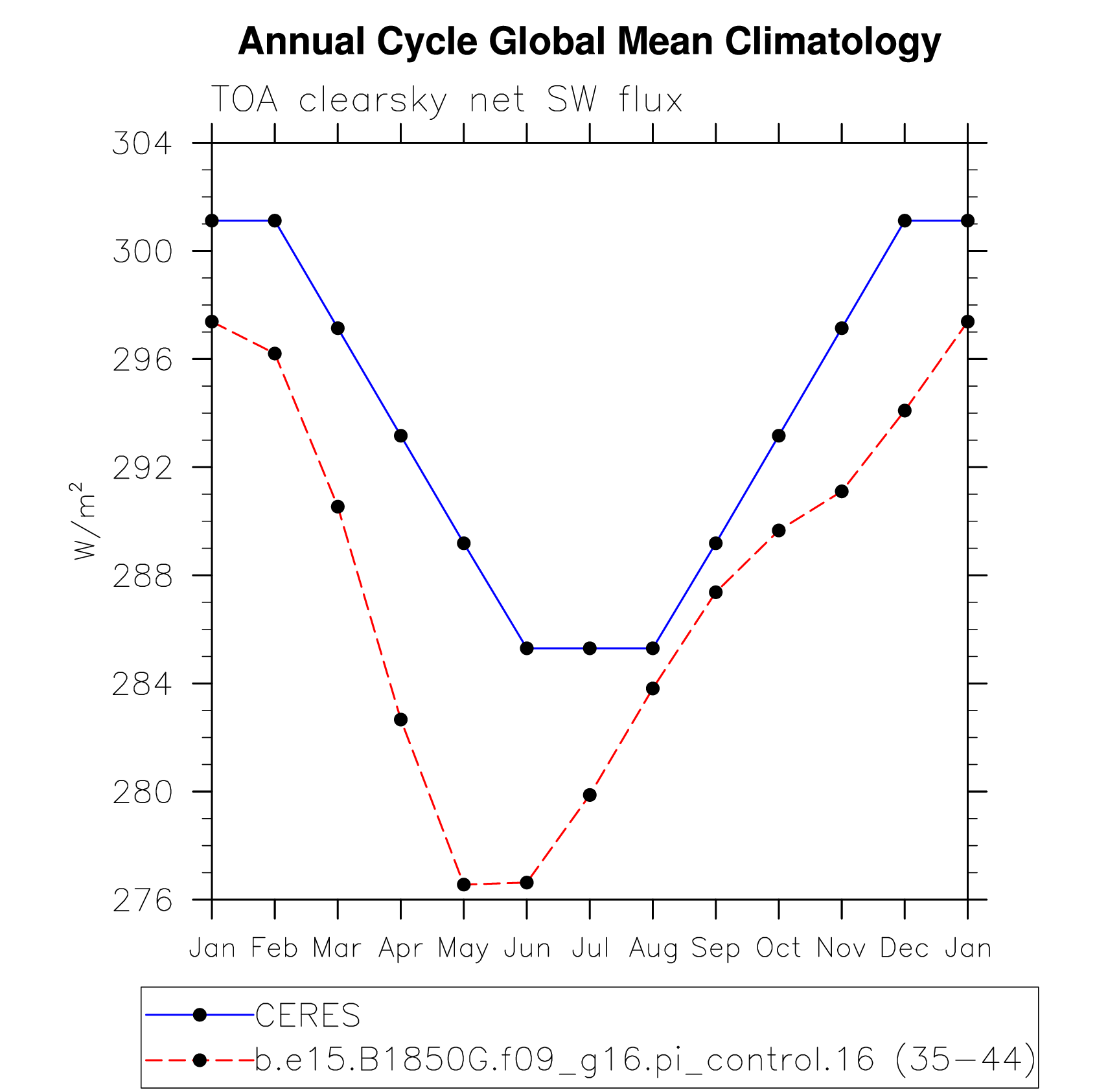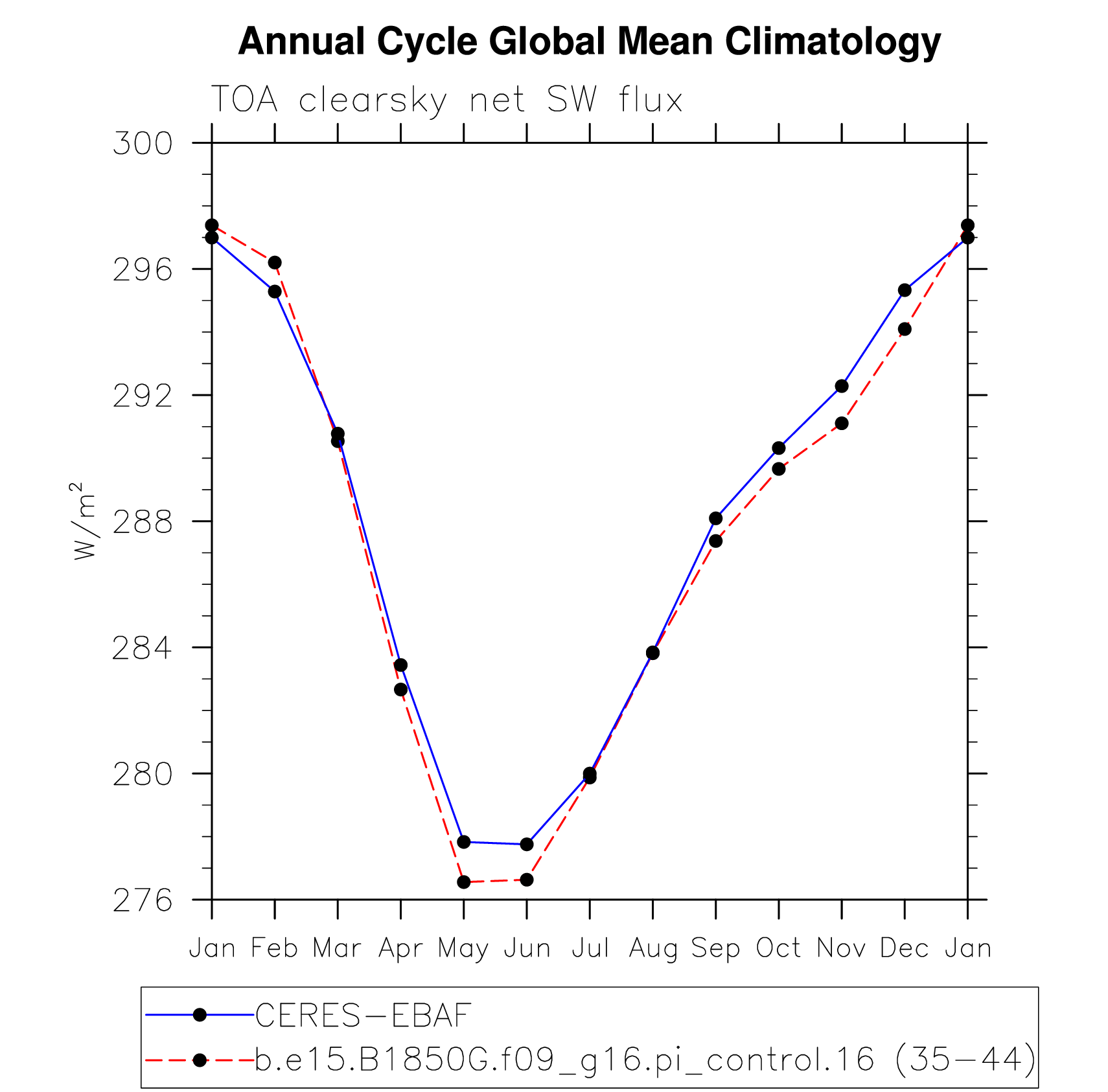 DIAG Set 10 - Annual cycle line plots of global means
