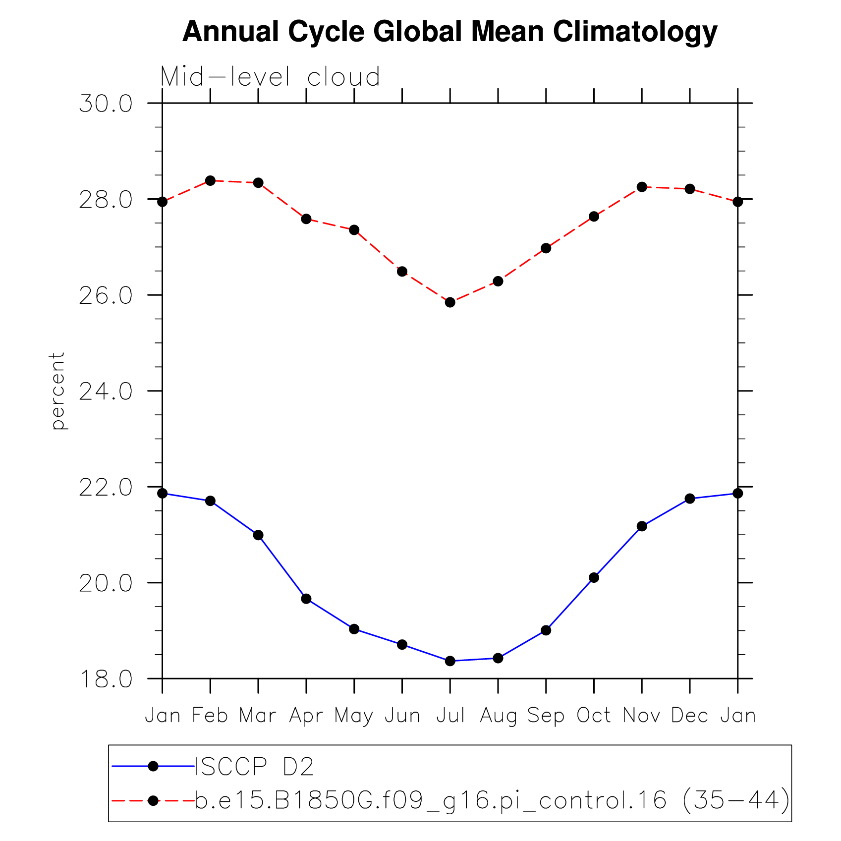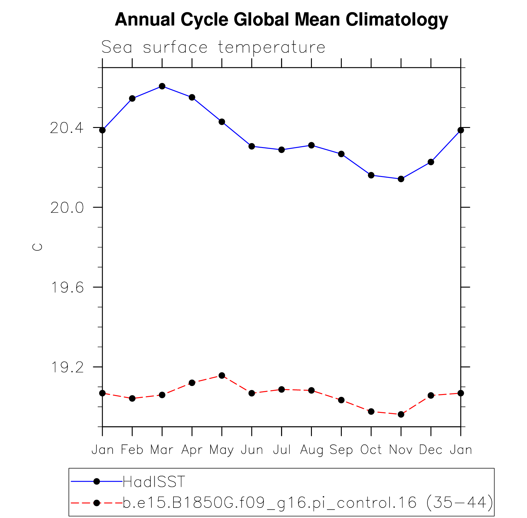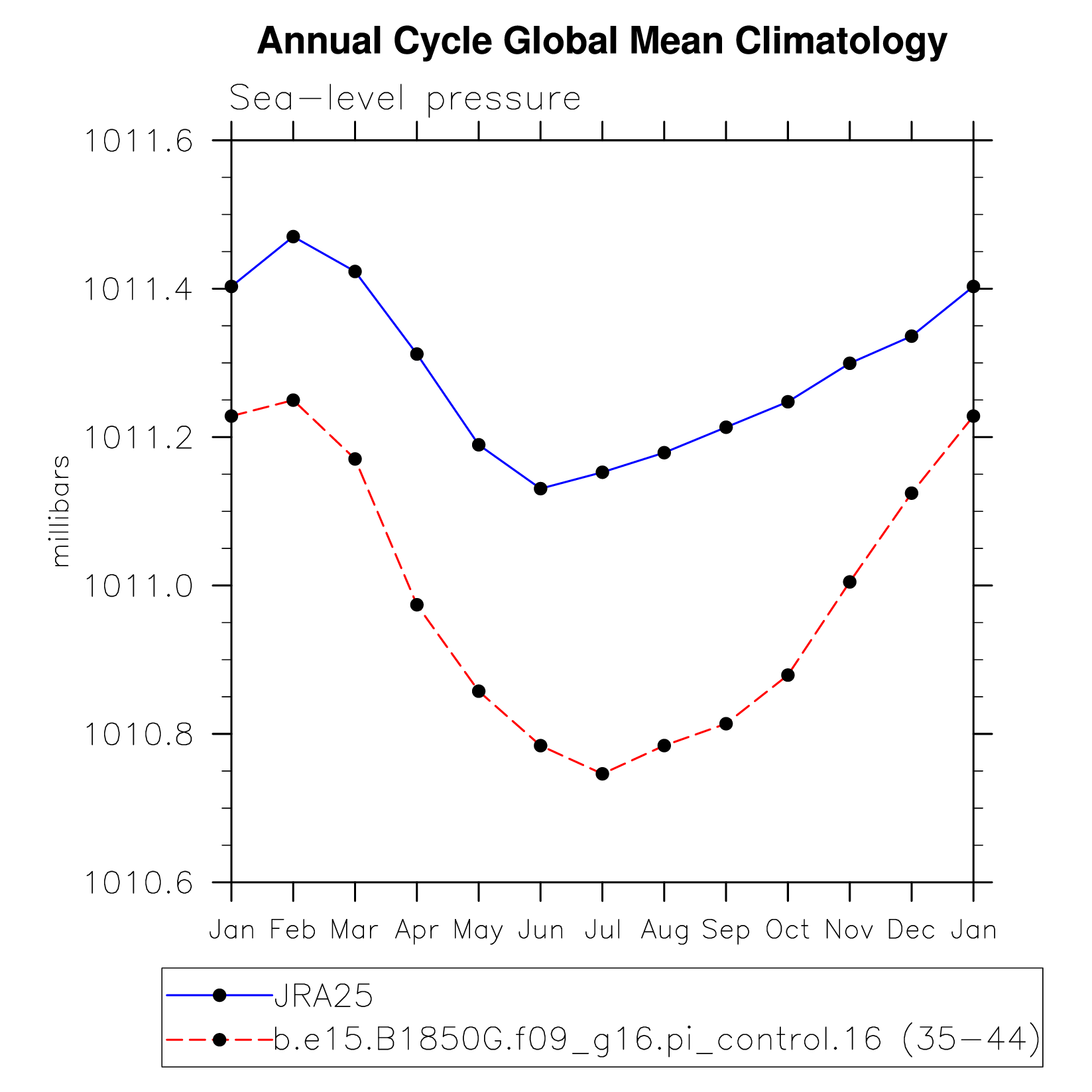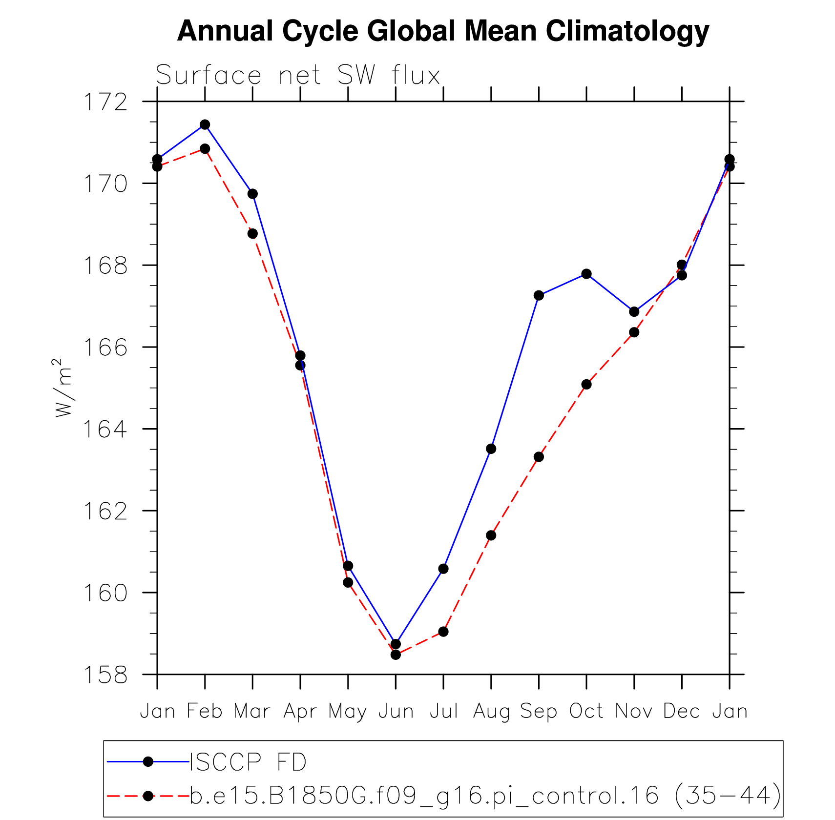 DIAG Set 10 - Annual cycle line plots of global means