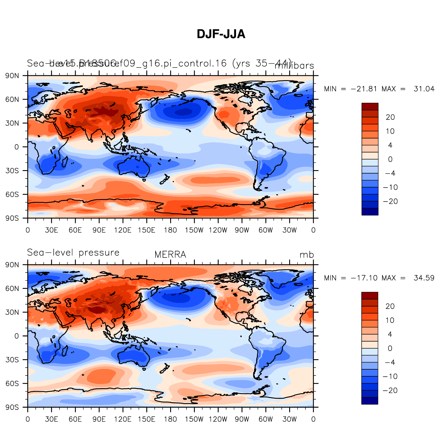 b.e15.B1850G.f09_g16.pi_control.16 DIAG Set 9 - Horizontal contour plots of DJF-JJA differences