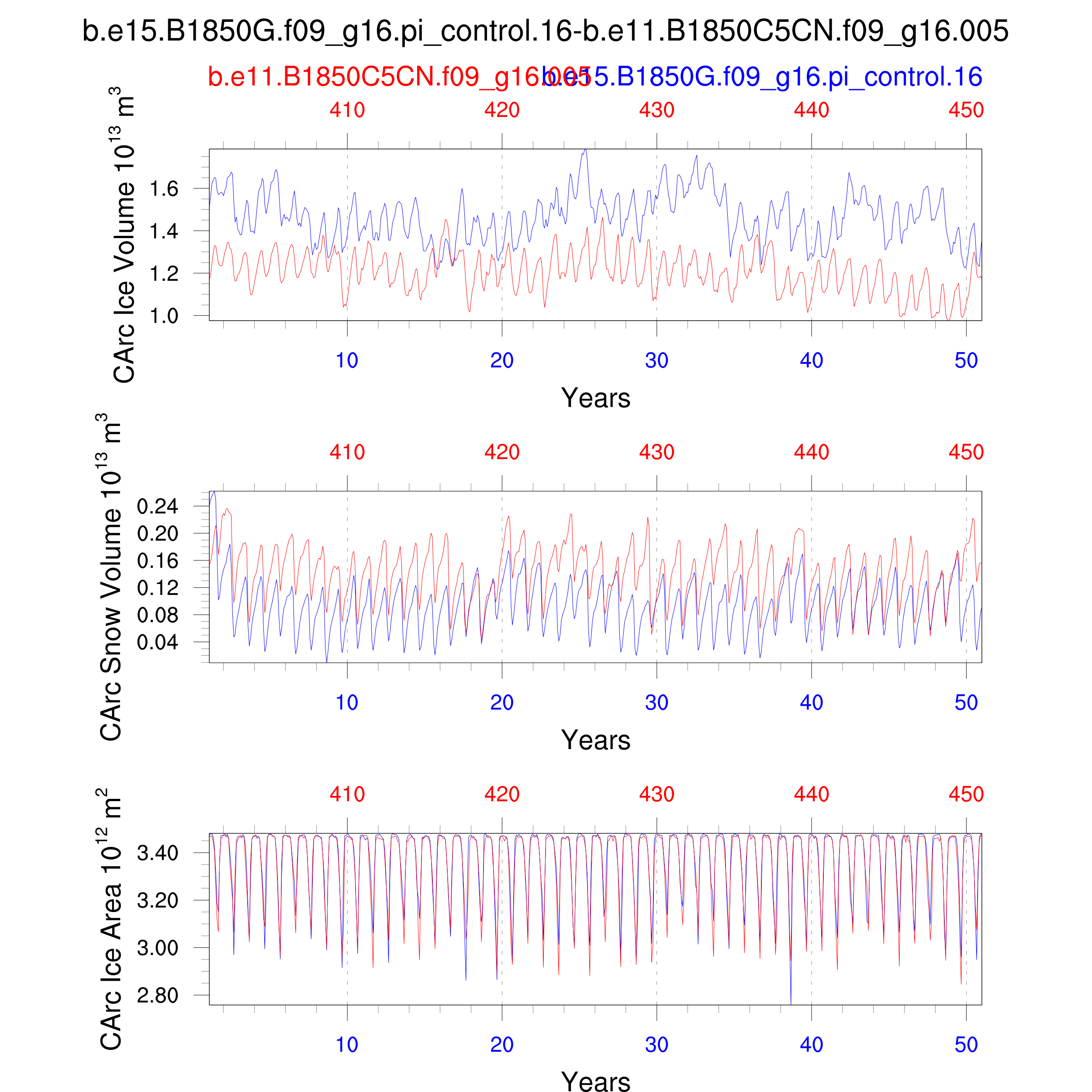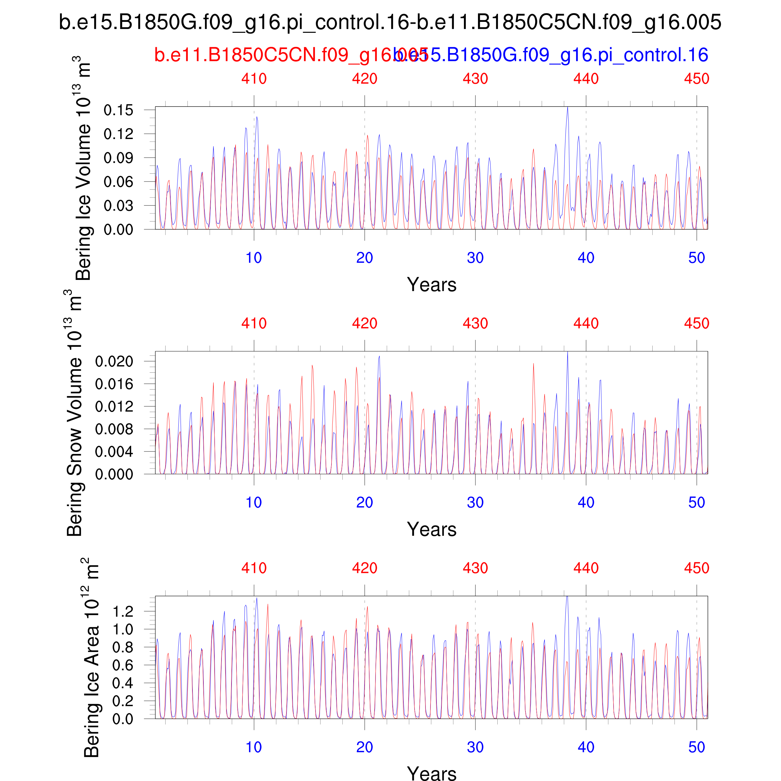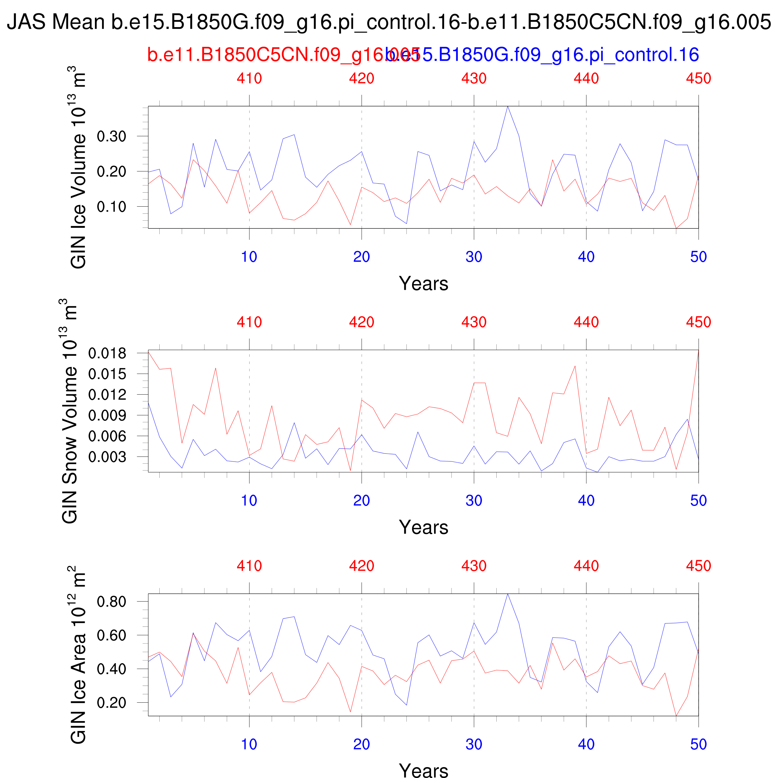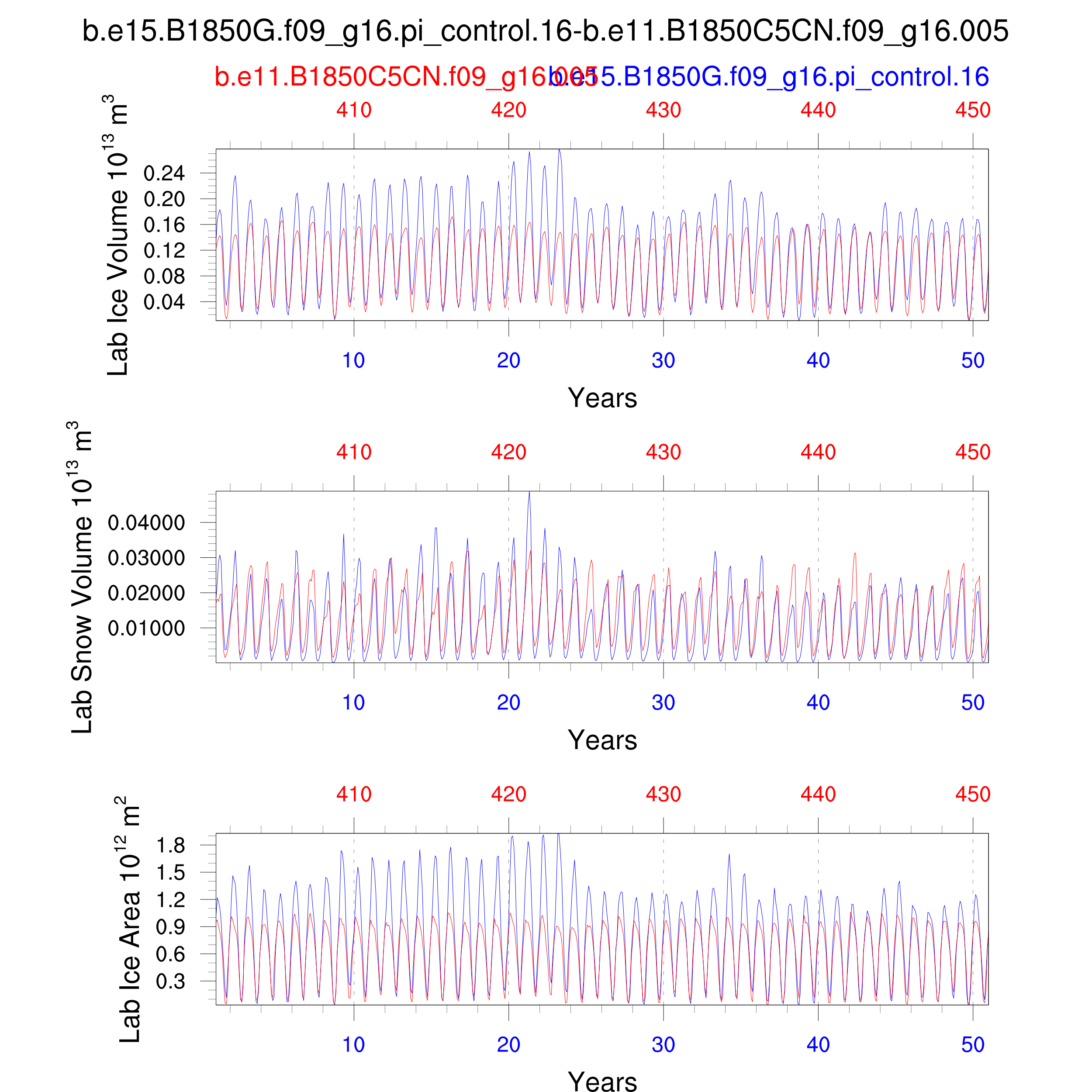 Comparison of runs b.e15.B1850G.f09_g16.pi_control.16-b.e11.B1850C5CN.f09_g16.005: