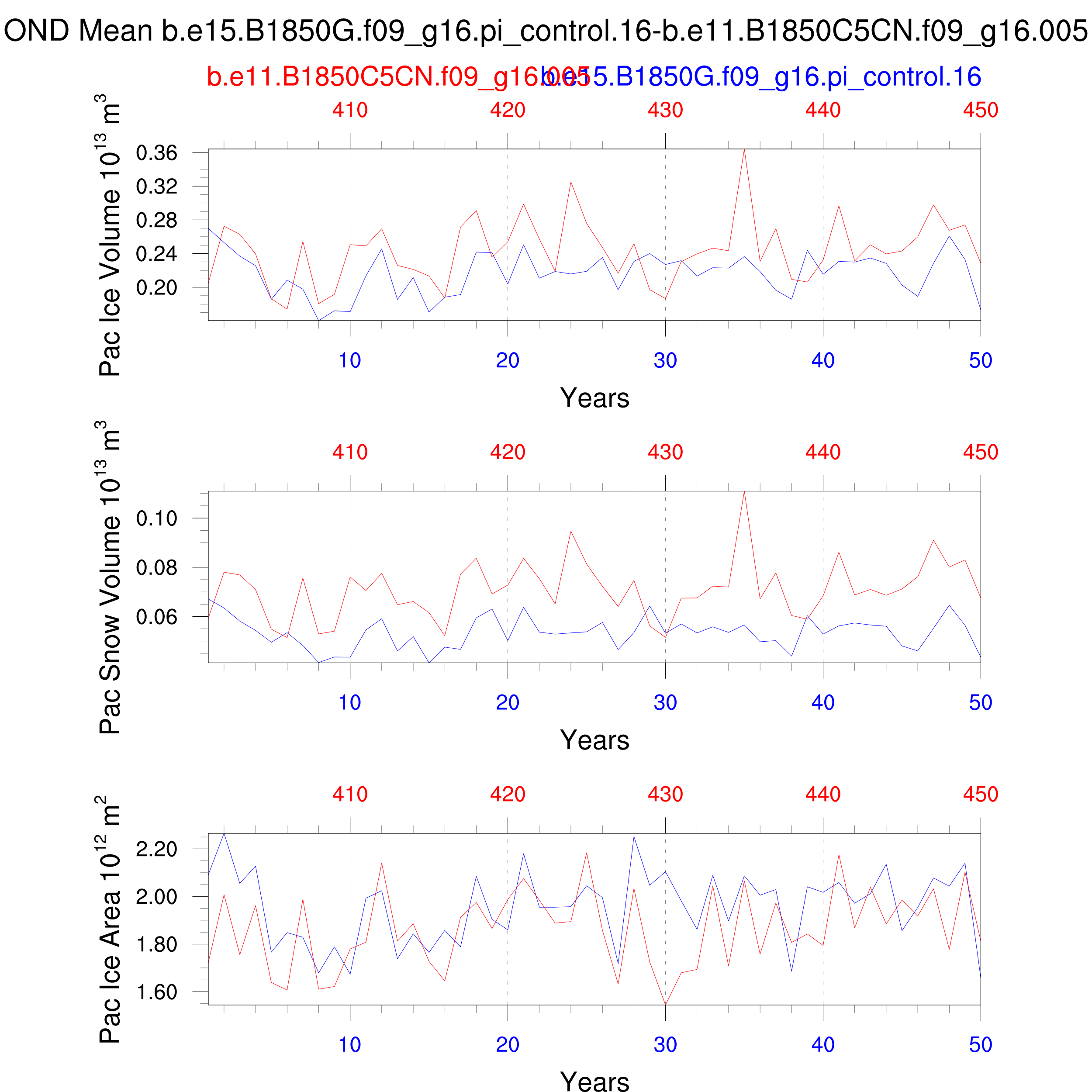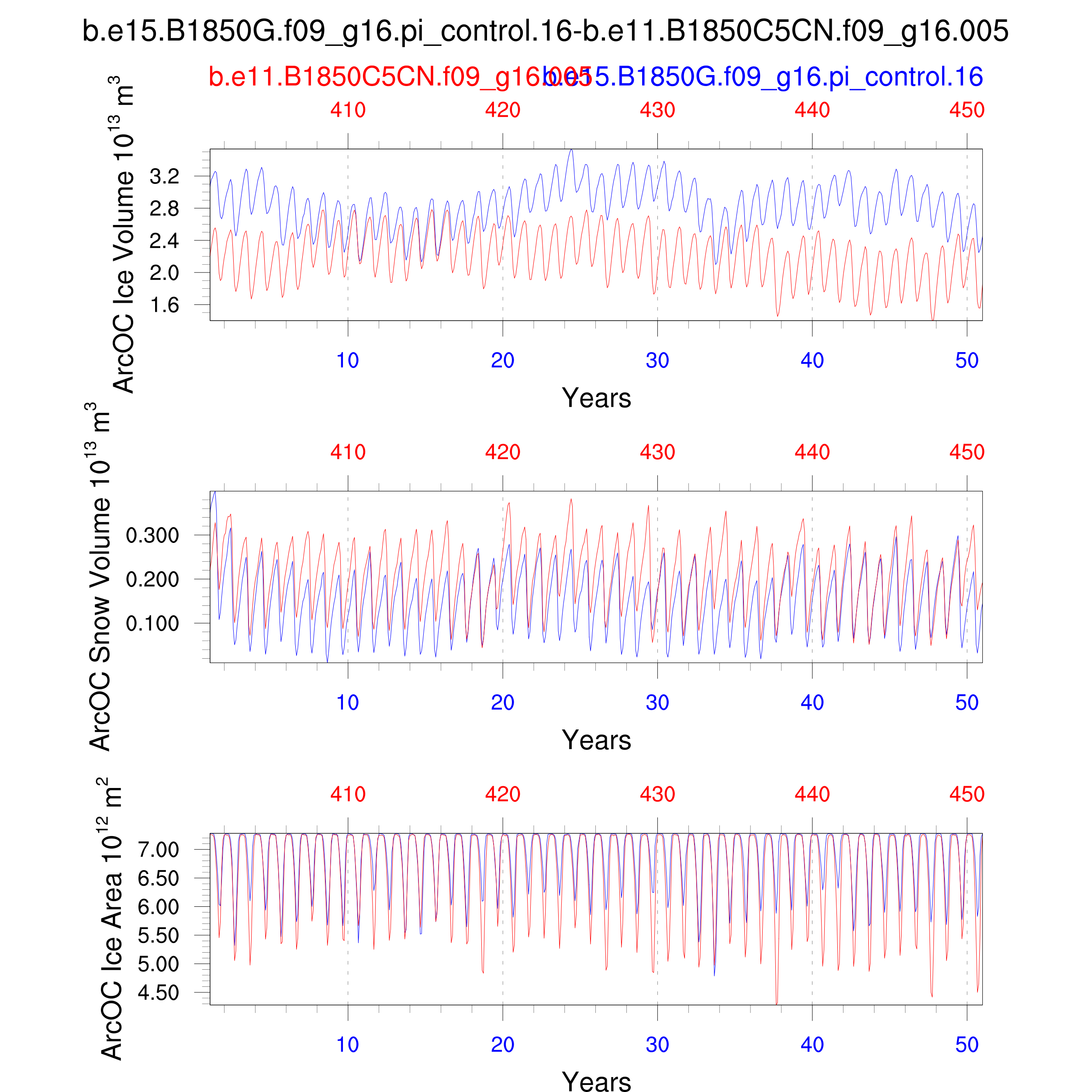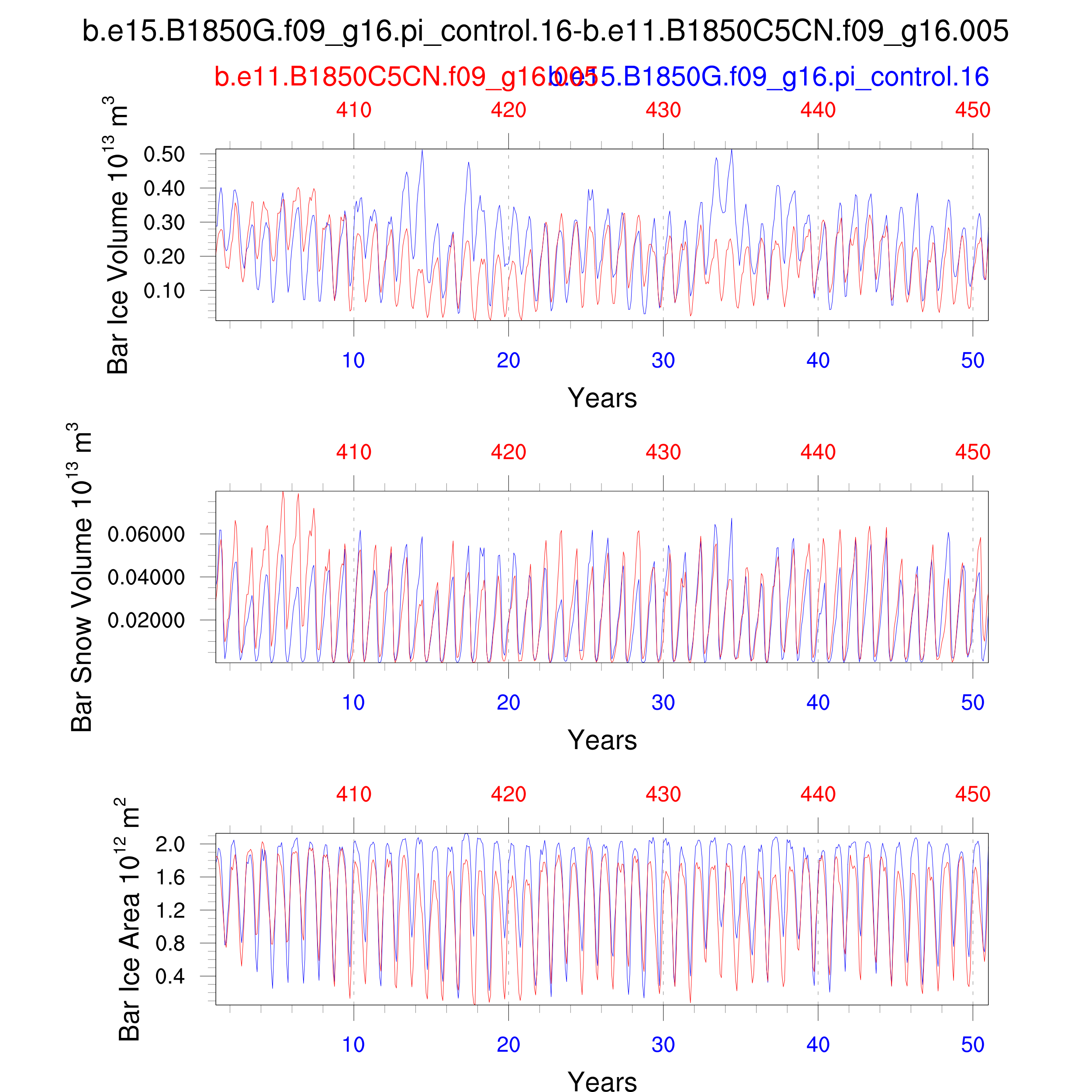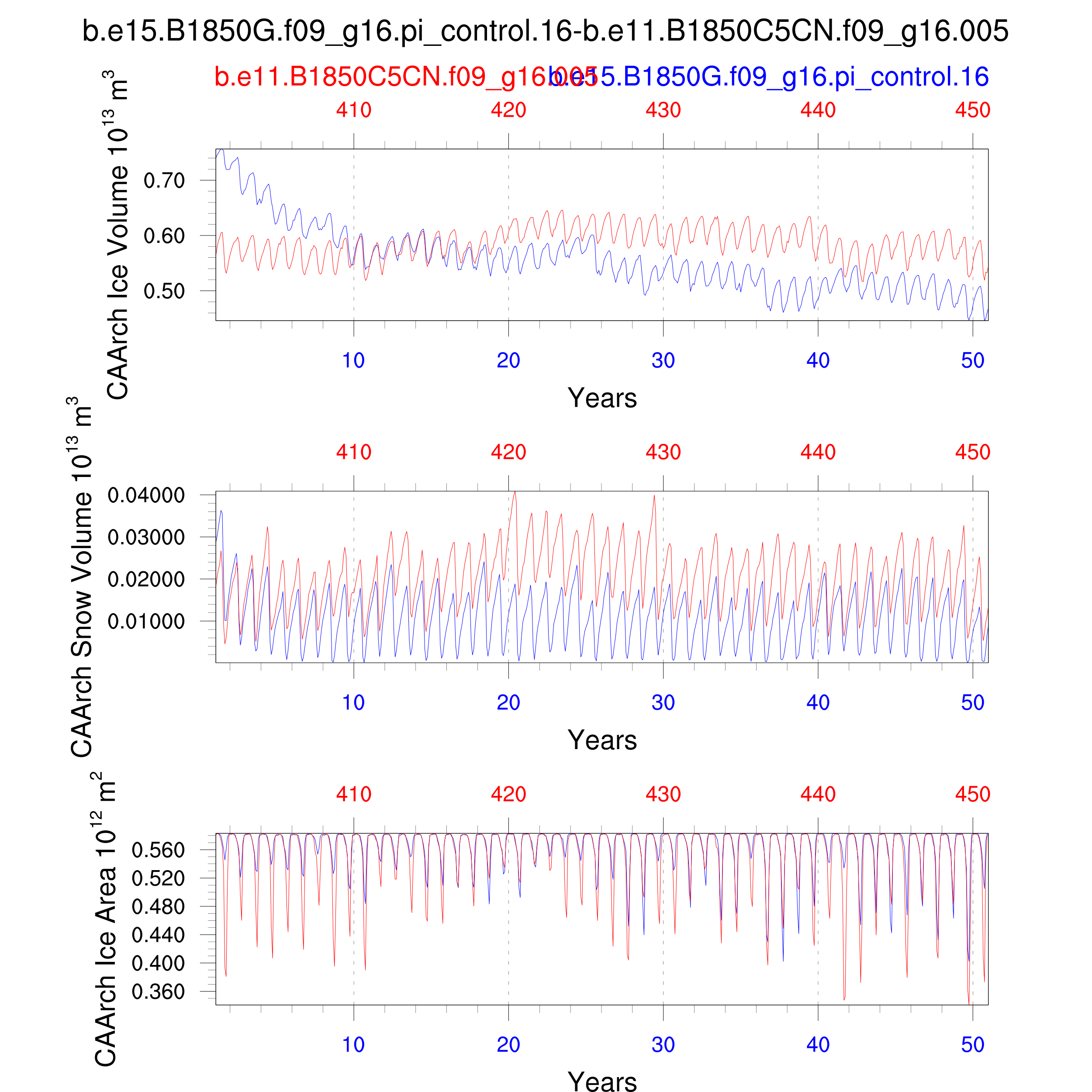 Comparison of runs b.e15.B1850G.f09_g16.pi_control.16-b.e11.B1850C5CN.f09_g16.005:
