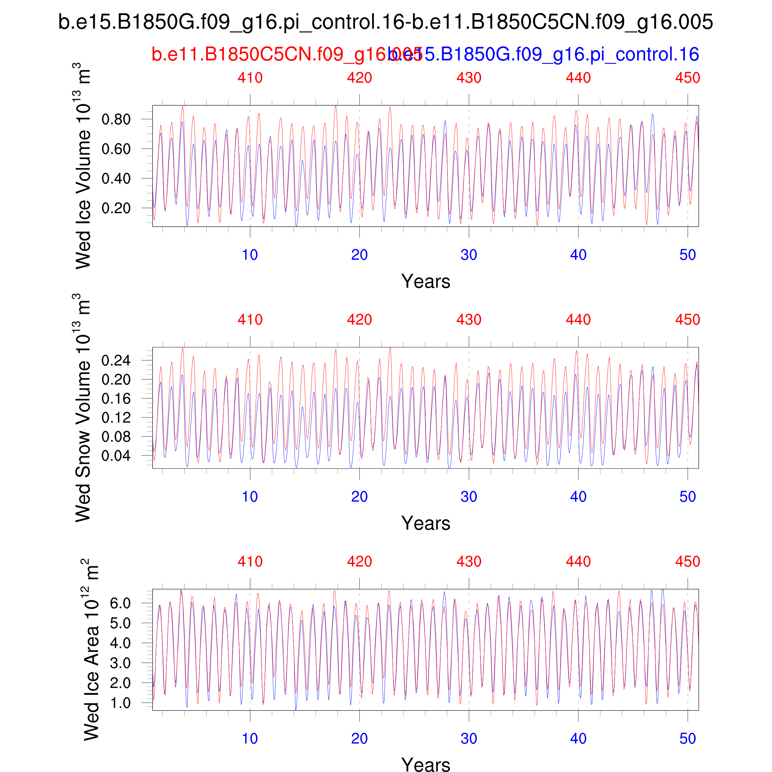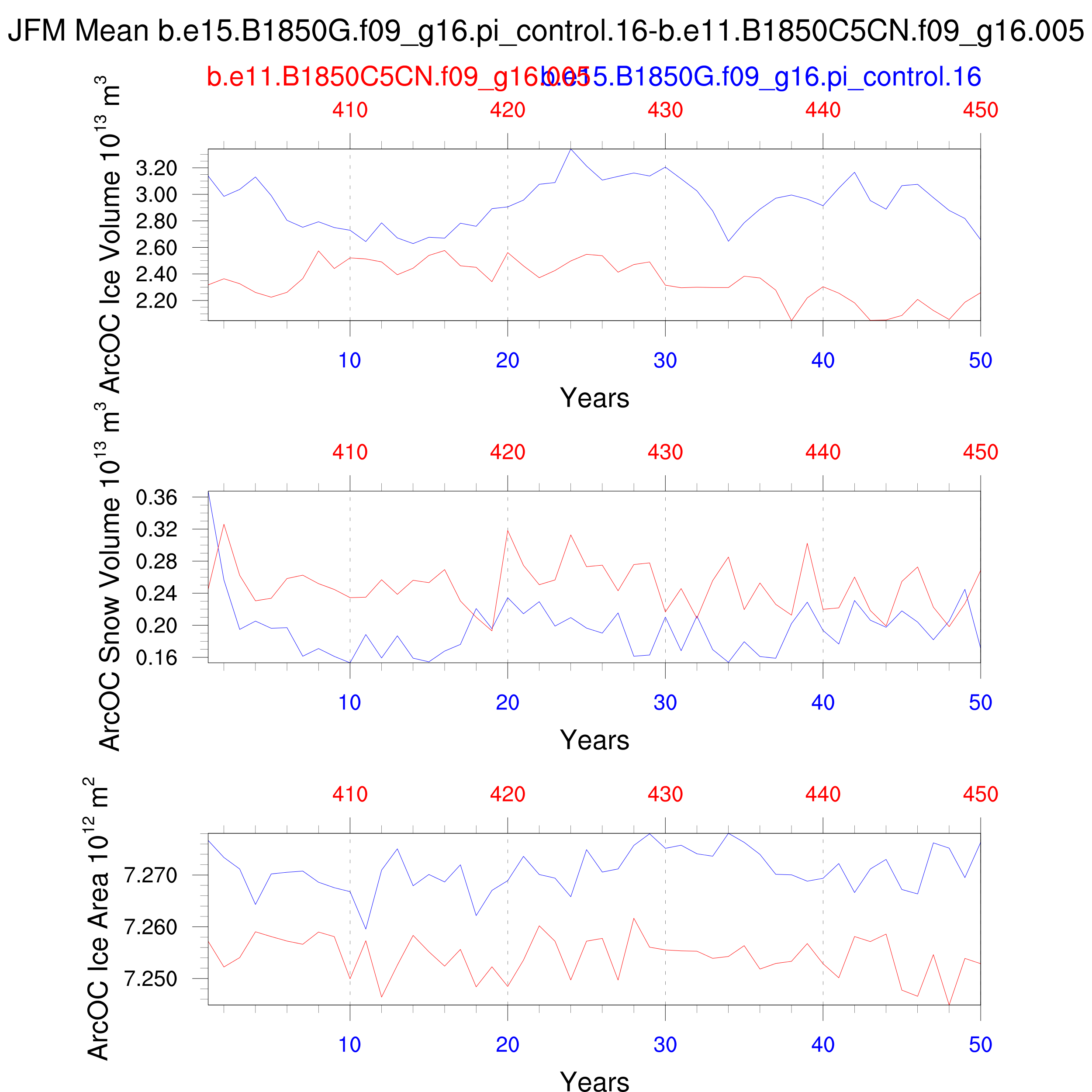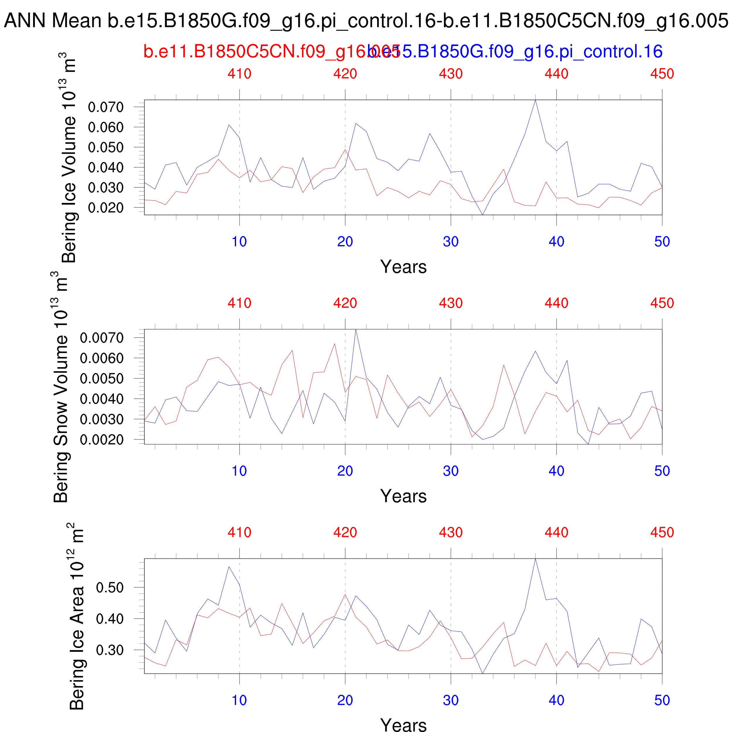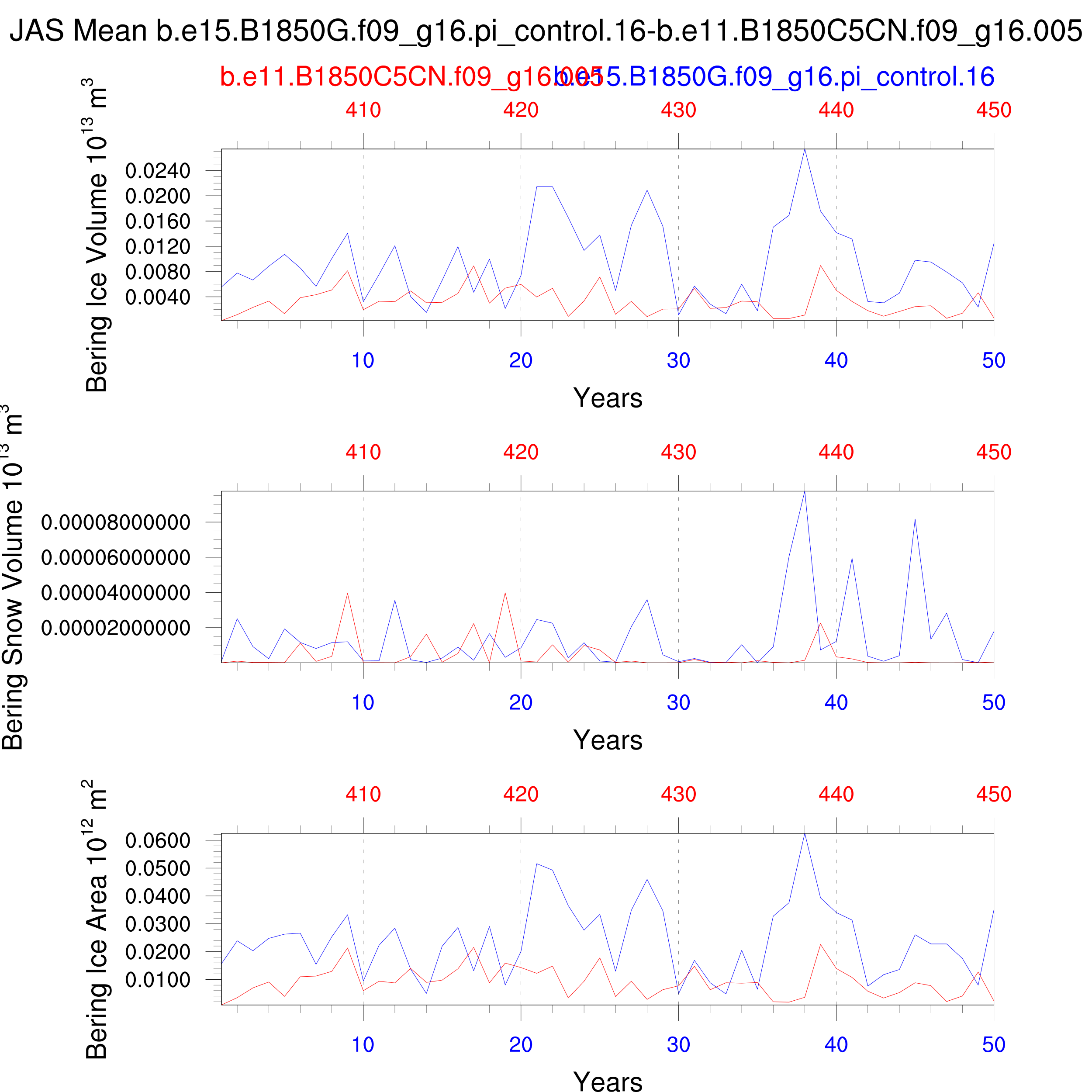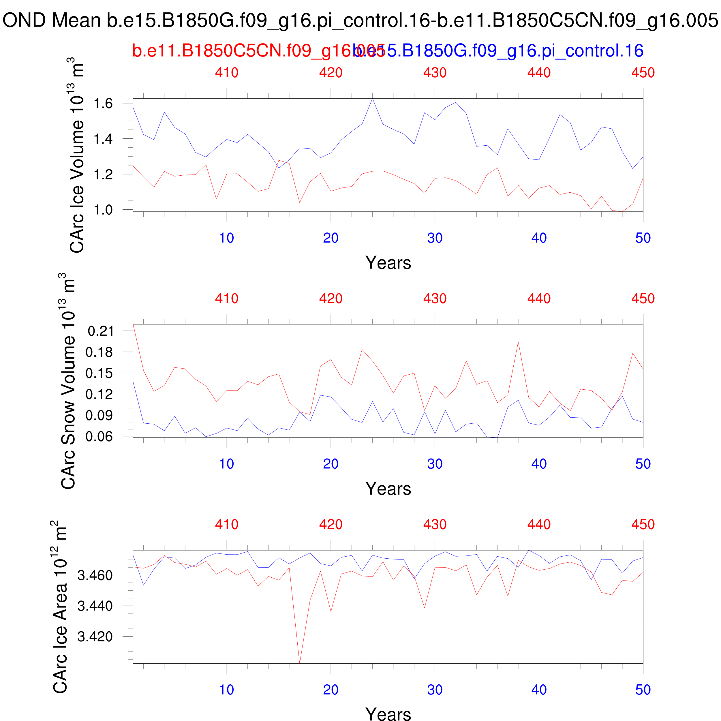 Comparison of runs b.e15.B1850G.f09_g16.pi_control.16-b.e11.B1850C5CN.f09_g16.005: