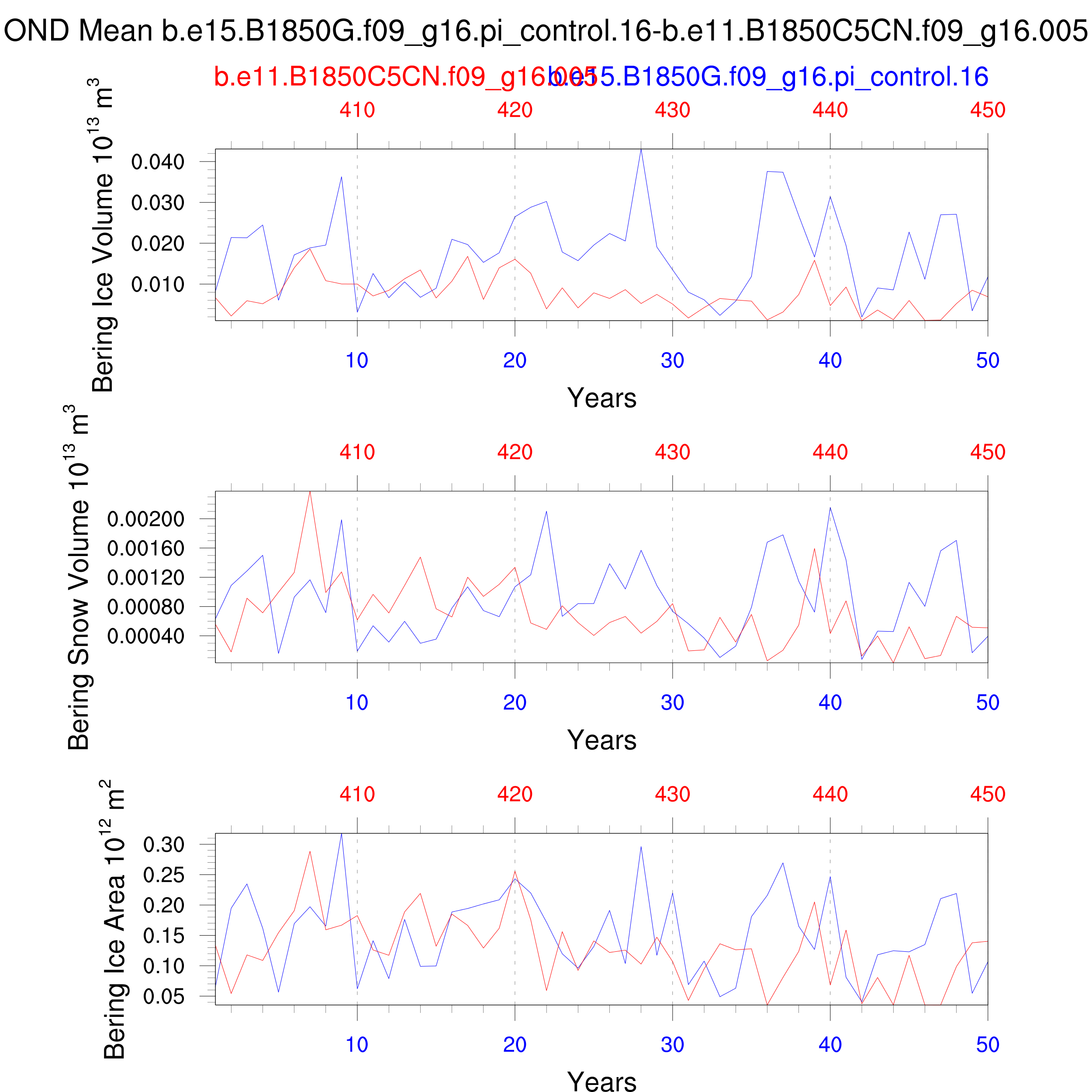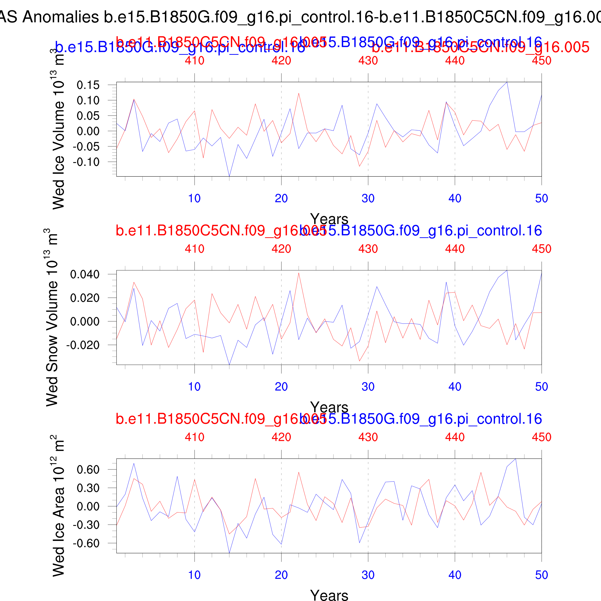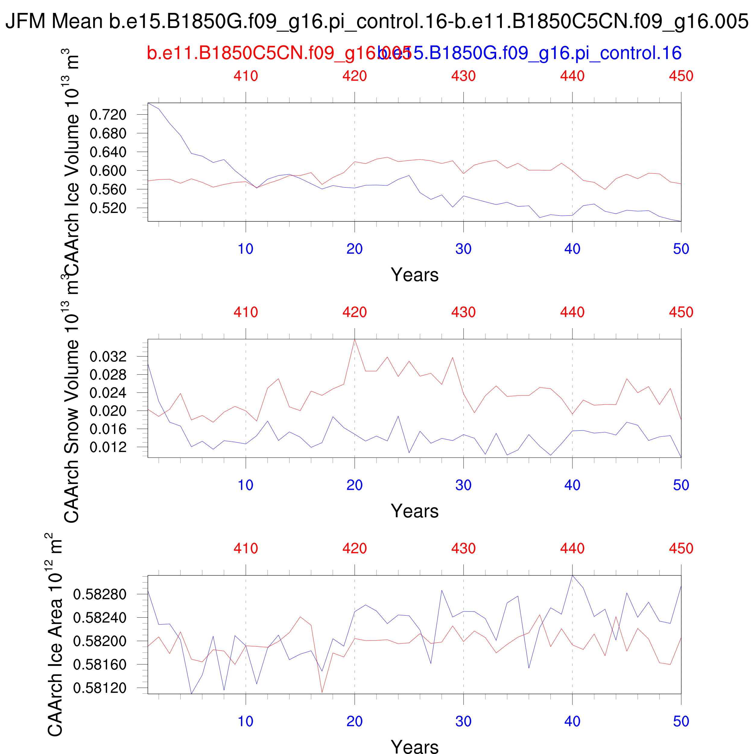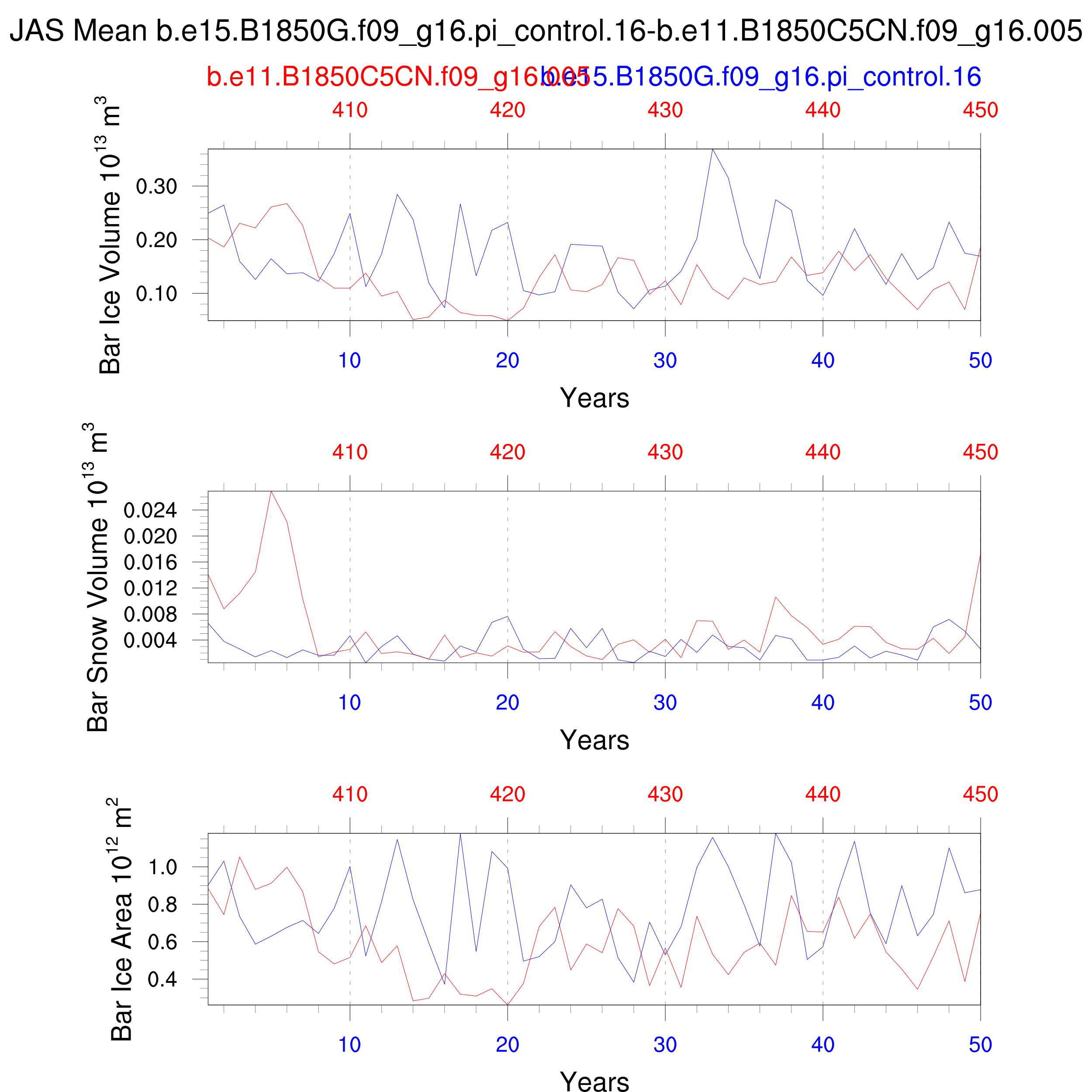 Comparison of runs b.e15.B1850G.f09_g16.pi_control.16-b.e11.B1850C5CN.f09_g16.005: