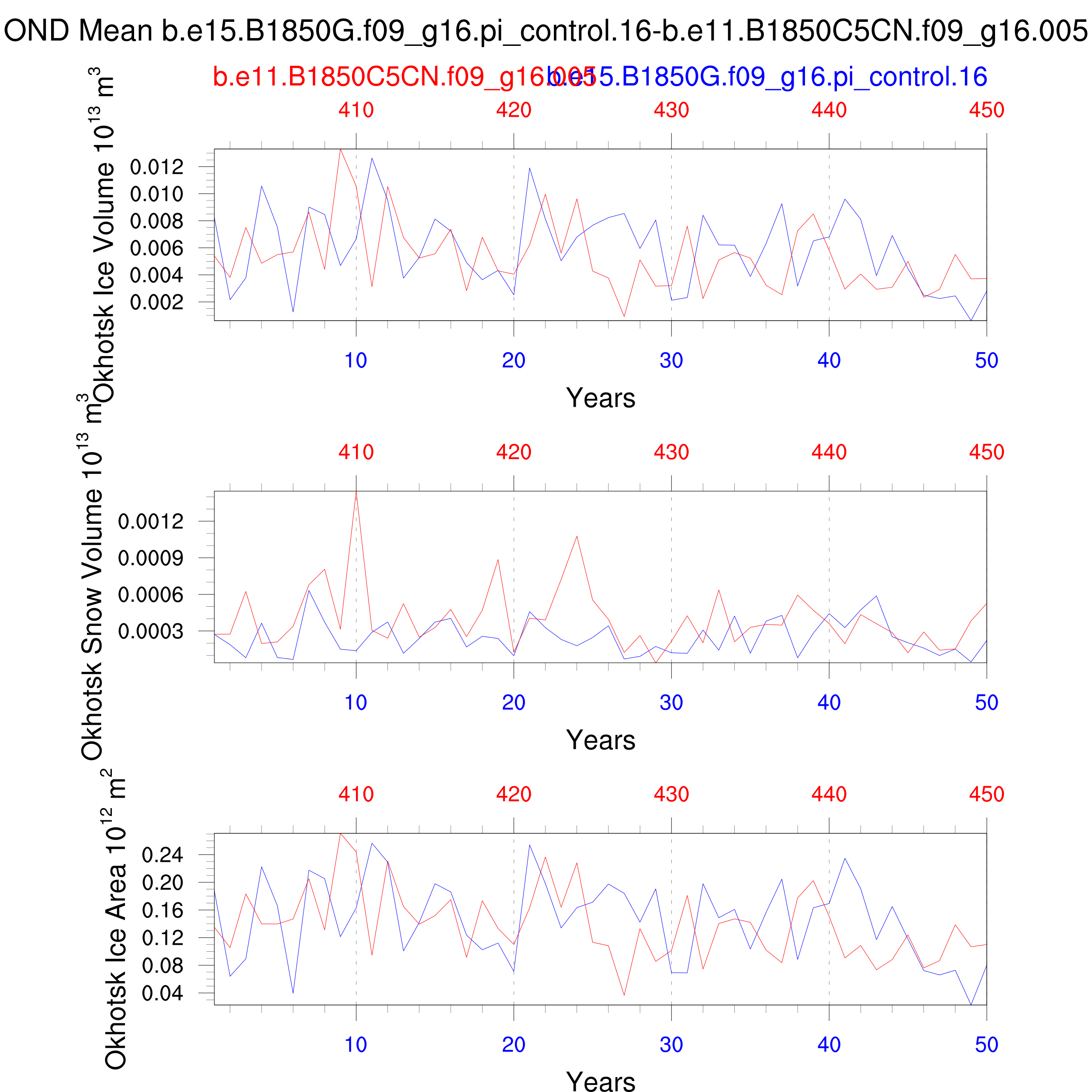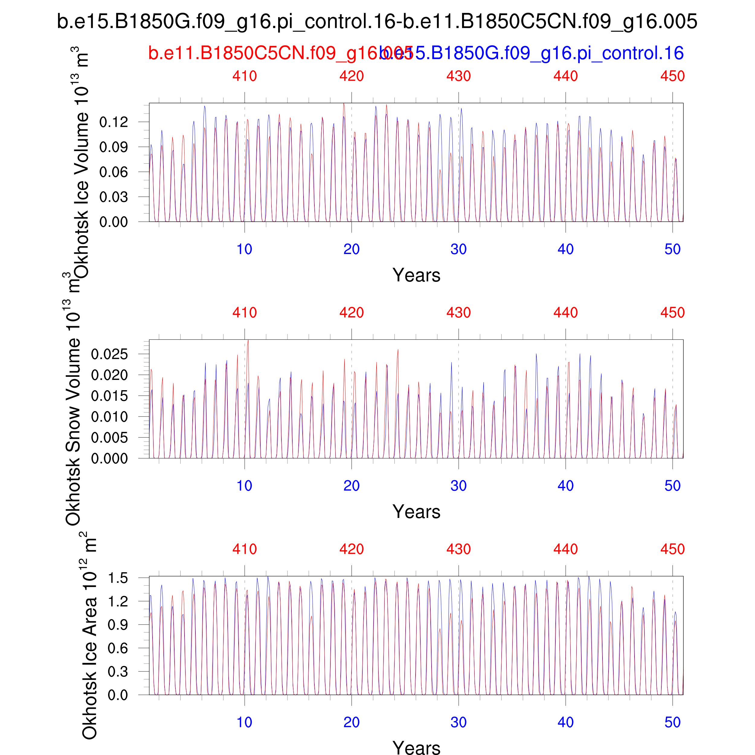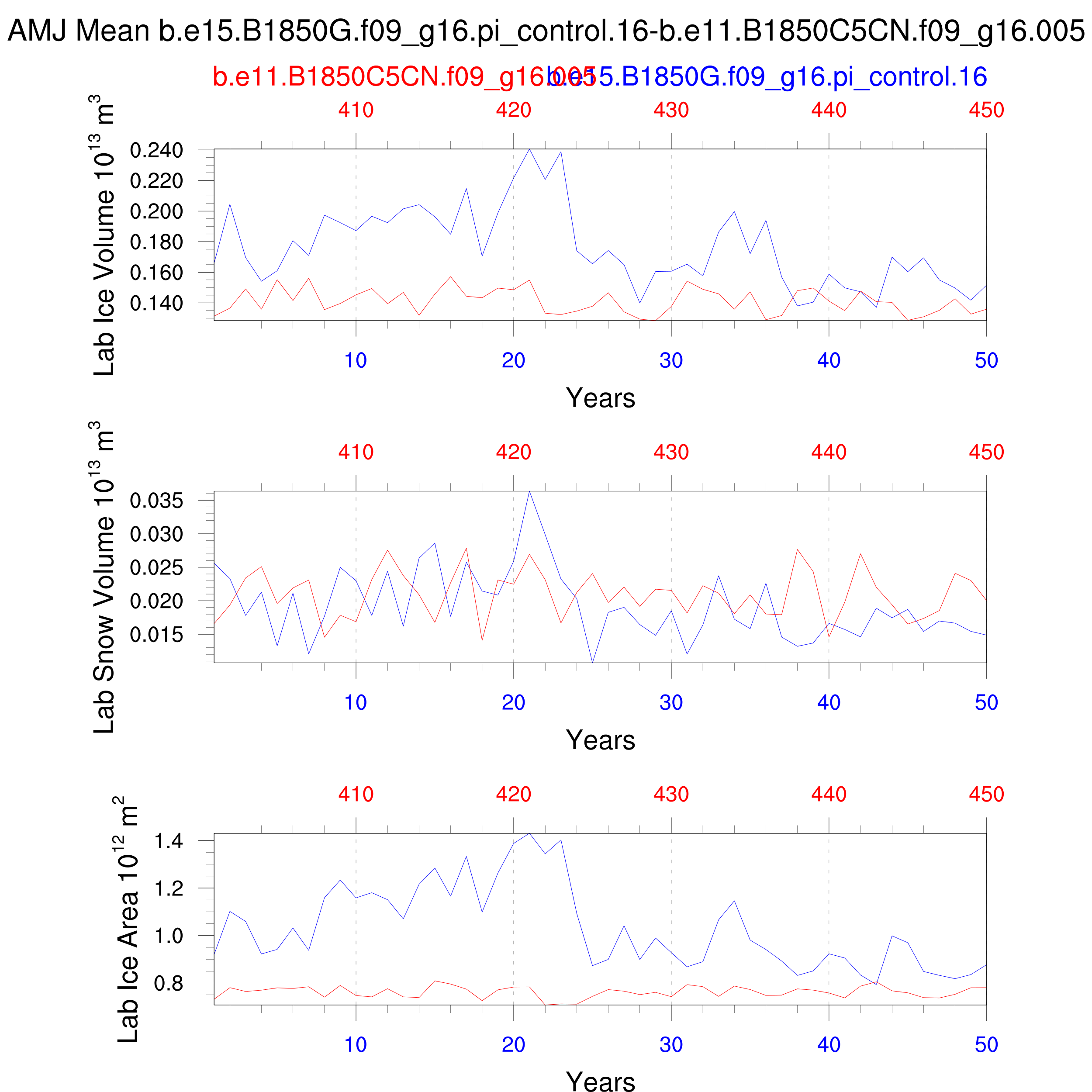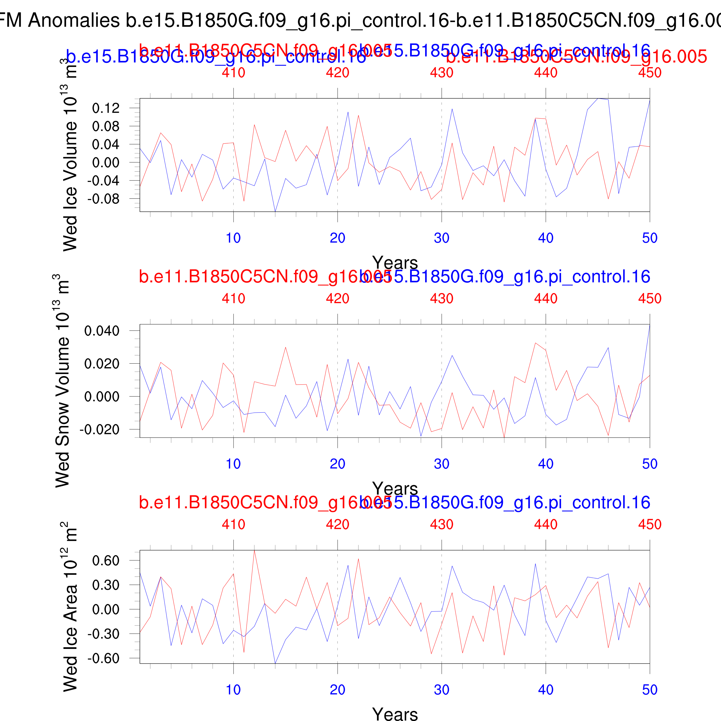 Comparison of runs b.e15.B1850G.f09_g16.pi_control.16-b.e11.B1850C5CN.f09_g16.005: