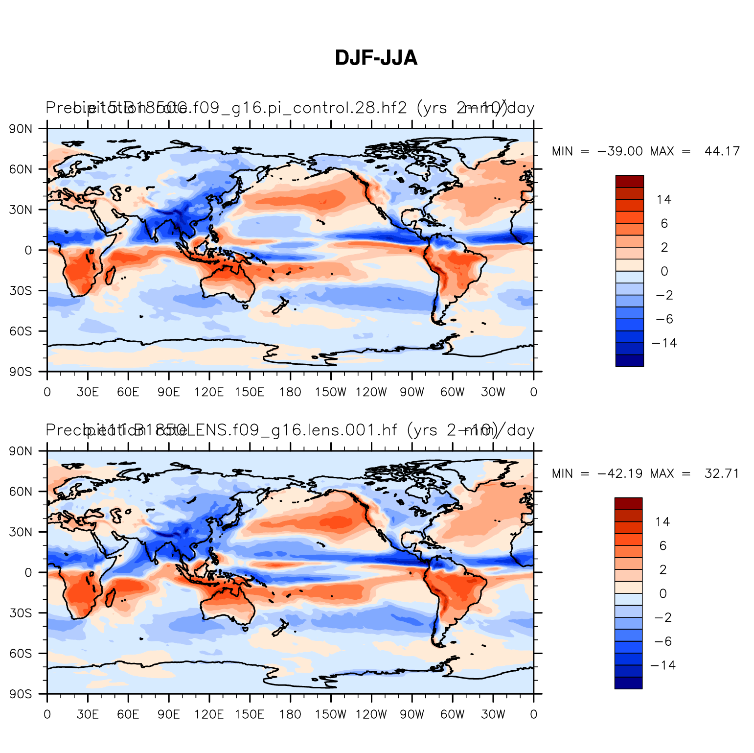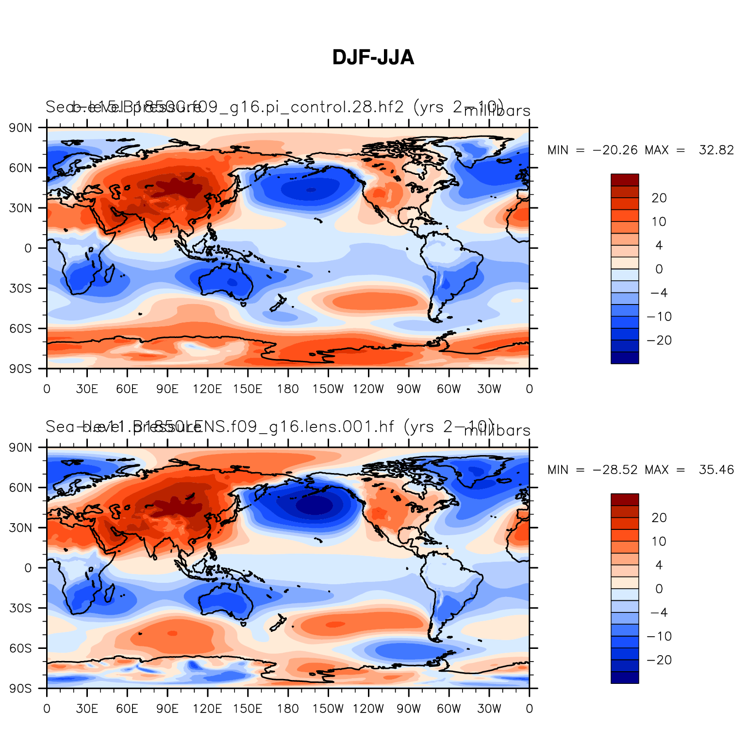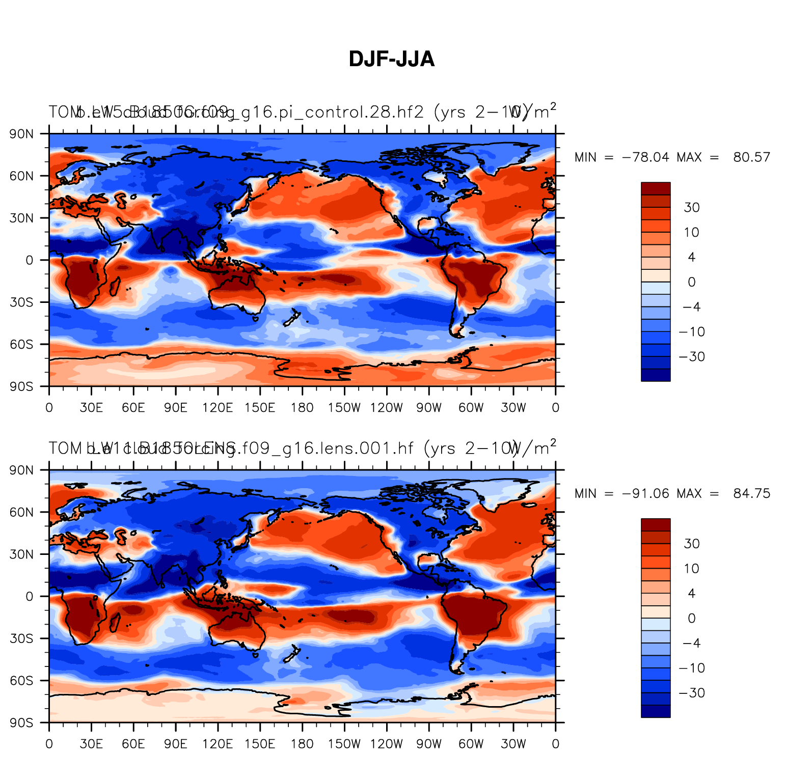 DIAG Set 9 - Horizontal contour plots of DJF-JJA differences
