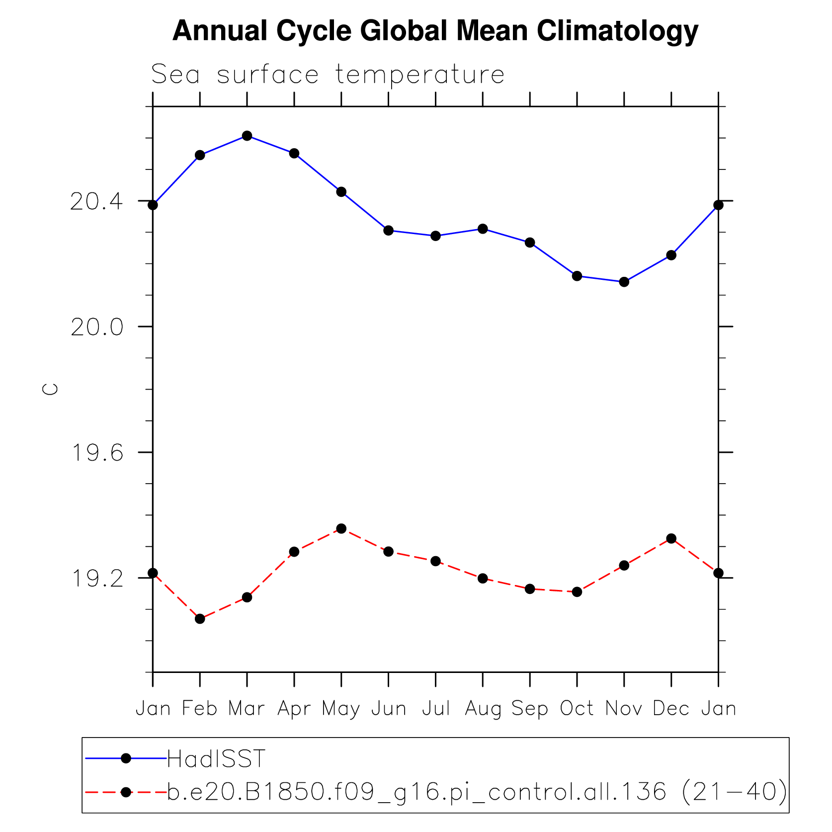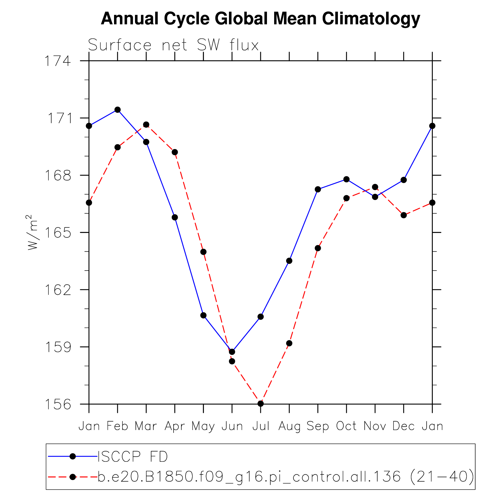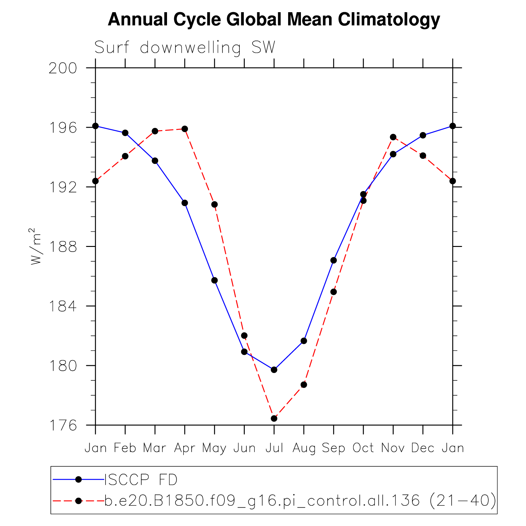 DIAG Set 10 - Annual cycle line plots of global means