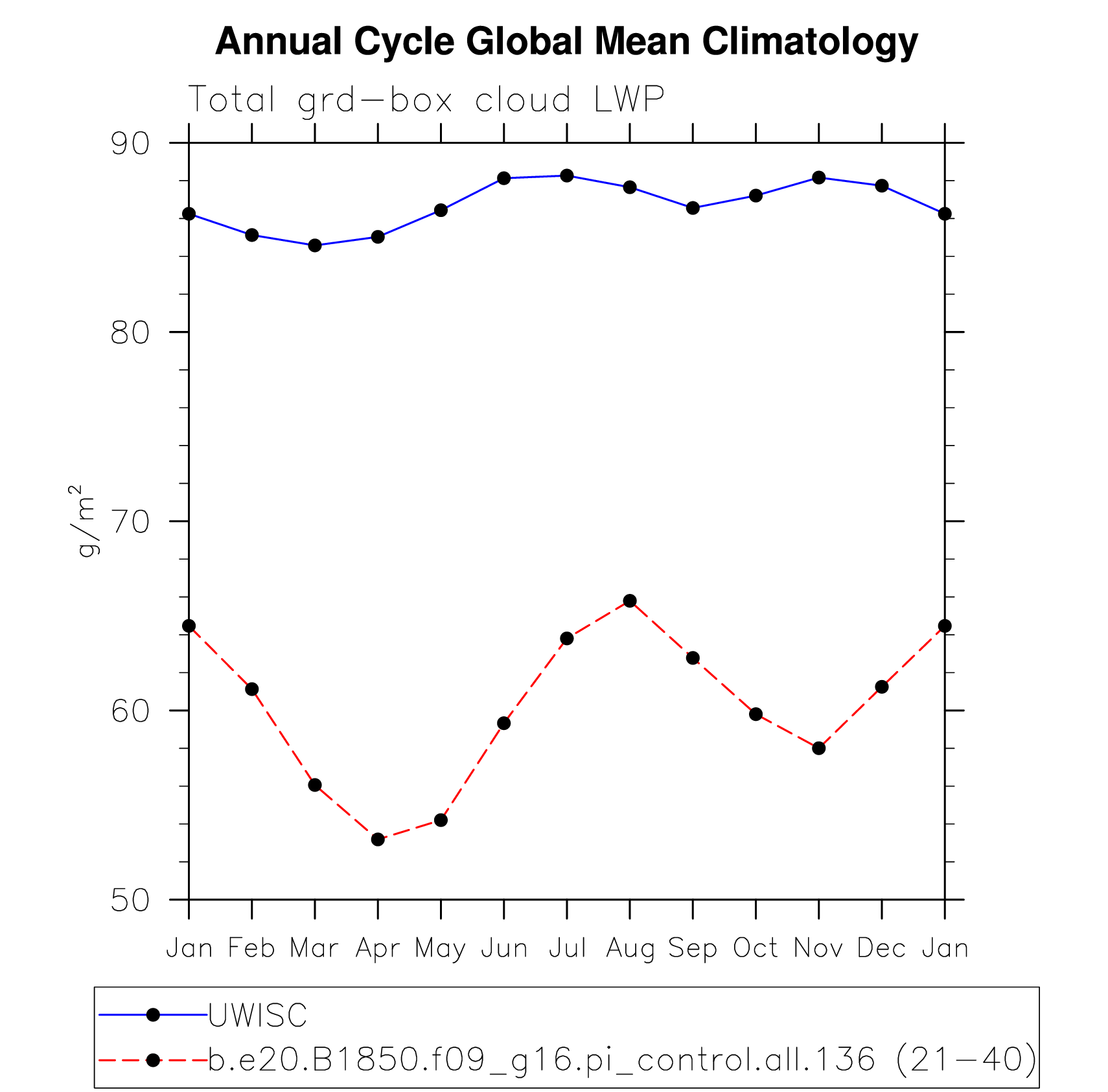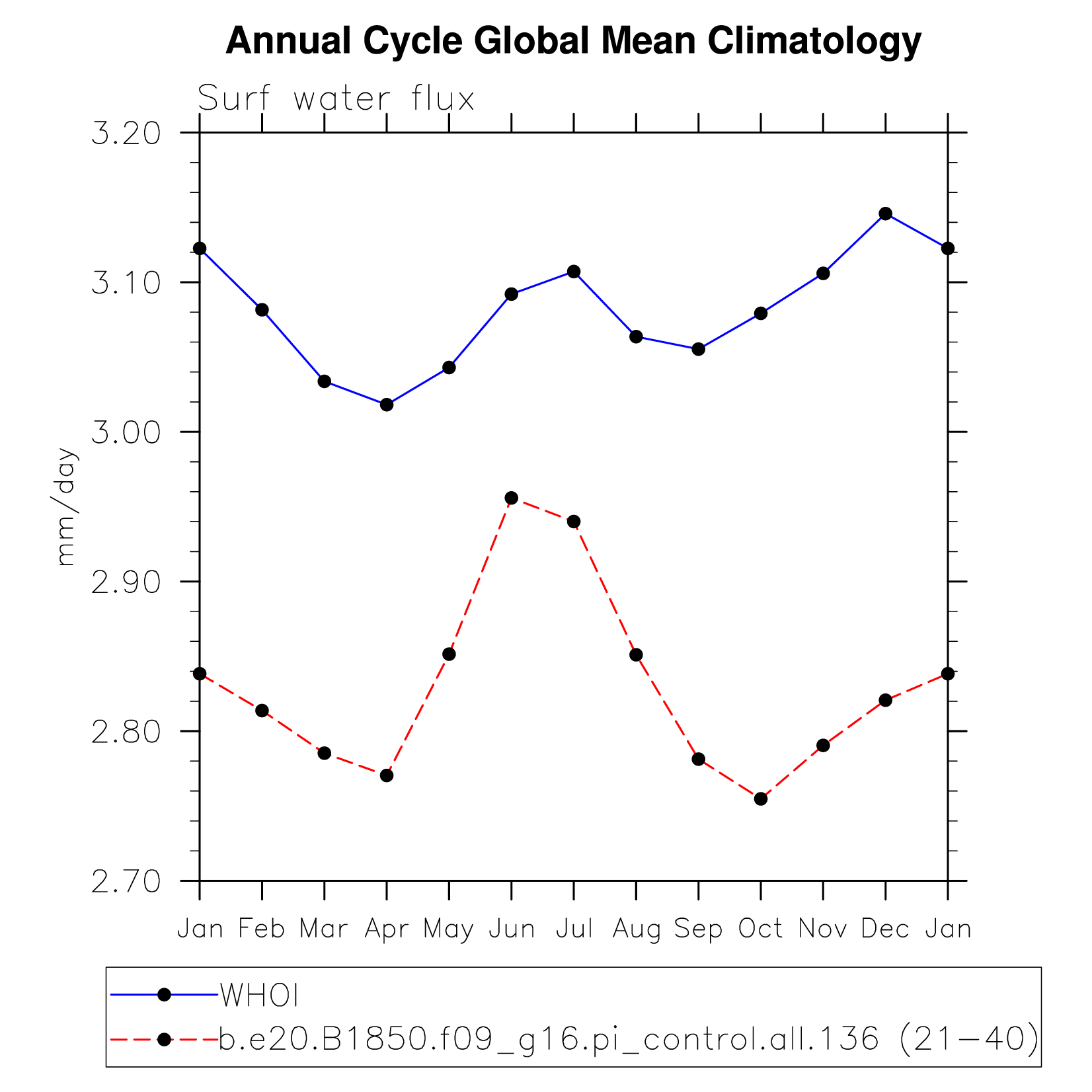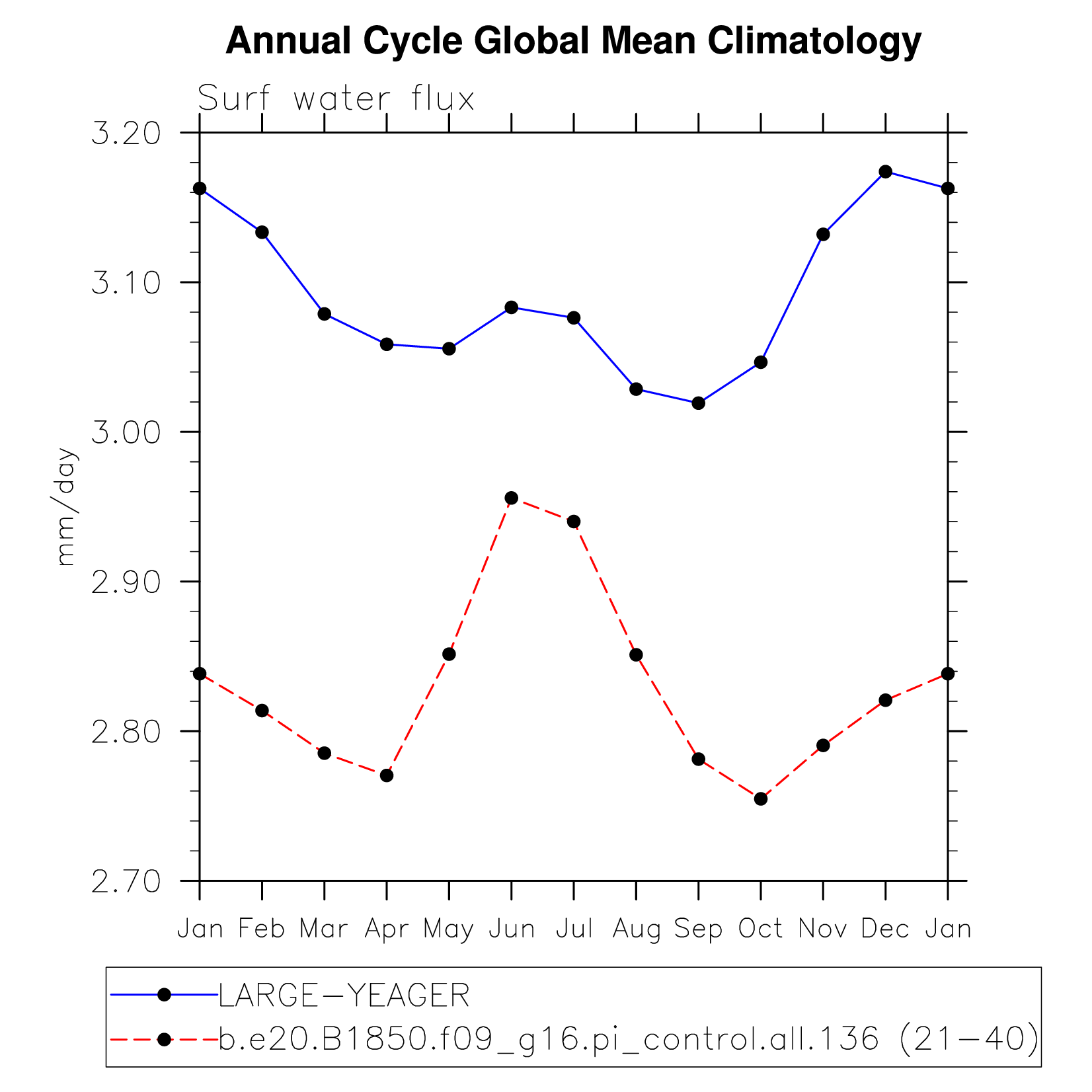 DIAG Set 10 - Annual cycle line plots of global means